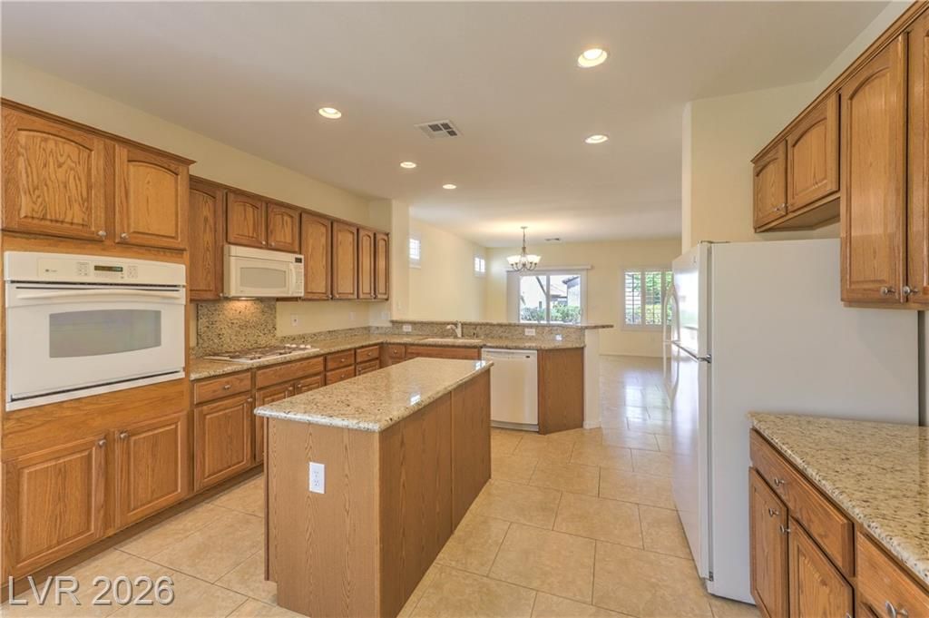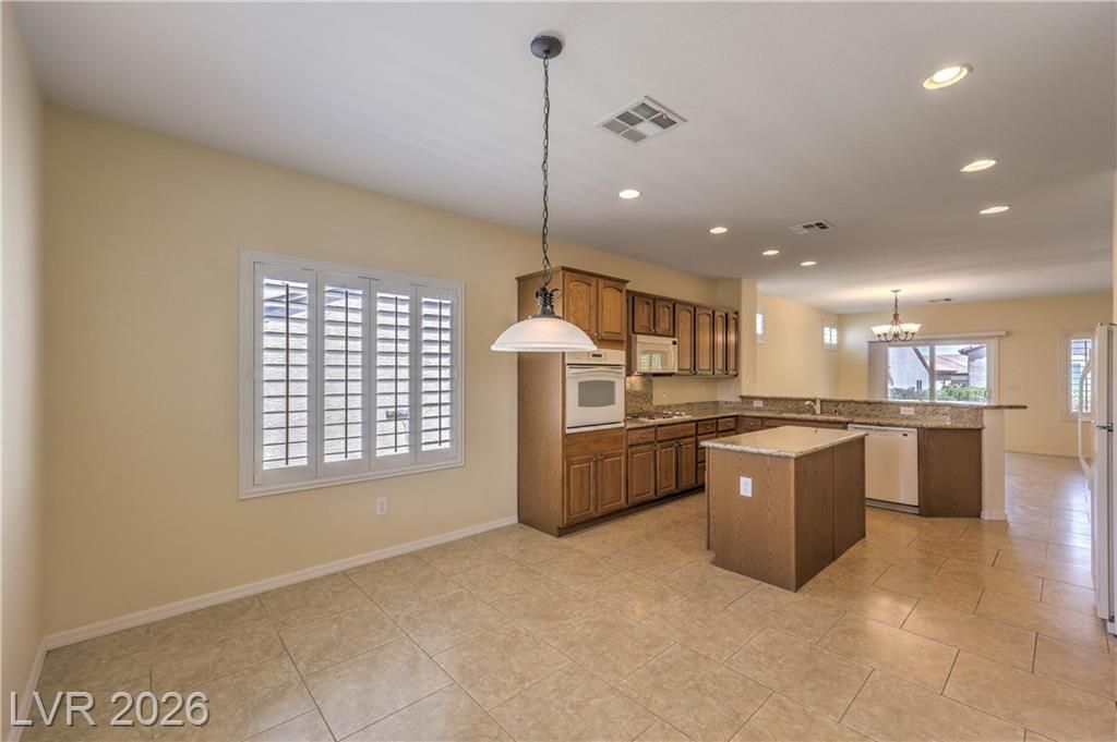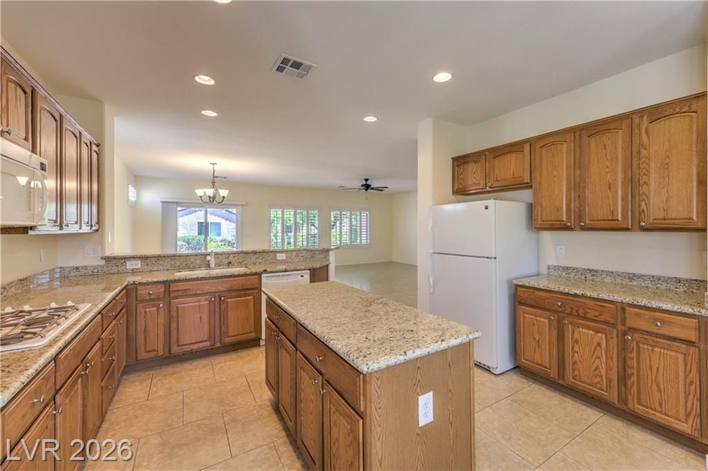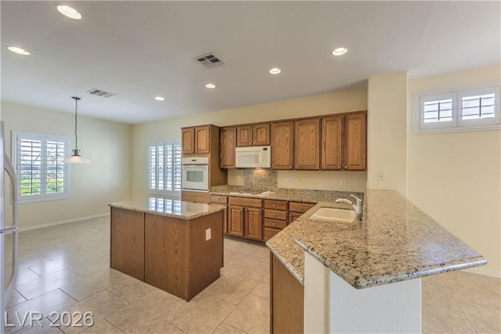 Popular Lincoln floor plan in premier age restricted community! Approximately 2,096 sqft with 2 bedrooms, den/office, 2 baths, and a 2-car garage. Enjoy a spacious great room with tile flooring and ceiling fan, formal dining area, and an upgraded island kitchen with granite countertops, cabinets w/ pull-out shelving, breakfast bar, nook, pantry, tile flooring, built-in convection oven, gas cooktop, refrigerator, dishwasher, and microwave. The owner’s suite features a walk-in closet, patio access, and bathroom with raised vanity, dual sinks, garden tub, and separate shower. Secondary bedroom with ceiling fan, plus a den/office with recessed lighting. Additional highlights include a new HVAC system, laundry room with cabinets and utility sink, washer and dryer, plantation shutters, two-tone paint, and a water softener. Rear yard with covered patio with a gas BBQ stub and low-maintenance landscaping. Fabulous Sun City Anthem (55+ Age Restricted Community) Amenities!