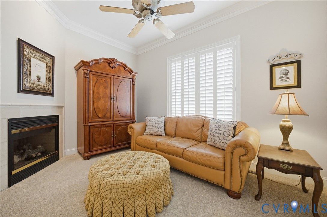 This highly upgraded well maintained Parade of Homes custom home features neutral fresh paint, solid wood plantation shutters on every window, 10 foot ceilings & layered crown molding throughout. The spacious family room has built-in shelves with custom cabinets, a detailed coffered ceiling and warm gas fireplace. Your open concept kitchen features floor to ceiling solid oak cabinets, side by side refrigerator, five burner gas stove, builtin microwave, range and dishwasher. All Stainless. You will enjoy plenty of room for a table and chairs to have meals sitting down together here in the heart of the home. Your quiet master bedroom includes a sitting/TV area, trey ceiling & gas fireplace. Master bath has a large soaking tub with a gas fireplace & private water closet. There is also a walk in closet big enough for both spouses' wardrobes. Your bright sun room with skylights and vaulted ceilings leads to an oversized back deck with extra wide stairs & gas grill connection for family cookouts all year long. Two additional sun drenched first floor bedrooms each have ceiling fans and share a bathroom. It features a separate water closet & shower/tub combo with stone tile floors. Each bedroom has its own well lit walk in closet. The extra finished space above the garage can be a forth bedroom, an office or a exercise studio. You will have a finished two car garage which features a tiled floor with work bench & built-ins to keep tools organized and out of sight Storage for every holiday abounds in the widest and deepest floored well lit attic I've ever seen! Nottinghamshire features all the benefits of living in Ford's Colony. We have our own access gate & security patrols our neighborhood regularly. There is easy access to the swimming pool, tennis courts, playground, softball field, bocci court & basketball court. This location is incredibly convenient to Rt 199. You can be at either Walmart, Harris Teeter, Publix, New Town or CW in under 10 min. RIC is about 45 min.