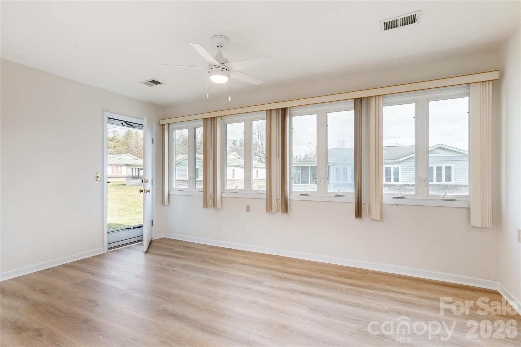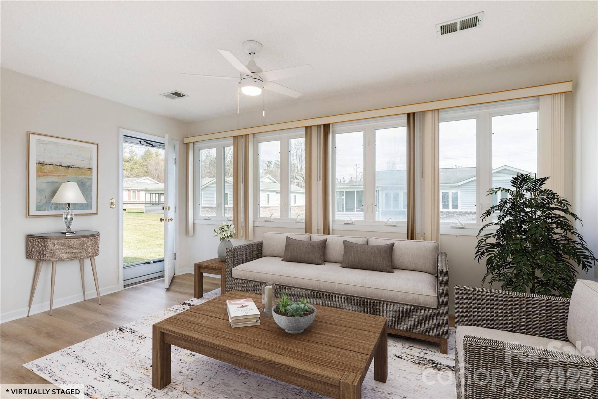 This well-maintained, one-level townhome with brand new vinyl plank flooring feels fresh and clean the moment you step inside. The kitchen is spacious and practical, with plenty of storage and counter space for preparing meals and more. The living and dining areas flow comfortably, making it easy to have friends over or simply enjoy a quiet afternoon at home. The bright sunroom is a favorite spot for daily use, and the layout overall is practical. The primary bedroom includes an en-suite bath with a low-threshold shower, while the second bedroom works well as a guest room, office, or hobby space. A one-car garage on the main level, just off the kitchen, makes errands and groceries easier. Located in Blue Ridge Villas, which is a welcoming 55+ community and conveniently close to shopping, Hendersonville, and I-26. This move-in-ready home is exactly what you are looking for!
