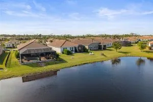 Lakefront Home with Preserve Views in Venice Woodlands This 2020-built home offers the rare combination of wide lake views and a private Old Florida preserve backdrop. The open layout includes 3 bedrooms, a den, and 2.5 baths, designed for both everyday living and entertaining. The kitchen features white wood cabinetry with custom glass inserts, stone countertops, a large island, and a walk-in pantry. Stainless steel appliances, including a convection oven with air-fry settings, complete the space. The kitchen opens to the living and dining areas, all oriented toward the lake and preserve beyond. The primary suite overlooks the water and features dual vanities, a walk-in shower, and an oversized closet. Two additional guest suites share a full bath with double sinks, providing comfortable accommodations for family or visitors. A separate den offers flexible space for an office, library, or hobby room, and the powder room is conveniently located for guests. Luxury vinyl flooring, plantation shutters, and a neutral color scheme add to the home’s clean, coastal style. Outdoor living includes a screened lanai and sun patio where you can enjoy lake views and the privacy of the preserve. Smart-home features allow remote control of the thermostat, appliances, and garage. Additional details include hurricane shutters, pre-plumbing for a laundry sink, UV light in HVAC system, and a 2-car garage. Venice Woodlands offers a community pool, fitness center, pickleball courts, clubhouse, and walking paths. Lawn care is included in the HOA fee, making this home easy to maintain and ready to enjoy.