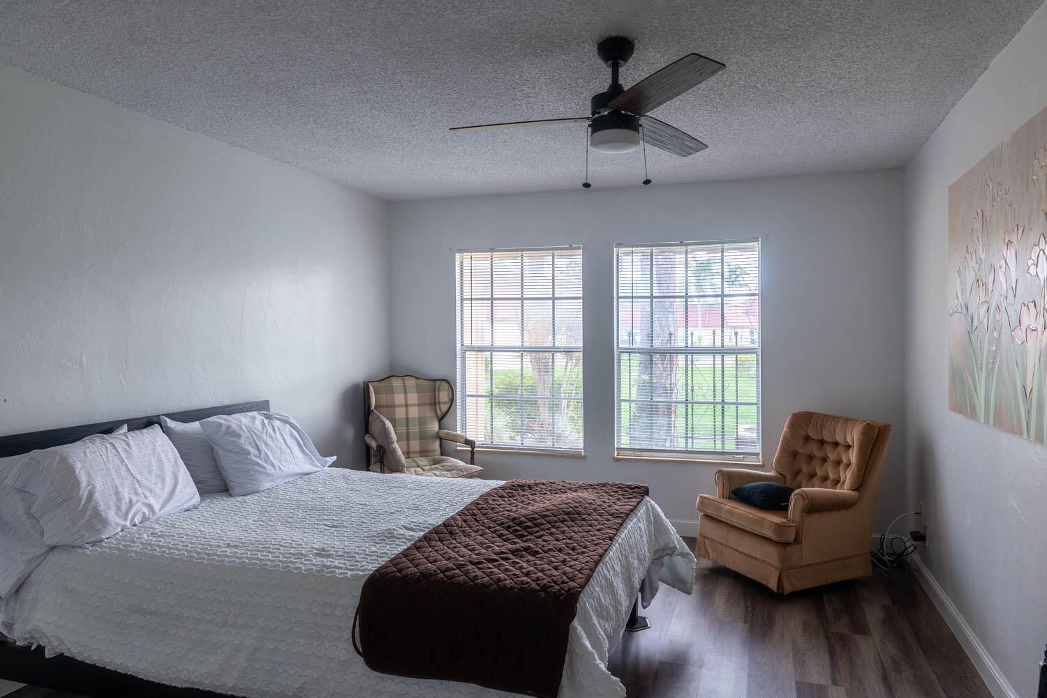Bright and light,renovated home 1 bed 1.5 bath.55+ community. All laminated wood floors, very spacious layout of living/dinning rooms and enclosed patio .Washer & Dryer in unit . Also half bath for guests,new cabinetry and plenty of counter space in the kitchen.Bedroom has a large window for natural light, supersized walk in closet and shower bathroom. Covered Bridge is perfectly located in suburban Lake Worth and not too far from very nice beaches, main roads, shopping, restaurants . HOA includes building insurance,water,Internet & Cable.Nice clubhouse, 2 heated pools, fitness, workshop, tennis court, billiards room, bocce and shuffleboard ,walking paths, card rooms, social activities. ONLY 25% down conventional. Seller will pay new roof assessment a Closing.