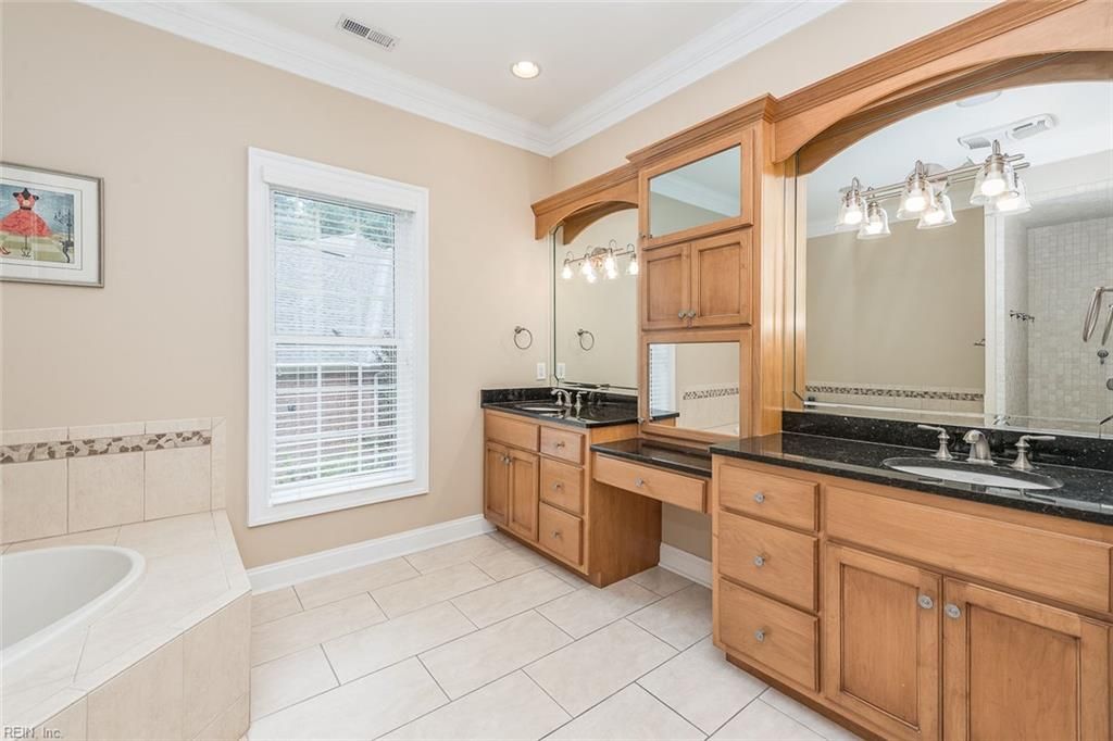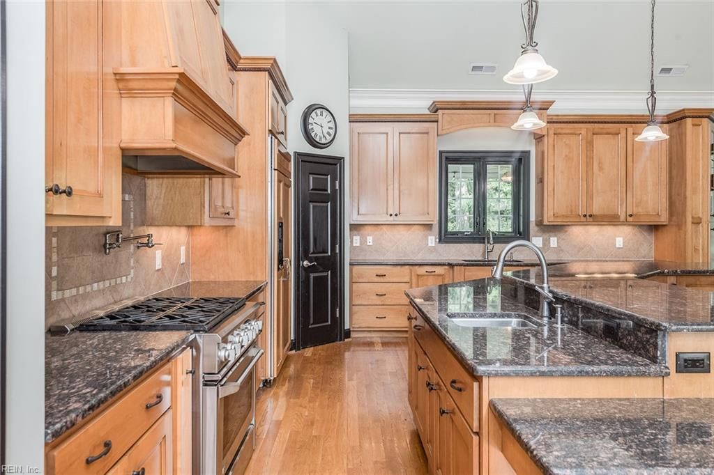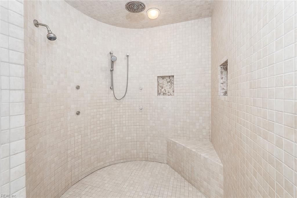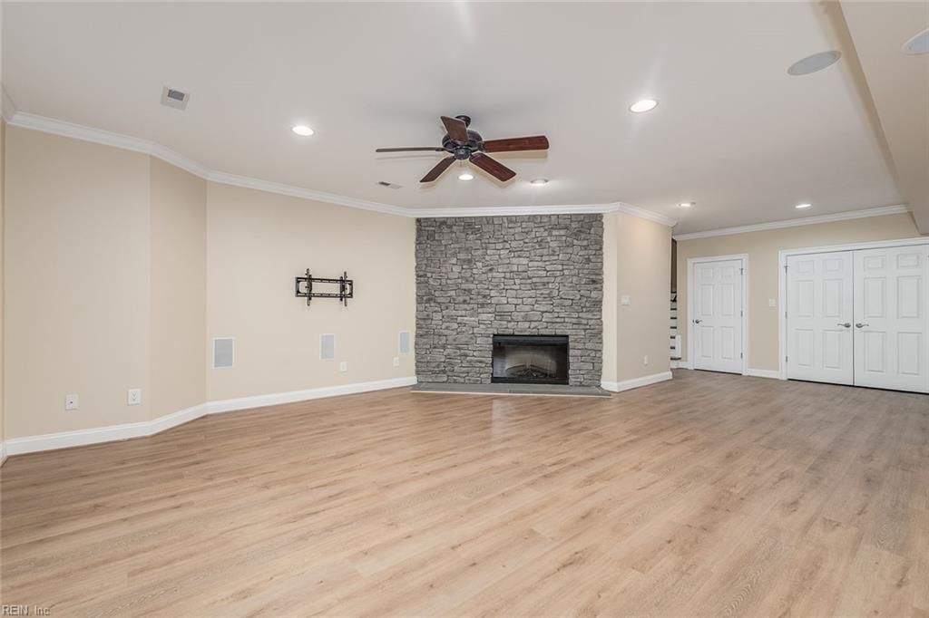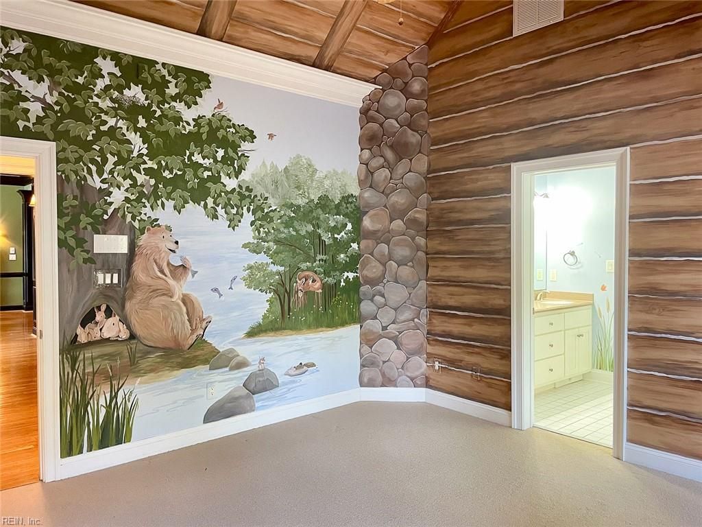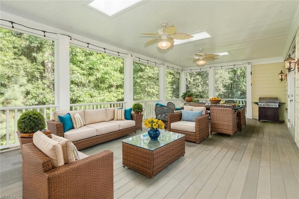 Completely custom ranch-style home on a quiet cul-de-sac in the highly sought-after Western Gailes section of Ford's Colony. Charming and modest from the outside, the interior reveals a spacious open floor plan with soaring ceilings and high-end finishes. Built with thick foundation walls for enhanced energy efficiency, the lower level offers a perfect ADU, in-law suite, or an extraordinary recreation area. Over the garage is a large private space ideal for a home office, playroom, or guest suite with its own full bathroom. Storage abounds with oversized closets and two dedicated storage rooms. Enjoy an expansive screened porch and patio—truly oversized—perfect for entertaining or relaxing in the peaceful, wooded backyard. Features include 2 fireplaces, 2 full kitchens, a Jack-and-Jill bath painted by a local artist, walk-in pantry, and a luxurious primary bath with a circular shower, hidden TV mirror cabinetry, and smart drawers for everyday essentials.