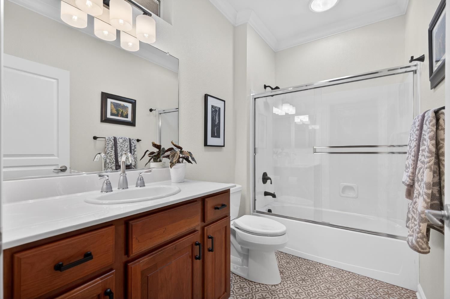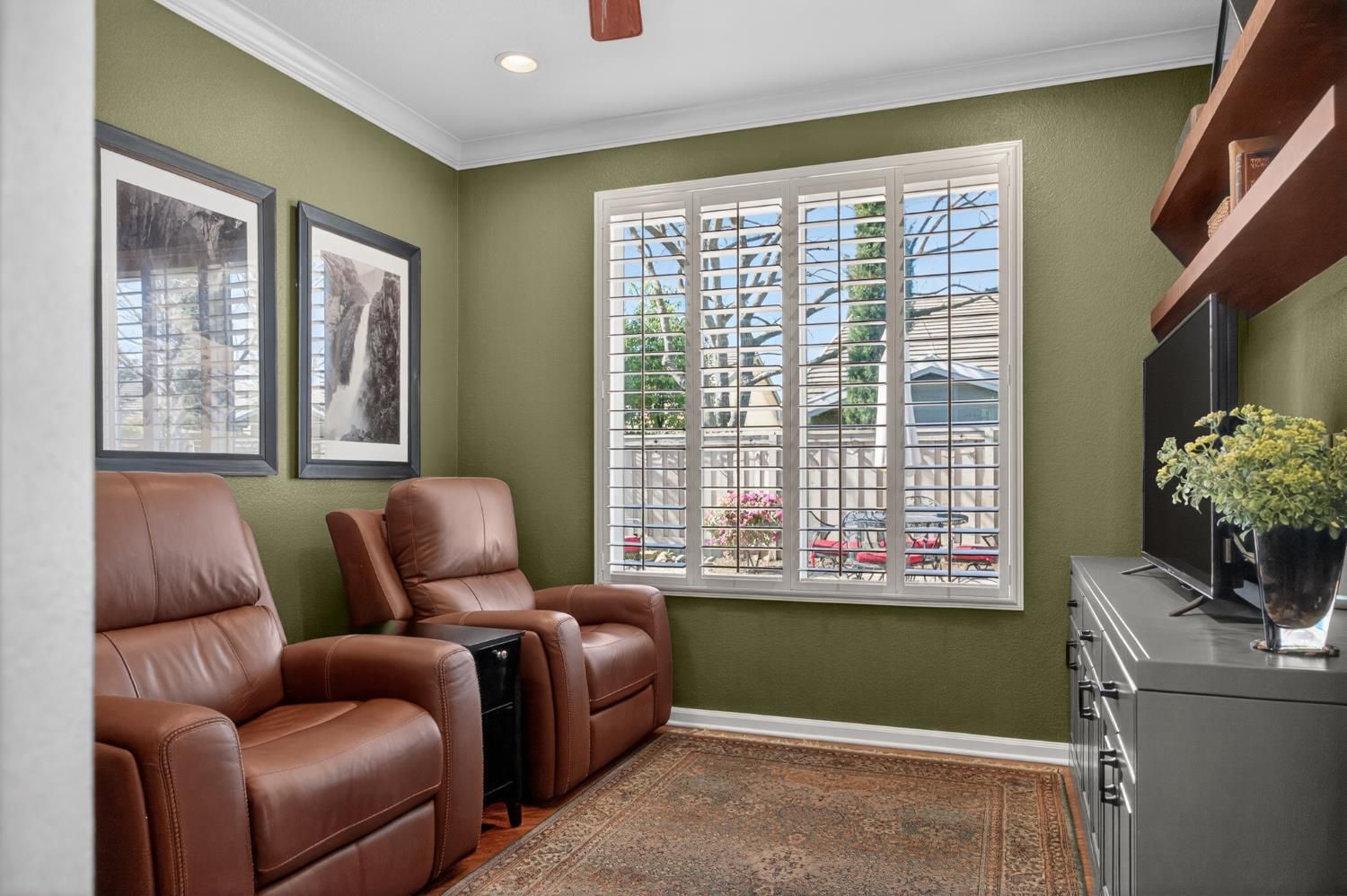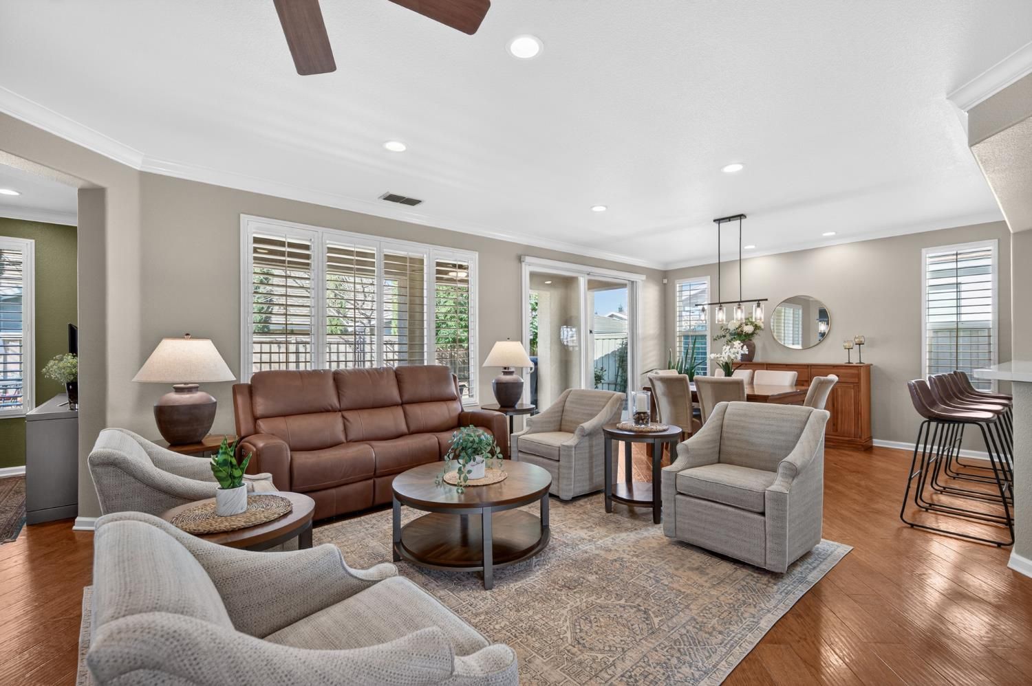 Welcome to effortless elegance in this highly sought-after and beautifully updated Plumas model within Sun City Lincoln Hills. A stunning home with a modern blend of sophistication coupled with the relaxed lifestyle the community is known for. From the moment you arrive, the inviting front courtyard sets the tone: an ideal space for morning coffee, evening wine, or dining alfresco with friends and neighbors. Inside, the open-concept floor plan feels bright, airy, and inviting, enhanced by rich hardwood floors, crown molding, plantation shutters, tasteful, modern finishes and clean contemporary lines throughout. The thoughtfully updated kitchen is both stylish and functional, featuring new quartz countertops, a stainless steel single-basin sink, new gas cooktop, double ovens, and sleek modern finishes - perfect for everyday living or entertaining. A new glass front door and retractable screen allows natural light and fresh air to flow effortlessly through the home, creating a seamless indoor-outdoor connection. A home designed for entertaining a crowd, yet cozy enough for two. Spacious living/dining room with ample seating & a modern fireplace flanked by custom built-ins with accent lighting. A cozy office, reading room or extra TV space sits adjacent to the living room. The master retreat overlooks the lush backyard oasis, and the spa-like ensuite features easy-access walk-in shower, upgraded tile flooring, custom cabinets, quartz counters, cheerful transom windows and a spacious walk-in closet with abundant built-ins. Whole house fan for more energy efficient living. Ideally located just steps from Kilaga Springs Lodge, where residents enjoy easy access to spa services and resort-style amenities. With golf nearby and countless activities at your fingertips, this home offers active living at its finest in one of Northern California's premier 55+ communities.