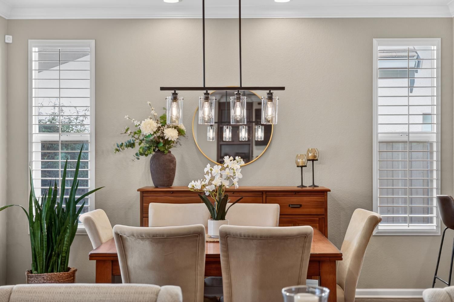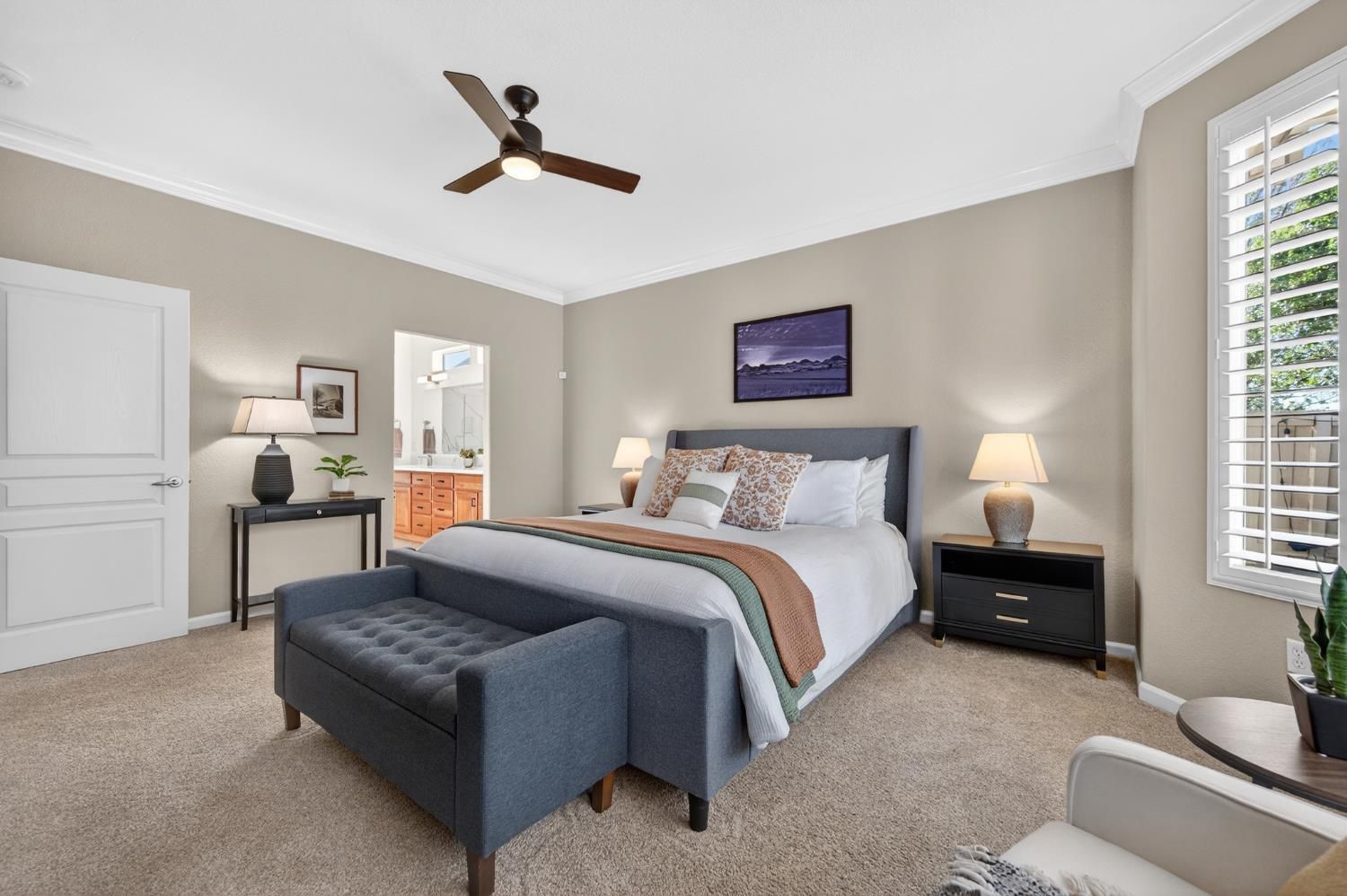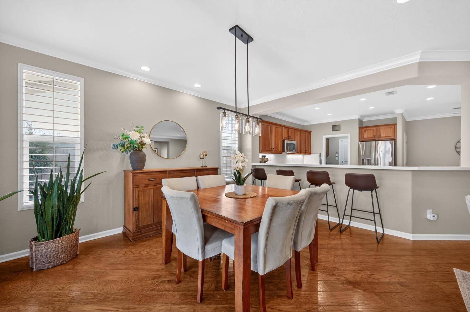 Welcome to effortless elegance in this highly sought-after and beautifully updated Plumas model within Sun City Lincoln Hills. A stunning home with a modern blend of sophistication coupled with the relaxed lifestyle the community is known for. From the moment you arrive, the inviting front courtyard sets the tone: an ideal space for morning coffee, evening wine, or dining alfresco with friends and neighbors. Inside, the open-concept floor plan feels bright, airy, and inviting, enhanced by rich hardwood floors, crown molding, plantation shutters, tasteful, modern finishes and clean contemporary lines throughout. The thoughtfully updated kitchen is both stylish and functional, featuring new quartz countertops, a stainless steel single-basin sink, new gas cooktop, double ovens, and sleek modern finishes - perfect for everyday living or entertaining. A new glass front door and retractable screen allows natural light and fresh air to flow effortlessly through the home, creating a seamless indoor-outdoor connection. A home designed for entertaining a crowd, yet cozy enough for two. Spacious living/dining room with ample seating & a modern fireplace flanked by custom built-ins with accent lighting. A cozy office, reading room or extra TV space sits adjacent to the living room. The master retreat overlooks the lush backyard oasis, and the spa-like ensuite features easy-access walk-in shower, upgraded tile flooring, custom cabinets, quartz counters, cheerful transom windows and a spacious walk-in closet with abundant built-ins. Whole house fan for more energy efficient living. Ideally located just steps from Kilaga Springs Lodge, where residents enjoy easy access to spa services and resort-style amenities. With golf nearby and countless activities at your fingertips, this home offers active living at its finest in one of Northern California's premier 55+ communities.