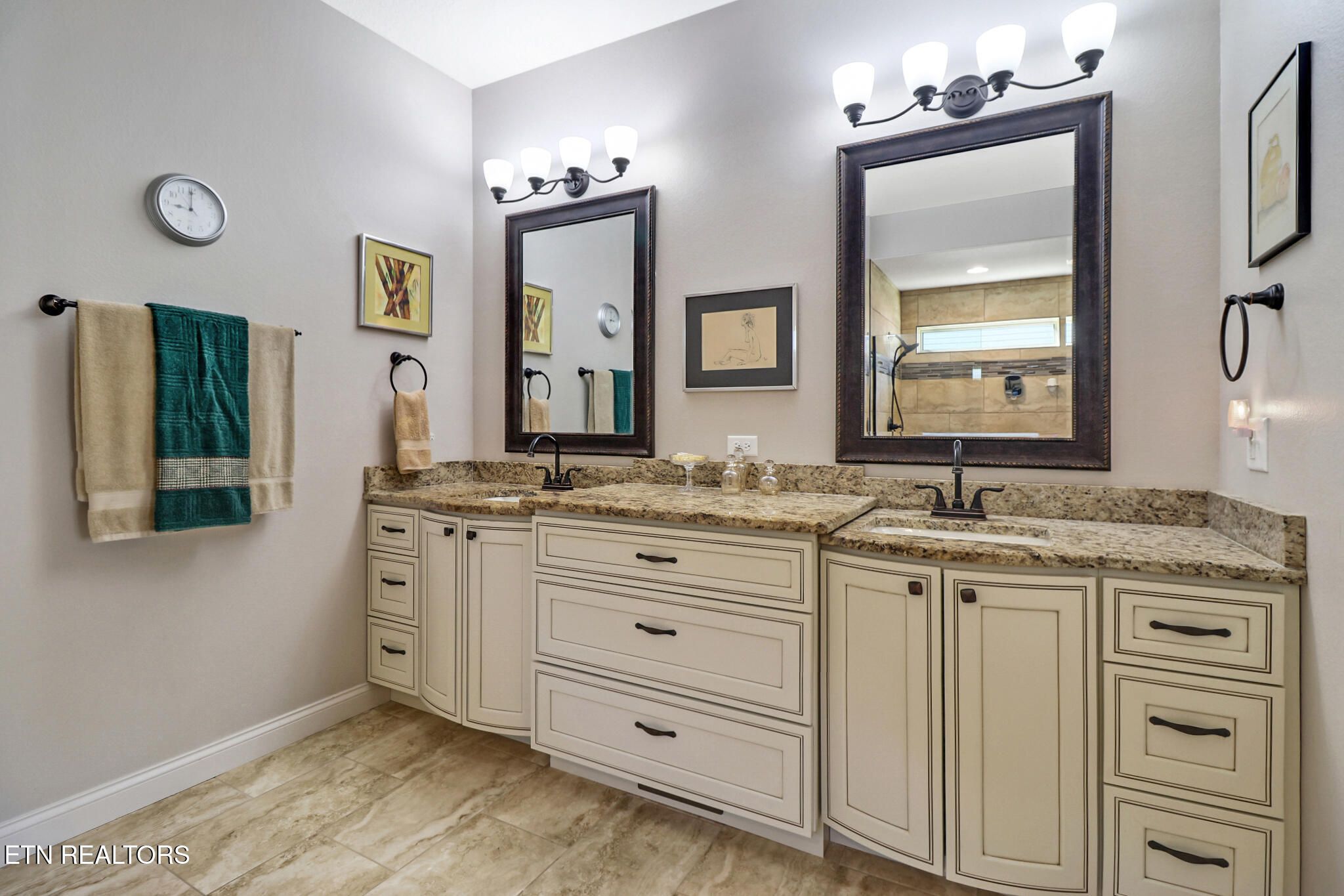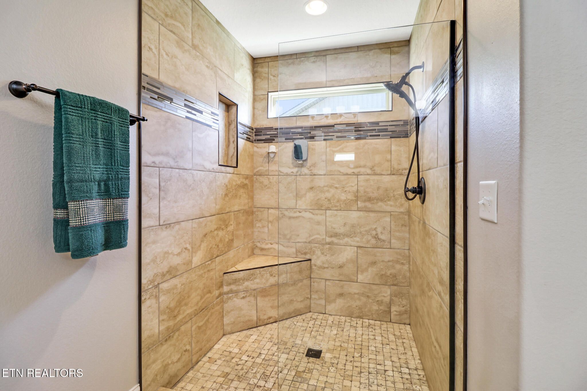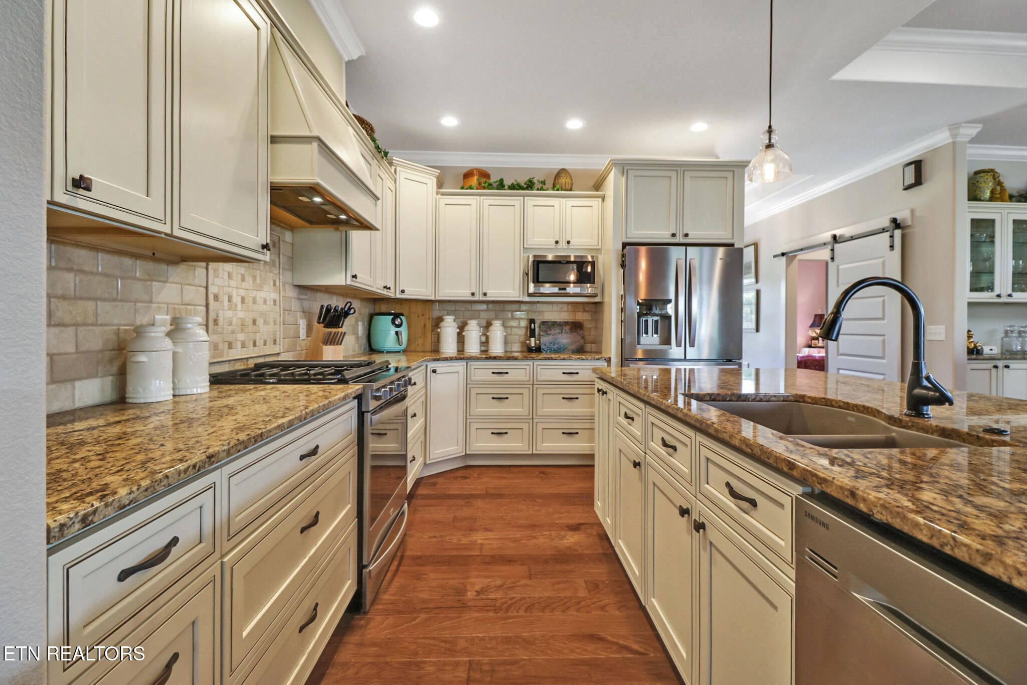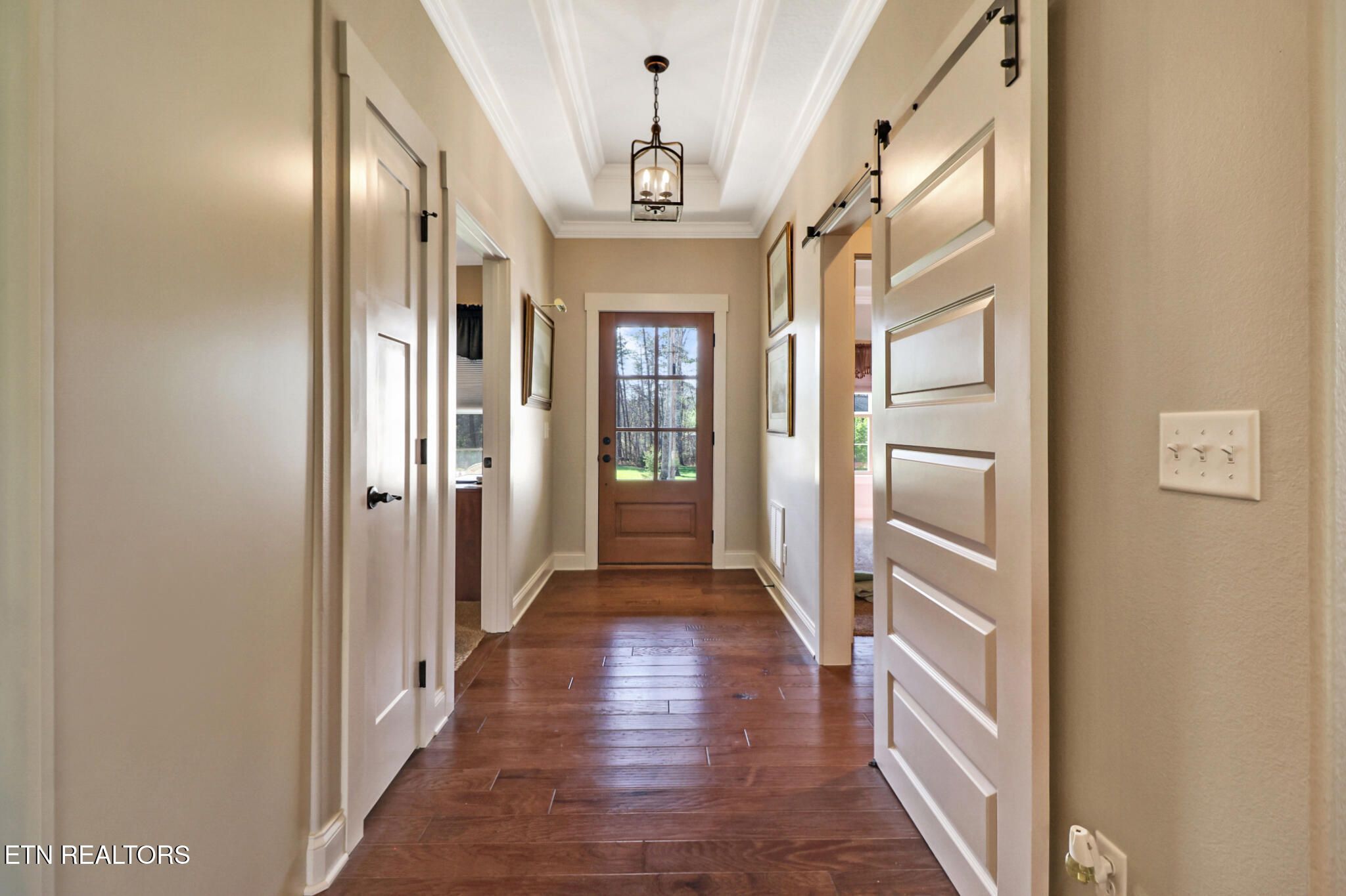 Lovely home with many upgrades throughout. Great room features a coffered ceiling, crown molding, built-ins, 2 transom windows, and natural gas log fireplace. Kitchen has a large walk-in pantry, antique white glazed cabinetry, granite countertops, tile backsplash, 9' island/breakfast bar, and extras like spice drawers and double trash drawer. Owners' suite has large walk-in closet, trey ceiling, step in shower with frameless glass, and granite counter with 2 sinks. Popular split bedroom floorplan. Guest bedroom and guest bath can be even more private when separated from the rest of the house simply by closing the sliding barn door. 11'x17' covered deck with pavers has ceiling fan, indirect lights, and railing. Large laundry room with antique white glazed cabinets. 11.5' x 14' open patio space with Crab Orchard Stone. Storage shed 10'x12' with electric, a ramp and double doors. Buyer to verify all information before making an informed offer. Fairfield Glade charges a $6,000 amenity fee to buyer at closing.