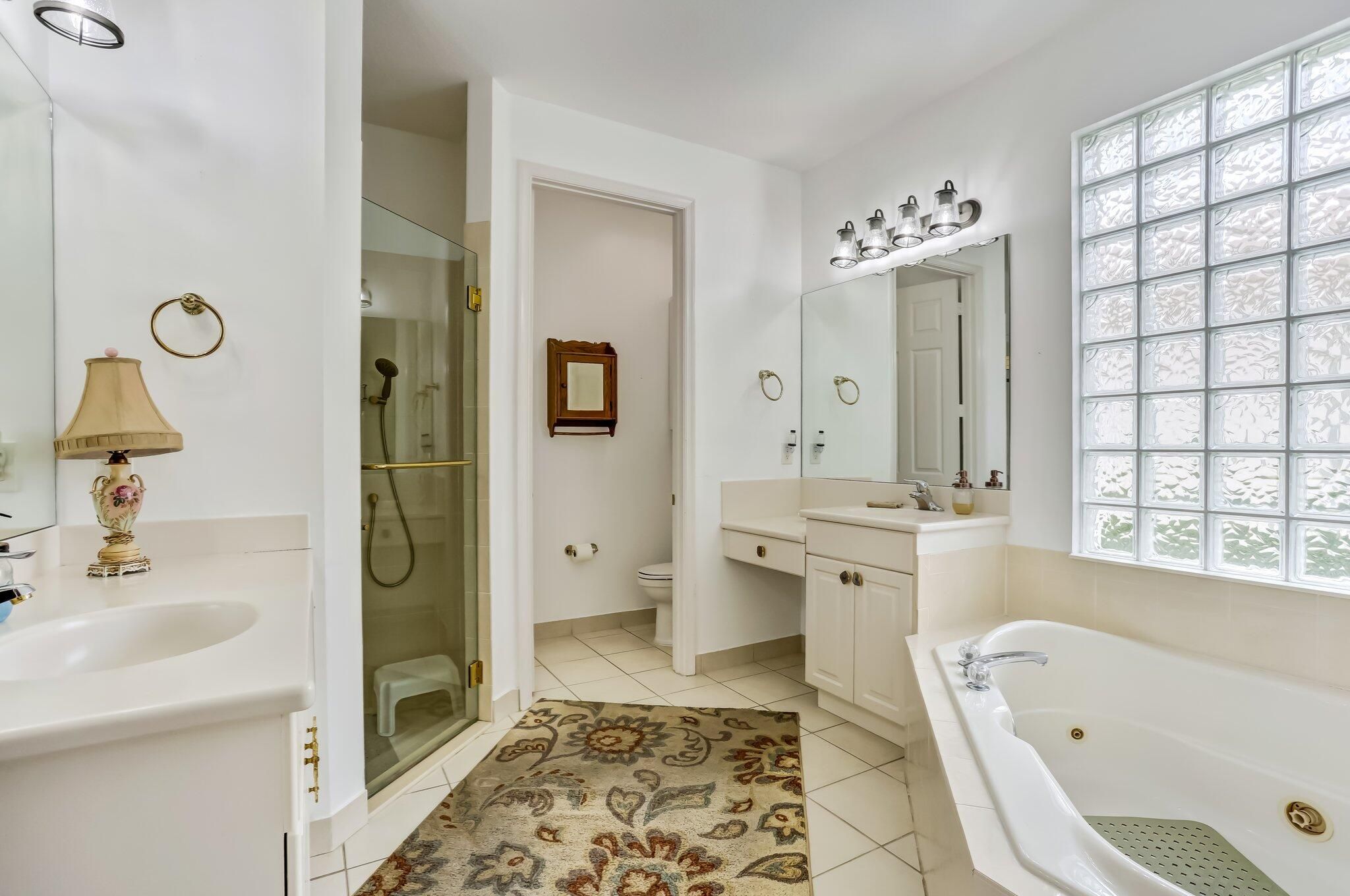 - Entrance Foyer, High Ceilings, Walk-In Closet(s), Split Bedrooms, Upper Level Living Area, Eat-in Kitchen, Separate/Formal Dining Room, Dual Sinks, Main Level Primary, Sitting Area In Primary Bedroom, Separate Shower, Soaking Tub