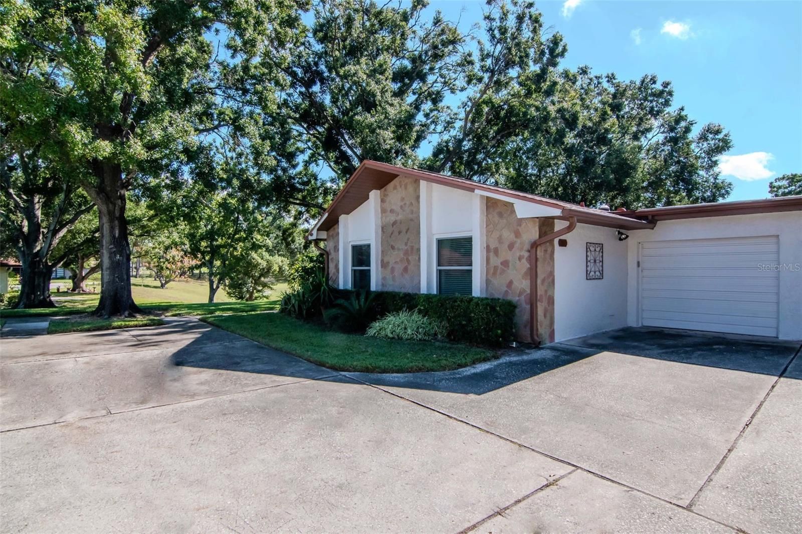 Enjoy maintenance free living in this beautiful, move-in ready villa in the highly desirable 55+ community of Highland Lakes. This corner end home is on a premium lot with a big wide open view of protected & well maintained acreage with stately trees & a green lawn. You'll love your view and the additional privacy this home affords. This villa with attached oversize garage has been substantially updated and extremely well maintained. Recent updates include hurricane rated windows & garage door, granite kitchen counters professionally painted cabinets, stainless steel Whirlpool appliances, a newer HVAC system, and beautiful easy care wood product flooring. Both bathrooms also have updates. The living/dining room combination make it a great space to relax in or entertain. A skylight over the dining area brings in lots of natural light. All appliances, including the washer and dryer convey with purchase. Furniture may also convey. Enjoy maintenance free living in desirable Palm Harbor's premier 55+ golf and lakefront community. Ownership includes your membership to the Highland Lakes HOA with endless amenities. This is definitely carefree living at its best!!! Come and take a look at this amazing villa in the incredible community of Highland Lakes. Conveniently located near beaches, parks, restaurants, and shopping. From the moment you step inside you’ll feel right at home!