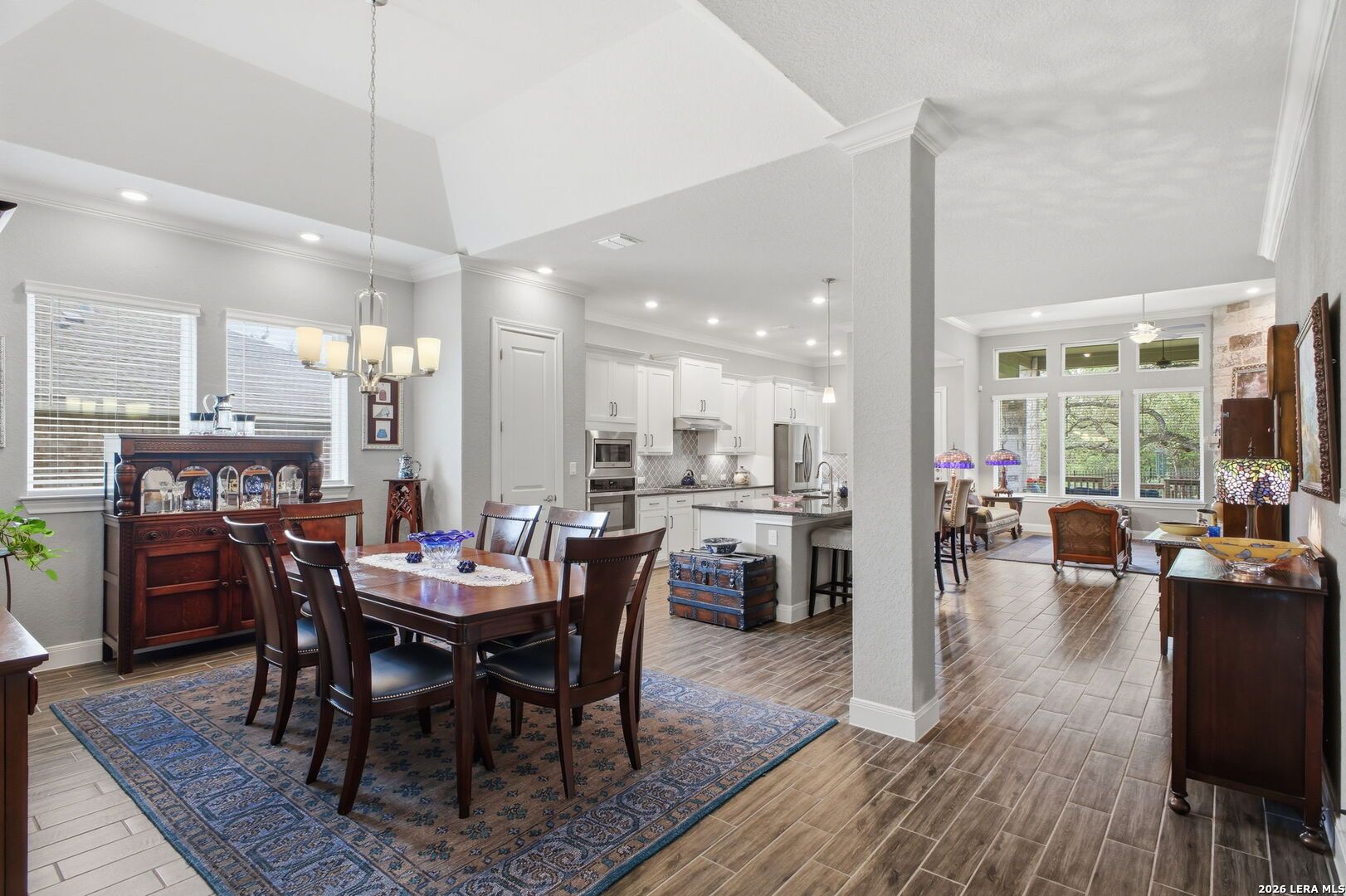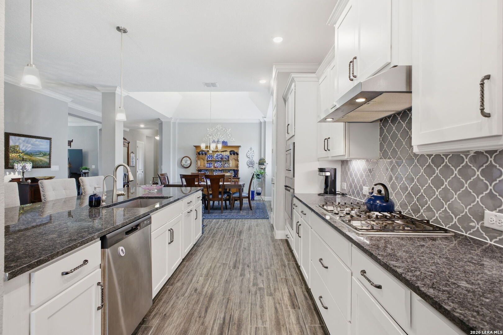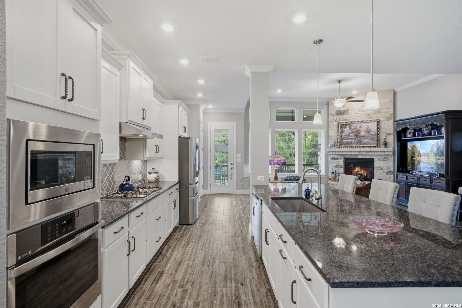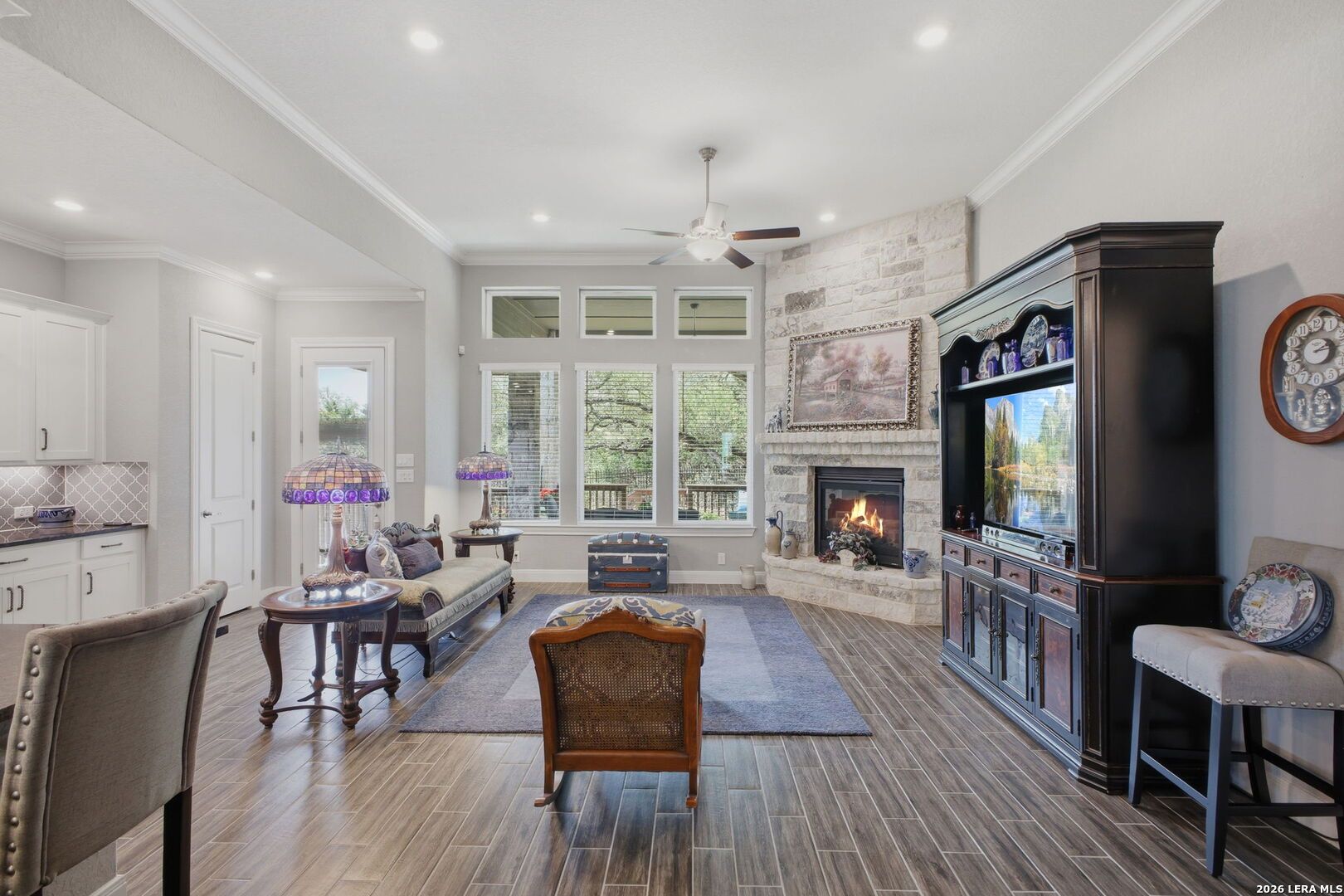 OPEN HOUSE 4/19, 12-3PM. Welcome to 22815 Grande Vista, located in the gated Campanas section of the highly sought-after Cibolo Canyons community. Built in 2021, this beautifully maintained one-story cul-de-sac home offers 2454 SF of thoughtfully designed living space and includes the remainder of the builder's 10-year limited warranty for added peace of mind. This 3 BRs, 2-bath home features an open layout with stunning faux wood-look tile flooring throughout the main living and wet areas, combining style and durability. The spacious kitchen and living areas flow seamlessly, ideal for both everyday living and entertaining. A versatile flex space provides the perfect option for a second living area, media room, home office, or playroom to fit your lifestyle. The private primary suite offers a true retreat with an oversized walk-in shower, double vanity, and a convenient pass-through walk-in closet with direct access to the laundry room. Secondary bedrooms are well-sized and provide flexibility for guests or additional workspace. Step outside to enjoy the expansive covered patio overlooking a lush greenbelt with access to the trails, creating a peaceful outdoor living space with added privacy. The charming covered front patio enhances the home's welcoming curb appeal. Enjoy low-maintenance living with year-round lawn care provided by the HOA. Residents of Campanas at Cibolo Canyons have access to resort-style amenities including two pools, pickleball courts, a clubhouse, and a fitness center. Conveniently located with easy access to Loop 1604 and Highway 281, and just minutes from premier shopping, dining, and entertainment, including the JW Marriott and world-class golf courses. This home offers comfort, flexibility, and an exceptional lifestyle in one of the area's most desirable gated communities. Schedule your showing today.