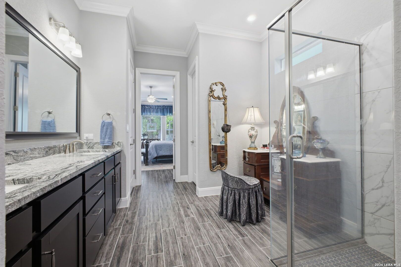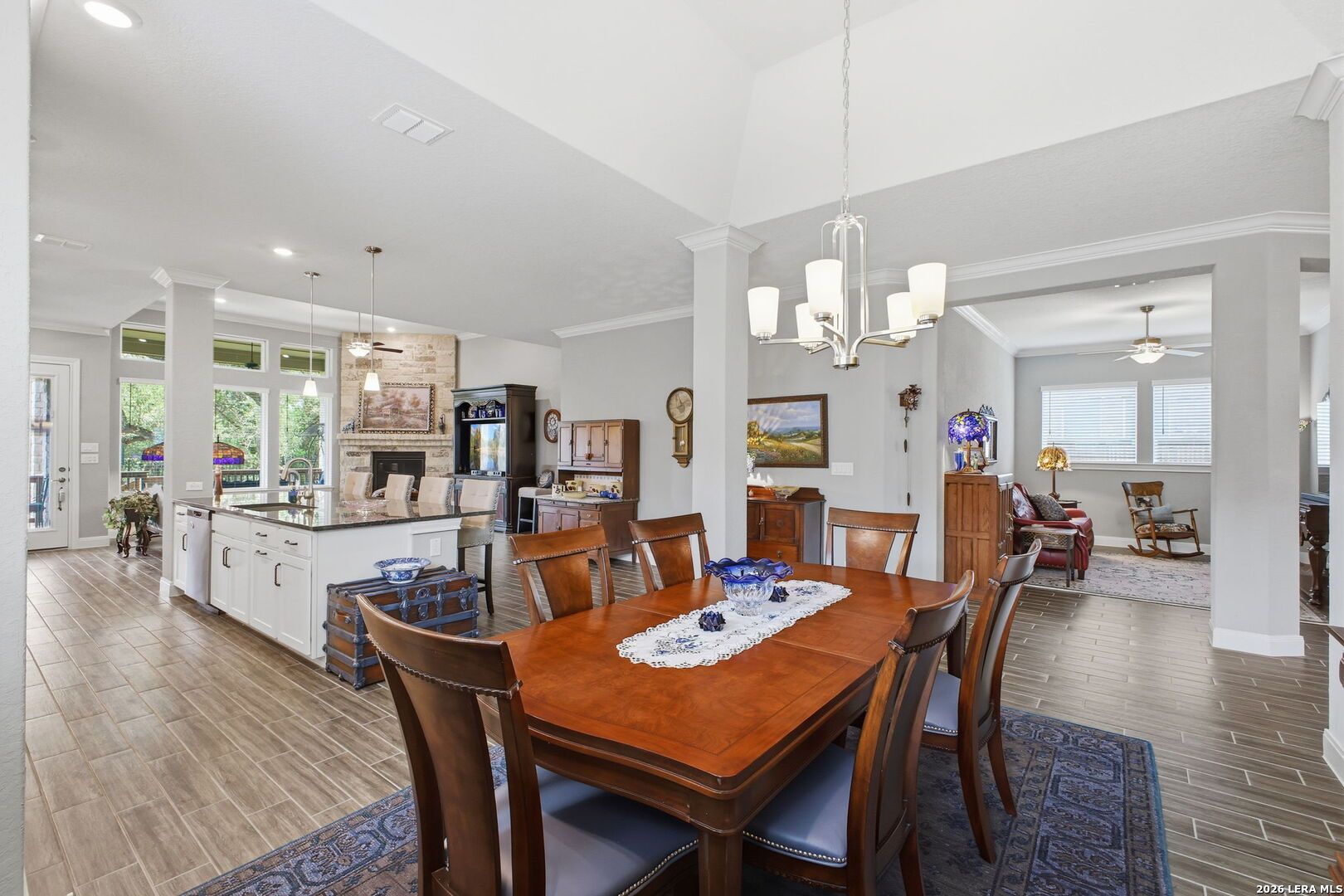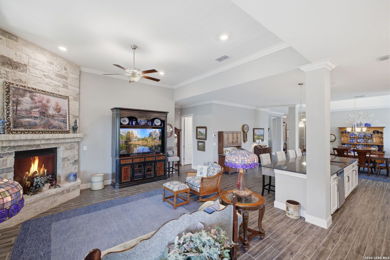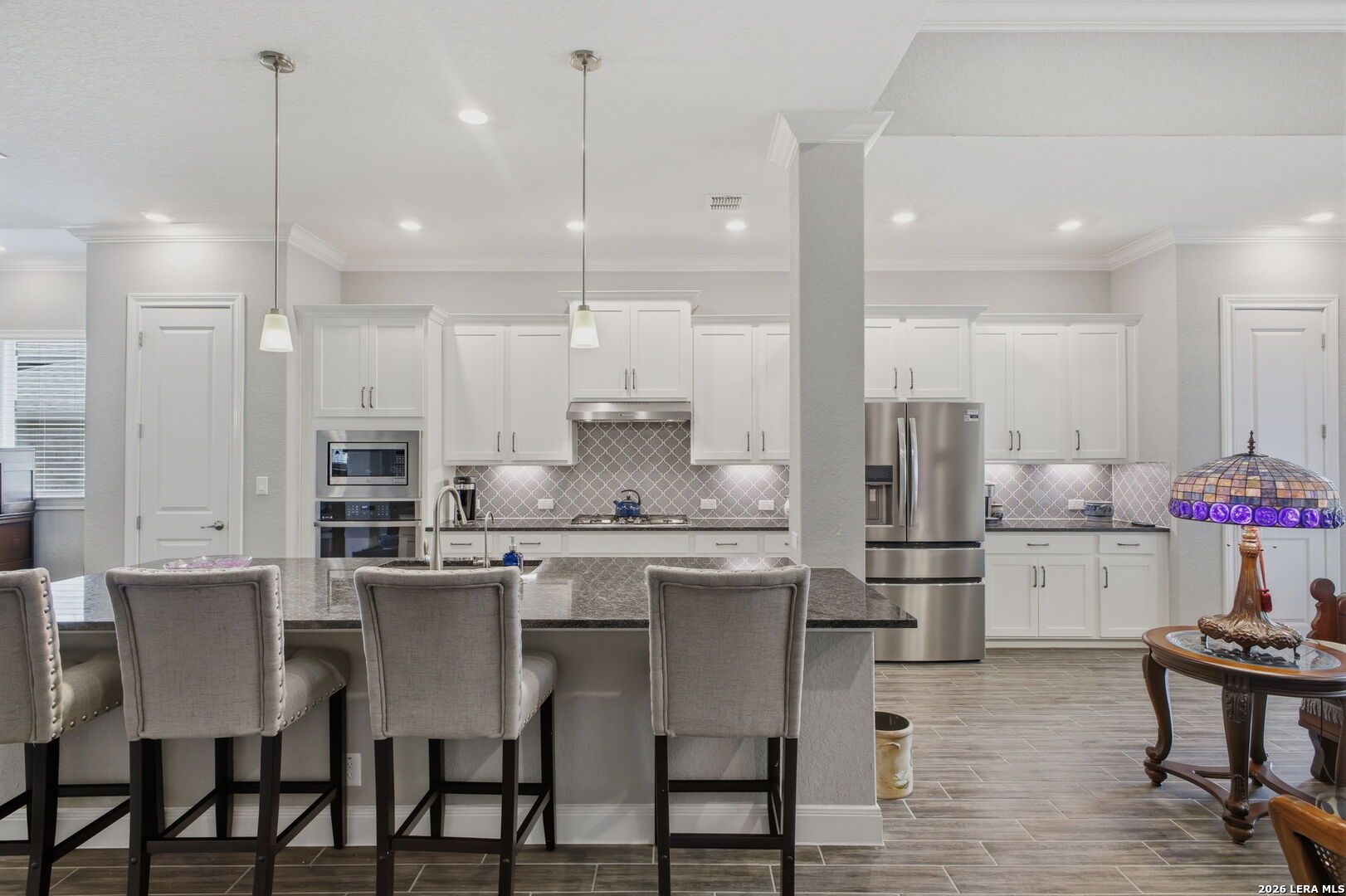 OPEN HOUSE 4/19, 12-3PM. Welcome to 22815 Grande Vista, located in the gated Campanas section of the highly sought-after Cibolo Canyons community. Built in 2021, this beautifully maintained one-story cul-de-sac home offers 2454 SF of thoughtfully designed living space and includes the remainder of the builder's 10-year limited warranty for added peace of mind. This 3 BRs, 2-bath home features an open layout with stunning faux wood-look tile flooring throughout the main living and wet areas, combining style and durability. The spacious kitchen and living areas flow seamlessly, ideal for both everyday living and entertaining. A versatile flex space provides the perfect option for a second living area, media room, home office, or playroom to fit your lifestyle. The private primary suite offers a true retreat with an oversized walk-in shower, double vanity, and a convenient pass-through walk-in closet with direct access to the laundry room. Secondary bedrooms are well-sized and provide flexibility for guests or additional workspace. Step outside to enjoy the expansive covered patio overlooking a lush greenbelt with access to the trails, creating a peaceful outdoor living space with added privacy. The charming covered front patio enhances the home's welcoming curb appeal. Enjoy low-maintenance living with year-round lawn care provided by the HOA. Residents of Campanas at Cibolo Canyons have access to resort-style amenities including two pools, pickleball courts, a clubhouse, and a fitness center. Conveniently located with easy access to Loop 1604 and Highway 281, and just minutes from premier shopping, dining, and entertainment, including the JW Marriott and world-class golf courses. This home offers comfort, flexibility, and an exceptional lifestyle in one of the area's most desirable gated communities. Schedule your showing today.