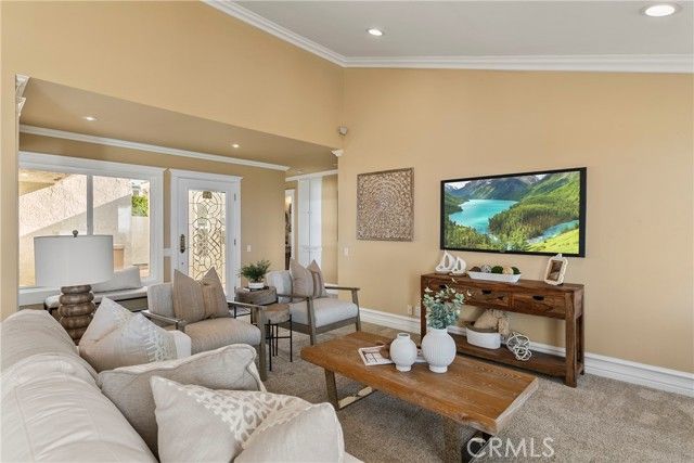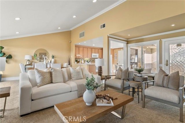 Rare opportunity, this attached home is on the most sought after street in Monarch Summit II, featuring Spectacular Ocean, Catalina, Saddleback Valley Mountains, Sunsets & City Lights Views, located on a single loaded street. This home has unobstructed panoramic views, without rooftop intrusion and sits across from Seaview Park where you can take in the joys of people watching & trails by day & quiet serenity & majestic city lights by night.This 1,400 sq ft single level floor-plan offers quality craftsmanship throughout with an updated, large dine in kitchen, custom maple cabinets, countertops with marble bullnose, built in cooktop, oven, dishwasher & refrigerator. It also features a computer desk with cabinetry & a centered wine rack. Additional features consist of an attached 2 car garage, Bose speaker systems, large format porcelain floors, crown moldings, custom baseboards, recessed lighting, paneled doors, custom window casings & large glass sliders throughout the house & a BBQ island off the kitchen courtyard.The kitchen’s walls are open to create one fabulous “great room” with a living room and additional dining space which enhances the sensational unobstructed views. The “great room” also features a polished marble fireplace, vaulted ceiling & a large slider opening to the back patio view. A large primary bedroom with vaulted ceilings that has a spectacular night-light view of the Saddleback Mts, Canyon below, while still providing ocean views from various perspectives. The adjoining bathroom has a large skylight, ceramic tile shower & tub, double vanity, polish porcelain floors & elaborate crown molding, backlit with custom lighting & a large closet area with mirrored sliders. The secondary bedroom has vaulted ceilings, crown molding, recessed lights & mirrored wardrobe closets. The remolded hall bath has porcelain tiled shower with glass doors, skylight and a beautiful custom vanity. This is resort style living in a 55 + community that has a pool, jacuzzi, clubhouse, nearby world class beaches, dining & shopping.