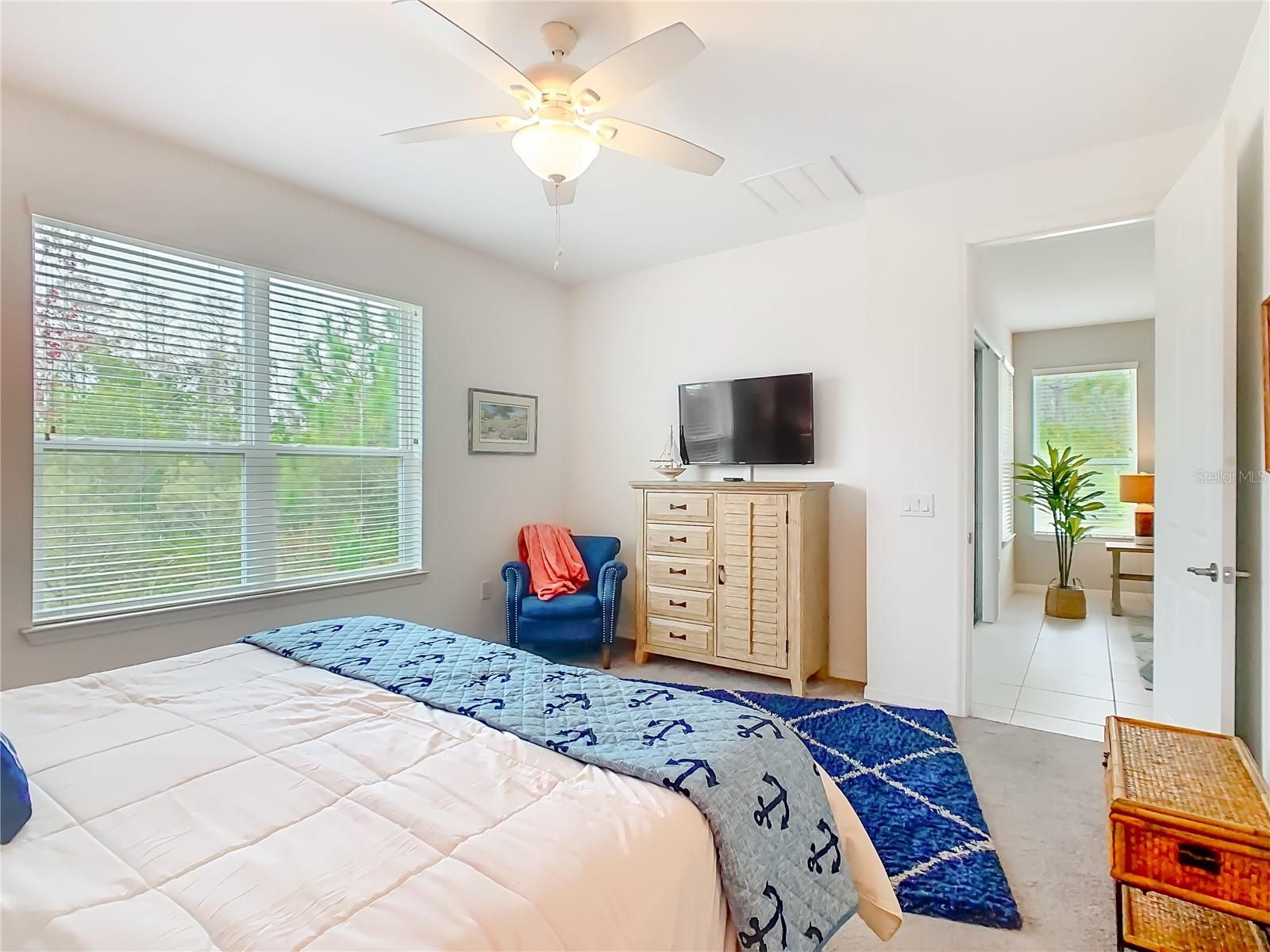 - Ceiling Fan(s), Living/Dining Room, Open Floorplan, Solid Surface Counters, Solid-Wood Cabinets, Split Bedrooms, Thermostat, Walk-In Closet(s), Window Treatments