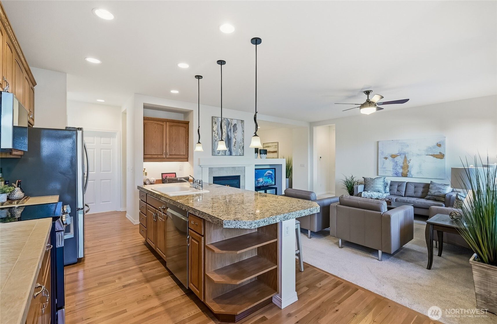 RARE-A true 3 bedroom Bainbridge model home located on one of Trilogy’s most coveted streets just a short level stroll from the Cascade Club, the hub of Trilogy activities & amenities. This flexible plan includes a spacious great room plus a large formal dining room with oversized skylight. The island kitchen features 42” cabinetry, pull-out shelving, all NEW stainless-steel appliances and an informal dining area. Primary suite w/private bath includes dual sink vanity, step-in shower & walk-in closet. 2 additional generously sized bedrooms plus a full bath. The fully fenced, private backyard includes a large partially covered deck. New roof in August 2025/New Furnace & AC in 2021/New carpet in Dec 2025. A pre-inspected turnkey gem. Ages 55+