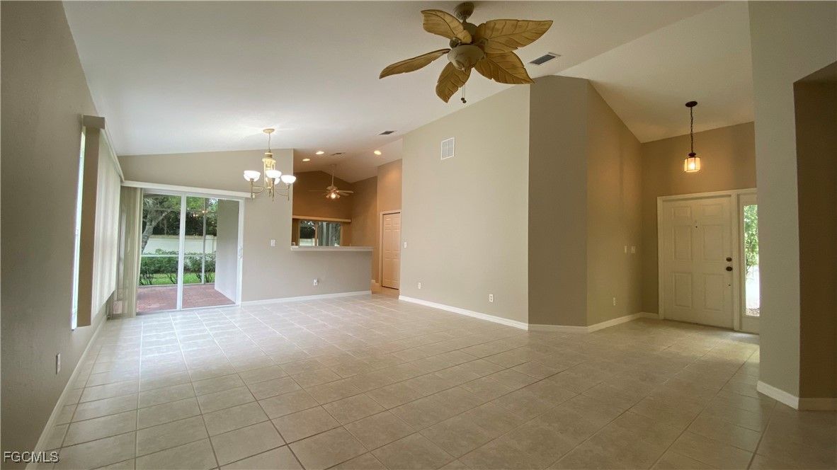 Welcome to the ultimate SW Florida life-style living in Cascades at River Hall. This 55+ gated community offers a LOW monthly HOA fee which covers your lawn care, cable/internet, resort style heated pool, amenities that include a full fitness center, clubhouse, sports courts including pickleball, bocce and tennis and loaded with social gatherings and activities to keep you entertained all year round. NO FLOOD ZONE so NO LENDER MANDATED FLOOD INSURANCE REQUIREMENTS! Private courtyard directs you to your front door. This will open up into a great room that flows right into your dining room and kitchen. The master is conveniently tucked away for the utmost privacy and the spa-like and spacious bathroom features a his/hers vanity, oversized soaking tub and separate shower. On the other side, a long hallway separates the guest bedroom, guest bathroom and den that is large enough that gives it flexibility to act as a third bedroom when family and/or friends visit. Glass sliding door, from both the kitchen and the dining room, will open up a screened-in covered lanai for your morning coffee or outside dining. Private, extended backyard with no neighbors behind you and desirable SSW exposure. This property has only had one tenant for over 5 years so it's in immaculate and pristine condition. Cascades is conveniently located between RSW and Punta Gorda Airports which are accessible by I-75 just 6 miles away. Golf is available and optional for residents.