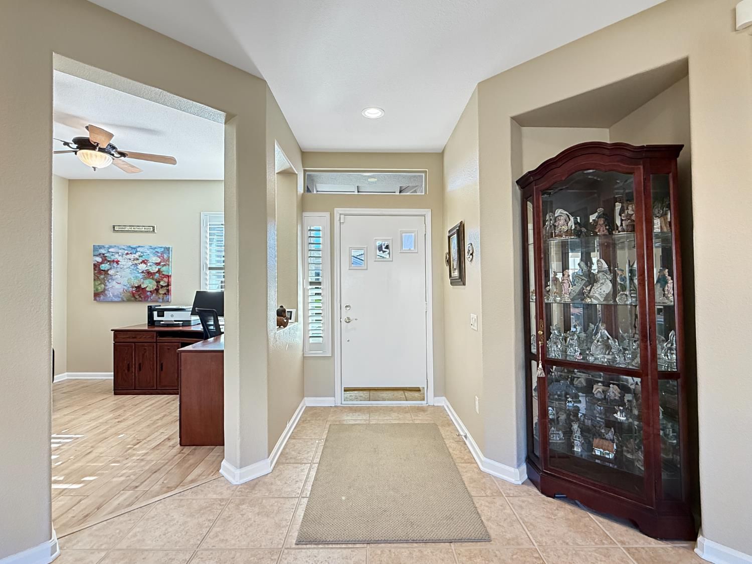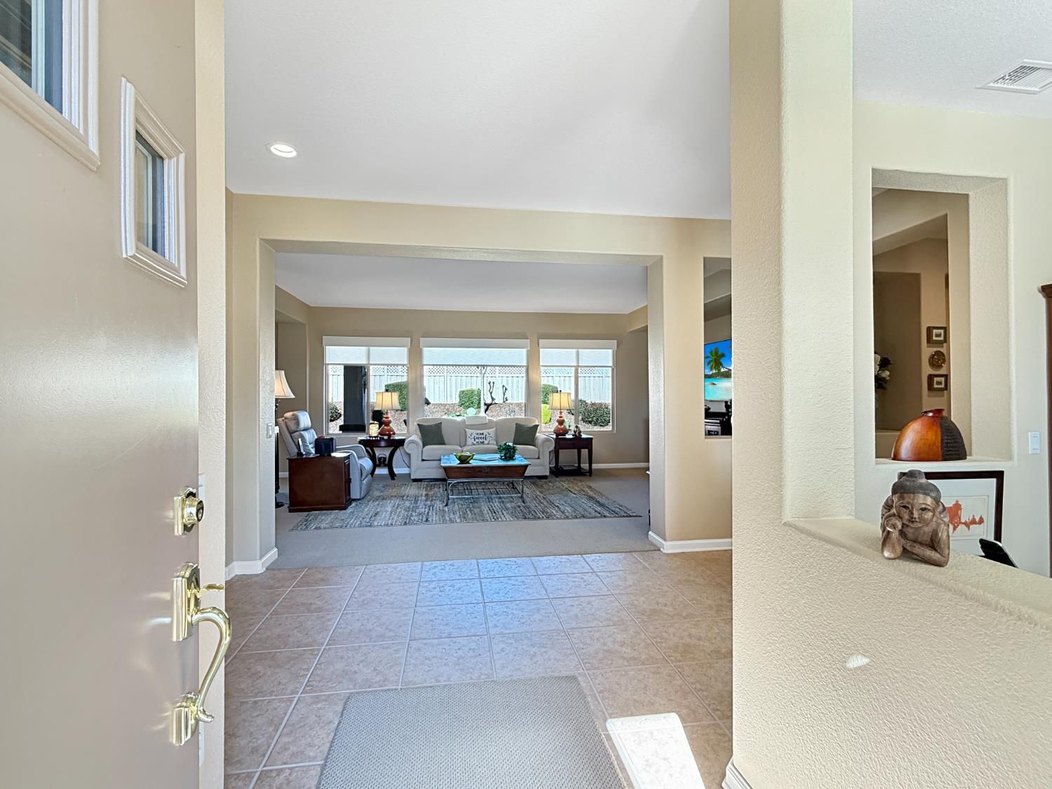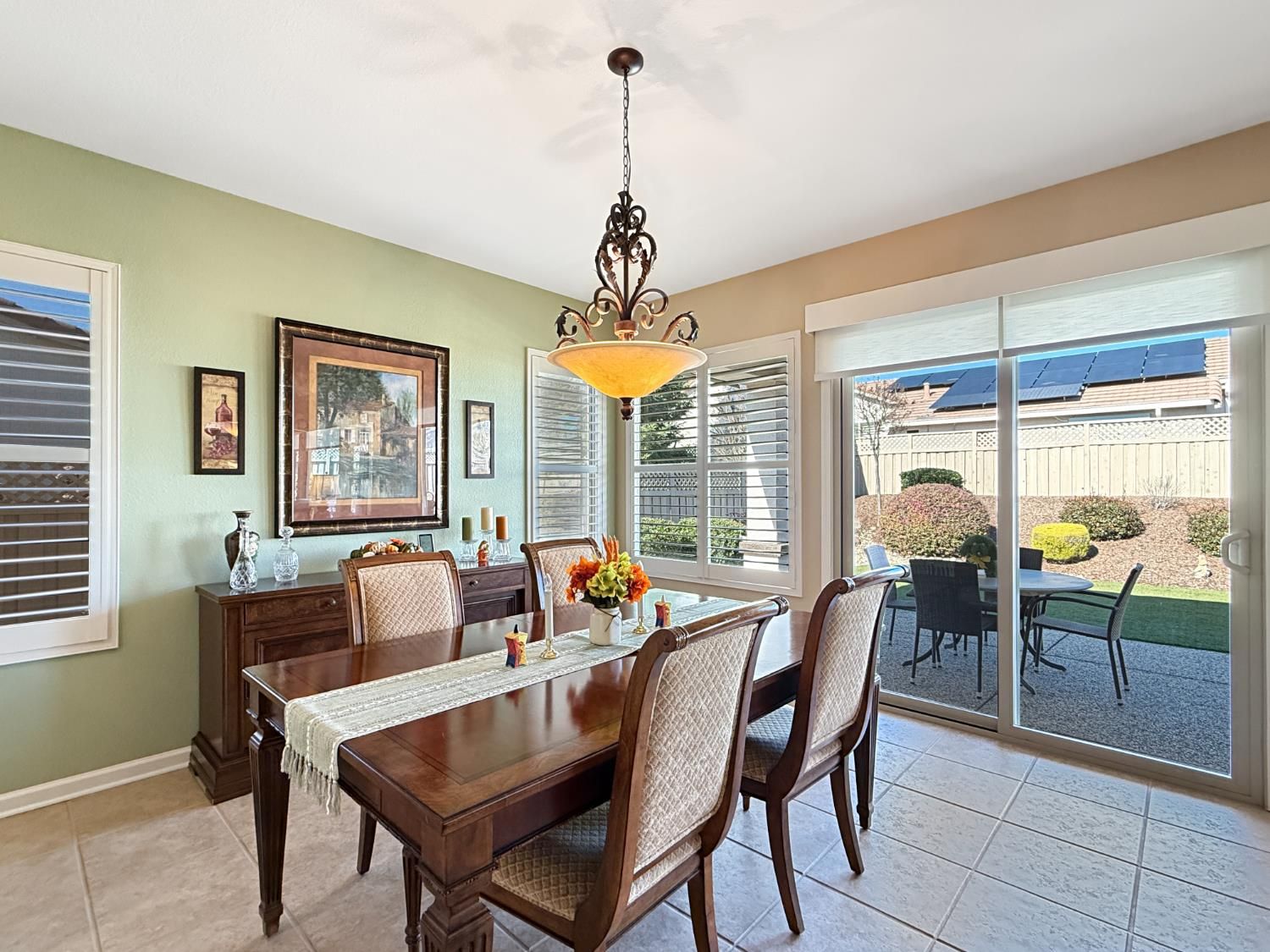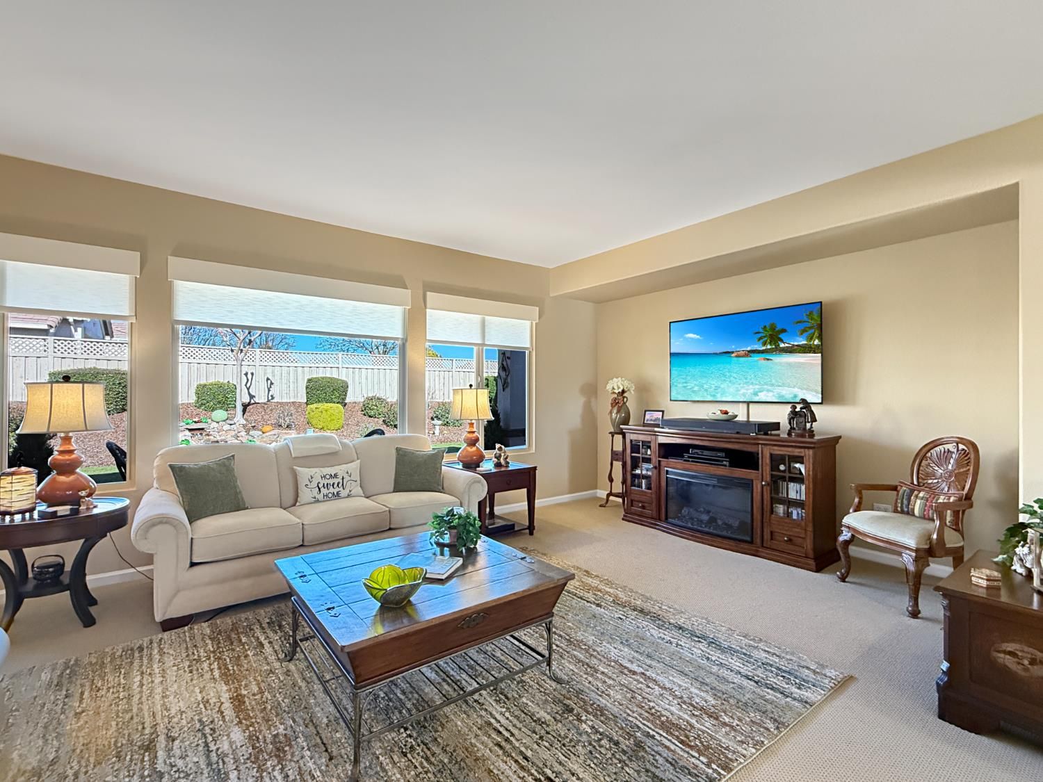 Welcome to this beautifully maintained Orchard Crest model in the sought-after 55+ community of Sun City Lincoln Hills. This thoughtfully designed home offers 2 bedrooms, 2 bathrooms, and a versatile office/den, providing flexible space for guests, hobbies, or working from home. Inside, you'll find a blend of tile, carpet, and vinyl plank flooring, Corian counters with granite in the kitchen, refinished cabinetry with pullout shelves, a pantry, shutters, and updated LED lighting throughout. The guest bedroom features a built-in desk and Murphy bed, creating the perfect multi-functional retreat. A newer HVAC system and no Kitec plumbing offer added peace of mind. Step outside to enjoy the beautifully landscaped backyard with a tranquil water feature, plus low-maintenance artificial grass. Living in Sun City Lincoln Hills means access to resort-style amenities including golf courses, fitness centers, pools, walking trails, clubs, and countless social activities, all designed for an active and connected lifestyle.