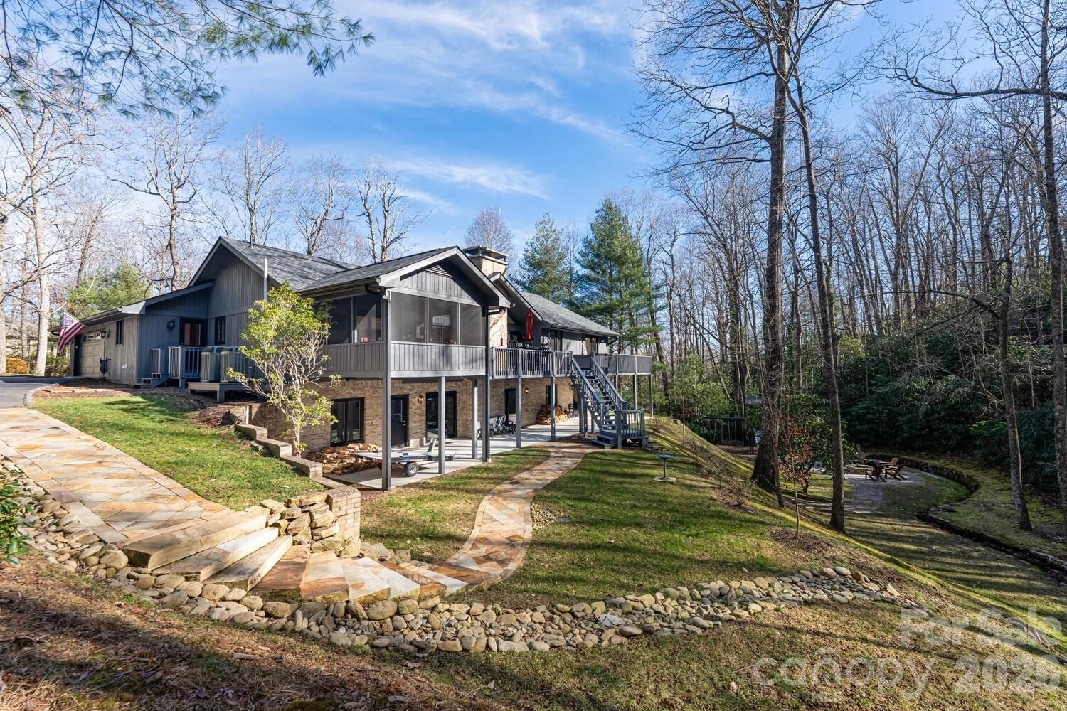 Welcome to this exquisitely renovated luxury mountain retreat located in the prestigious, gated Kenmure Golf Course Community. Completely and exquisitely renovated with high-end architectural design, this one-of-a-kind home offers luxury mountain living in one of the most sought-after gated communities in the area. Thoughtfully designed with high-end architectural finishes throughout, this remarkable residence offers refined living, exceptional entertaining spaces, and a seamless connection to the outdoors. This stunning home features four bedrooms, four full bathrooms, and two half baths, along with three garage spaces, including a main-level two-car garage and a separate driveway leading to an oversized lower-level one-car garage with workshop and storage space. The main level showcases an expansive open floor plan anchored by a dramatic great room with vaulted ceilings and a floor-to-ceiling stone fireplace, flanked by two French doors that open to the back deck for effortless indoor–outdoor living. The space flows beautifully into the gourmet chef’s kitchen, which is equipped with high-end appliances, including double wall ovens and a gas cooktop, an oversized island with breakfast bar seating, designer cabinetry, and a dedicated dining area ideal for hosting. The primary suite on the main level is a private sanctuary featuring a large walk-in designer closet with custom built-ins and a spa-like bath with heated floors, a heated towel warmer, double vanities, and a walk-in tiled shower. A light-filled study with a wall of windows provides peaceful outdoor views, while a second main-level bedroom offers a stunning en-suite bath. Completing the main level are a powder room and a laundry room with heated tile flooring. The lower level offers exceptional flexibility and comfort with an expansive family room centered around a stone fireplace, a second primary suite with a large walk-in closet and a luxurious bath featuring a walk-in shower, heated floors and heated towel warmer, an additional guest bedroom with a walk-in closet, en-suite bath also with heated floors and heated towel warmer, and an additional half bath. Outdoor living is elevated with a spacious open deck, a screened porch, a patio, and a flagstone walkway leading to a charming paver sitting area, creating multiple spaces to relax, entertain, and enjoy the mountain setting year-round. Conveniently located just minutes from shopping, dining, and everyday amenities. Don't miss your chance to experience the beauty and craftsmanship of this exceptional property.