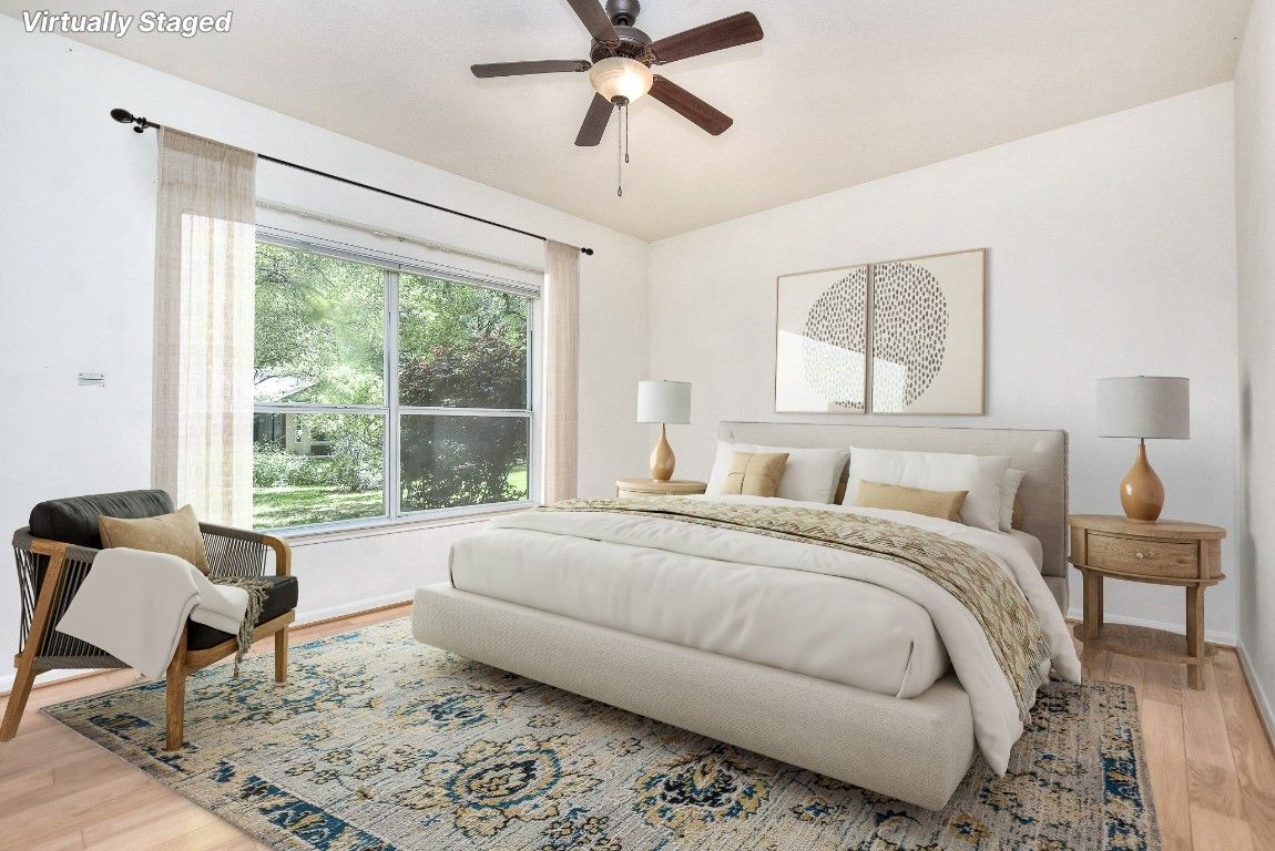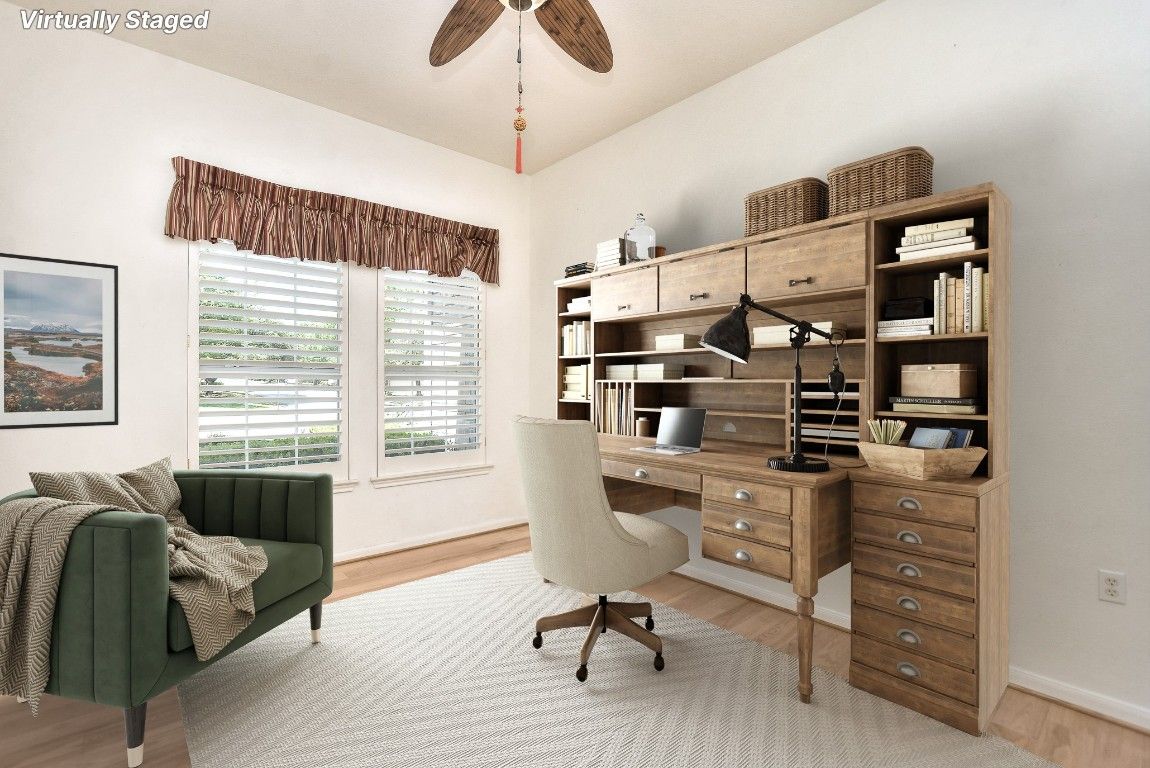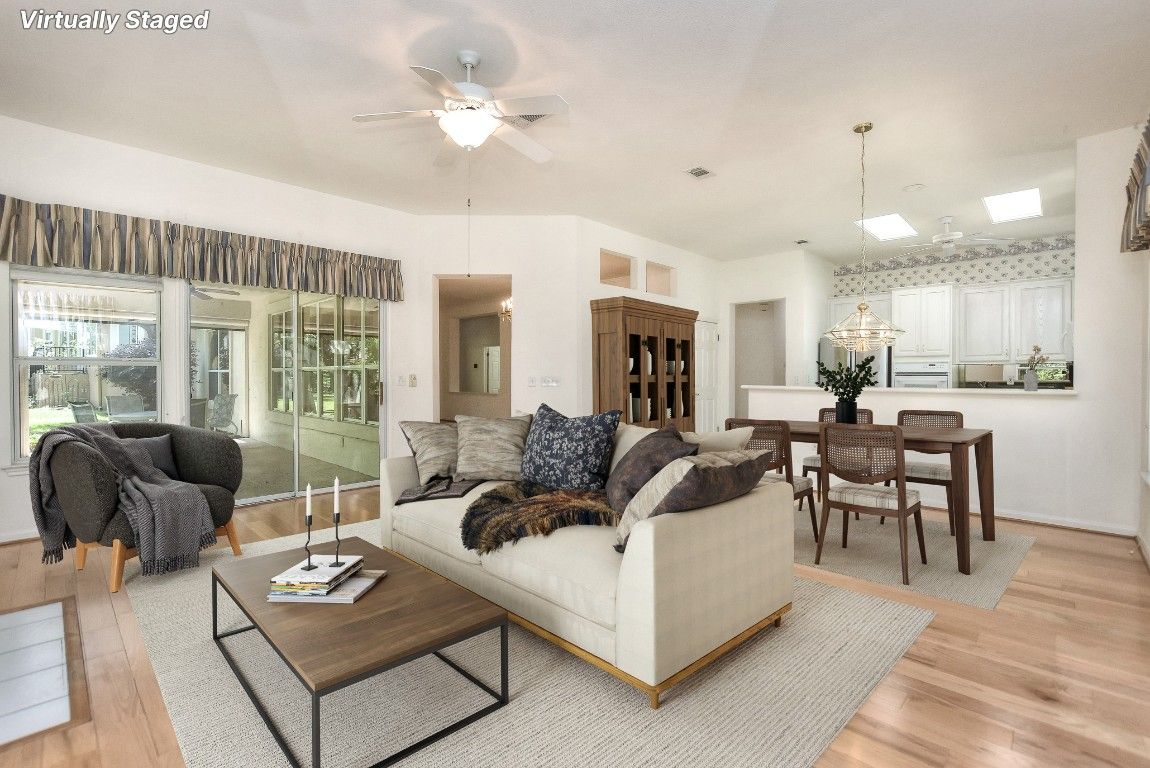 Priced to sell! This charming Sun City home offers a rare opportunity to make updates your way and still enjoy positive equity once improvements are complete. With a solid layout, prime location, and timeless curb appeal, 229 Whispering Wind is ready for its next chapter. Nestled beneath mature oak trees with serene greenbelt and golf course views, this beautiful 2-bedroom, 2-bath home blends comfort, space, and Sun City’s signature active lifestyle. Warm wood floors flow through the main living areas, complemented by tile in the kitchen and baths. The flexible floor plan features a formal living and dining area, plus a versatile office or flex space. The spacious kitchen opens to a cozy family room with a gas fireplace and breakfast bar. The oversized primary suite offers peaceful views, dual vanities, a separate tub and shower, and a generous walk-in closet. Step outside to the covered patio with a motorized drop-down screen—ideal for relaxing and taking in the beautifully landscaped yard and golf course beyond. Don’t miss this exceptional value in one of Georgetown’s most desirable 55+ communities—schedule your showing today!