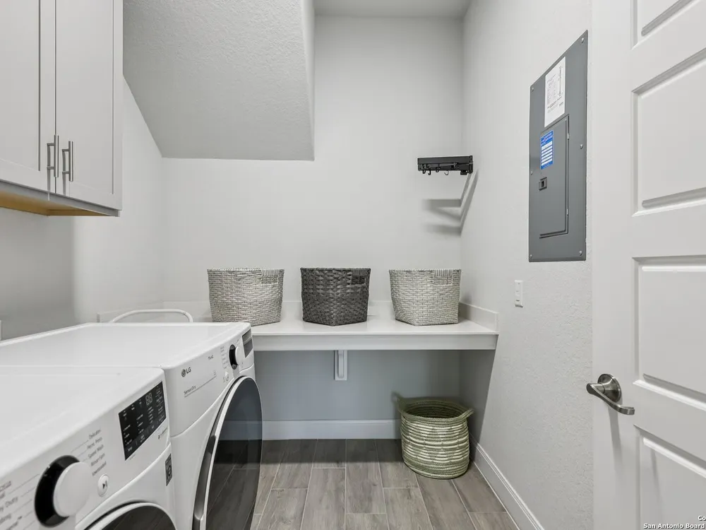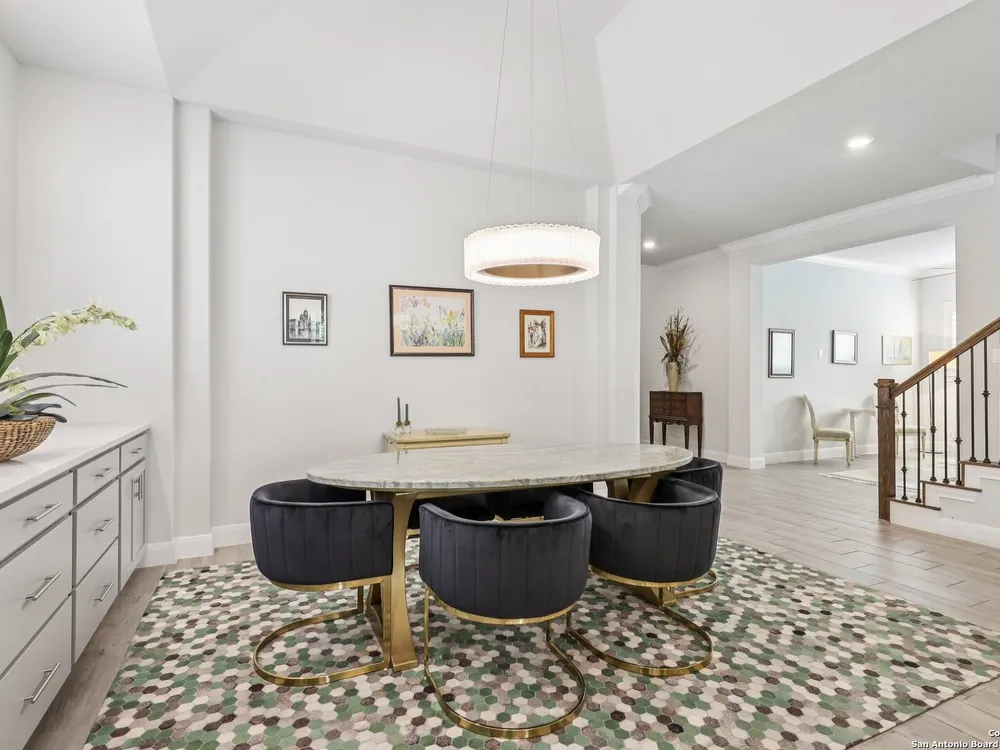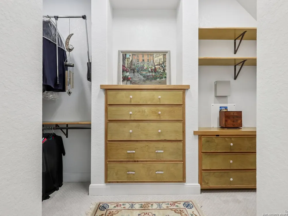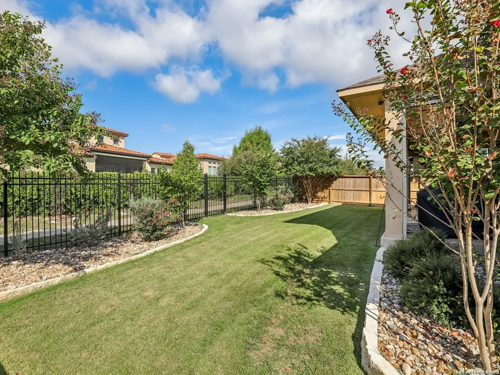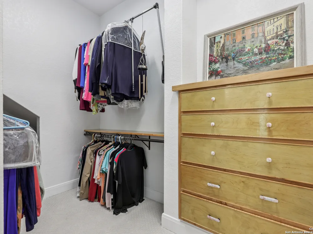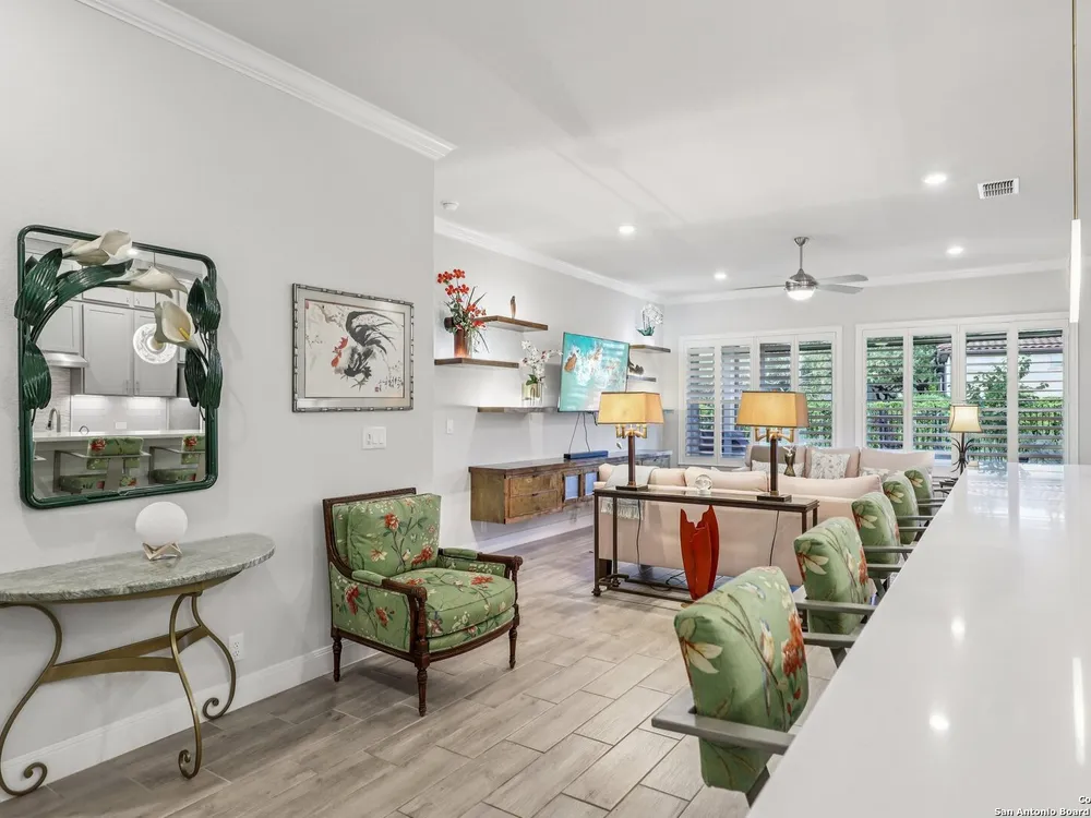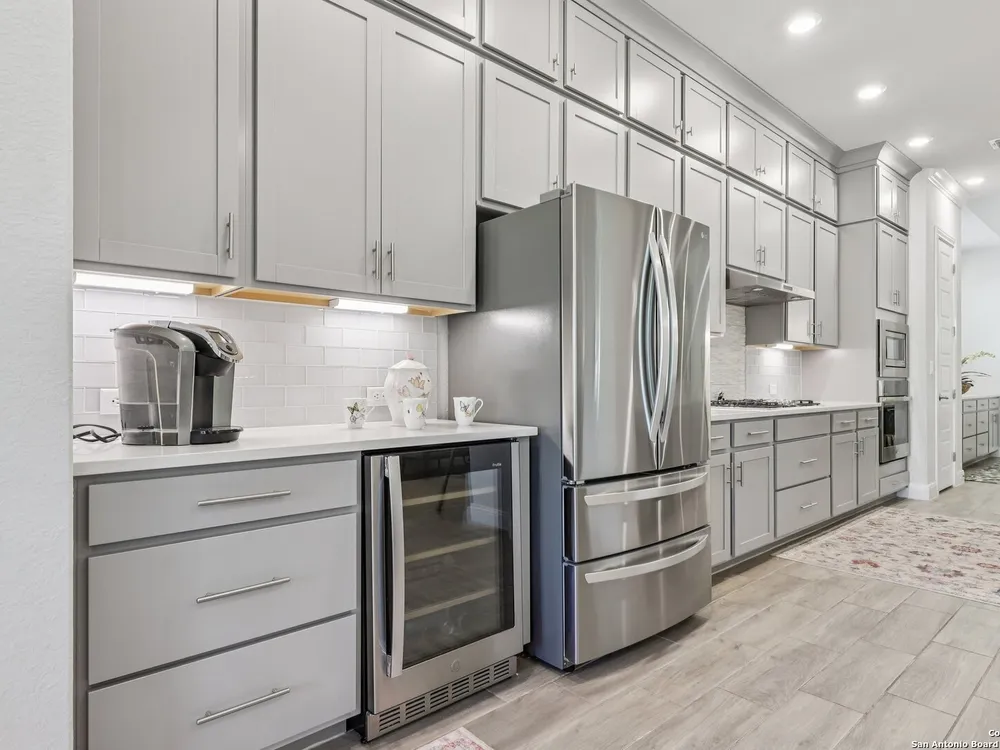 Welcome to your dream oasis! Nestled within the prestigious gated community of Campanas at Cibolo Canyons, this stunning 4 bedroom, 3 bath home showcases an exquisite blend of luxury and functionality, perfect for today's modern family. As you step inside, the open-concept design greets you with elegant tile flooring that flows seamlessly throughout the main living areas. This beautifully appointed home features three spacious bedrooms and two luxurious bathrooms on the main floor, providing comfort and convenience for family and guests alike. The sophisticated dining room, adorned with custom lighting and a built-in buffet, sets the stage for memorable gatherings. The generous kitchen is a chef's delight, equipped with stainless steel appliances, a gas cooktop, and an impressive array of ceiling-height cabinetry for abundant storage. Designer pendant lighting illuminates the space, enhancing the upgraded countertops, while the double pantry and a dedicated butler's area create the perfect coffee bar for your morning routine. The expansive living room is the heart of the home, boasting custom-made floating cabinets and lighted shelves that add a touch of elegance. A breathtaking bank of windows invites the outdoors in, showcasing the serene backyard and leading to an extended covered patio complete with gas plumbing, epoxy flooring and electric screens by Texas Shades, perfect for those warm summer days. For those who work from home, a spacious study offers the ideal space, featuring a built-in desk and bookshelves, allowing you to create a productive and inspiring environment. Throughout the home, plantation shutters provide both elegance and privacy, allowing you to tailor the light as you wish. Retreat to the primary suite that serves as a tranquil sanctuary featuring a large walk-in shower and double vanity. The custom-designed closet and dressing area, featuring built-in dressers, ensure that organization is both effortless and stylish. Ascend to the upper level, where the expansive fourth bedroom awaits, showcasing a custom storage and closet system along one wall, an additional walk-in closet and a versatile full bath. This space can seamlessly transform into a media room, craft room, or game room, offering flexibility for all your lifestyle needs. But that's not all! This home also includes a walk-in attic with easy access via its own staircase in the garage, complete with epoxy flooring, ideal for storing holiday decorations and seasonal items effortlessly. Every inch of this home has been thoughtfully designed with meticulous attention to detail. Don't miss the opportunity to own this incredible property in one of the most sought-after communities.