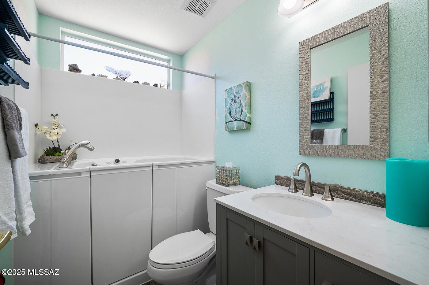 Welcome to Sun City Oro Valley, a premier Del Webb 55+ community in Rancho Vistoso! This stylish 2-bed, 2-bath single-story home features an updated kitchen, modern tile floors, spa-like primary bath with walk-in shower and dual vanity, and a hall bath with walk-in tub. Enjoy an OWNED SOLAR system for energy savings, a WATER SOFTENER, and ALL APPLIANCES INCLUDED. Relax in your private backyard with hot tub. Community amenities include a pristine golf course, resort-style pools, fitness centers, clubs, and mountain views--perfect for an affordable, active Tucson lifestyle!