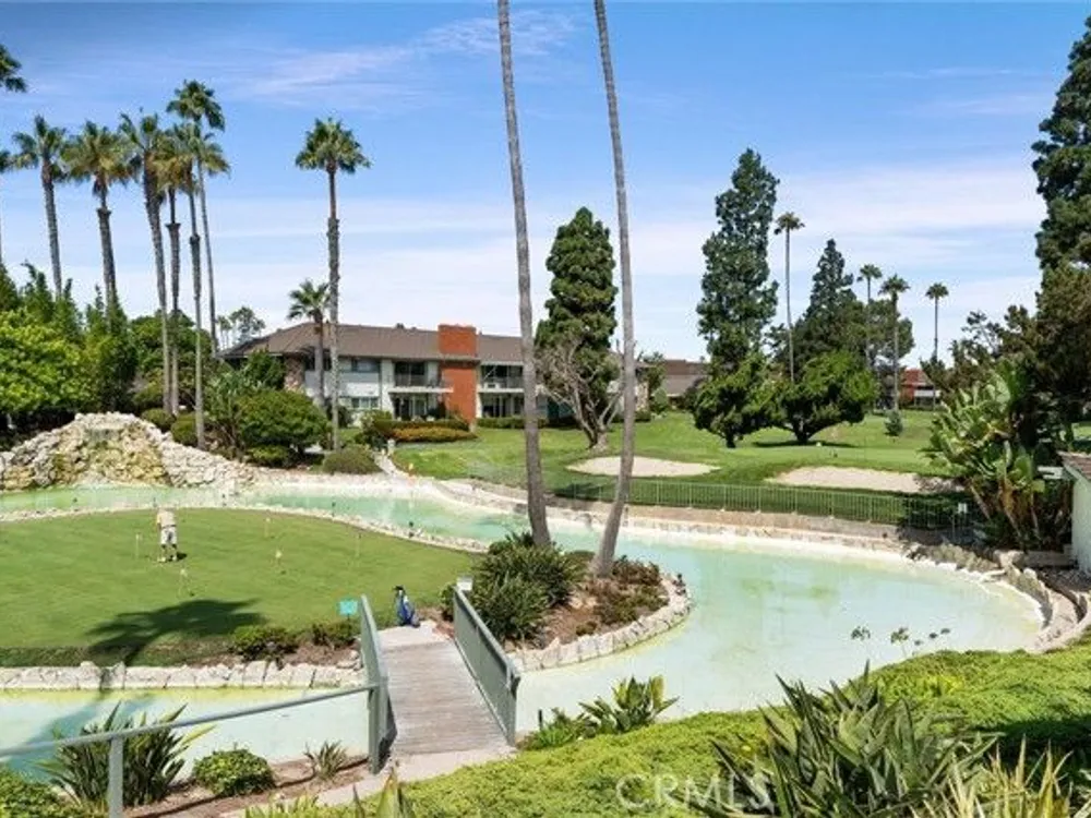 Welcome to this gorgeous New Horizons condo featuring exclusive golf course views. Located in a peaceful park-like setting with landscaped grounds this extra-large 1 bedroom plus den, 2 bathroom home is ready for a new owner. Wide-plank flooring flows throughout this open floorplan. The spacious living room features a beautiful tile fireplace, a newly added extra-large bar height island, double pane windows, and a slider to your first private balcony. The unit also features a flex space off of the living room which can easily be converted into a second bedroom, office, or kept just as is for a spacious living area. Both bathrooms have been remodeled with the guest bathroom shower being remodeled in 2025. Unwind and relax in the spacious primary suite featuring lovely views, a slider to your second private balcony, and a sizable walk-in closet with built-in cabinets. Located within the New Horizons 55+ community come enjoy resort style living with two pools, 9-hole golf course, tennis courts, exercise rooms, billiard room, card room, meeting & conference rooms, ceramics and woodworking studios, picnic & barbecue areas, and so much more!