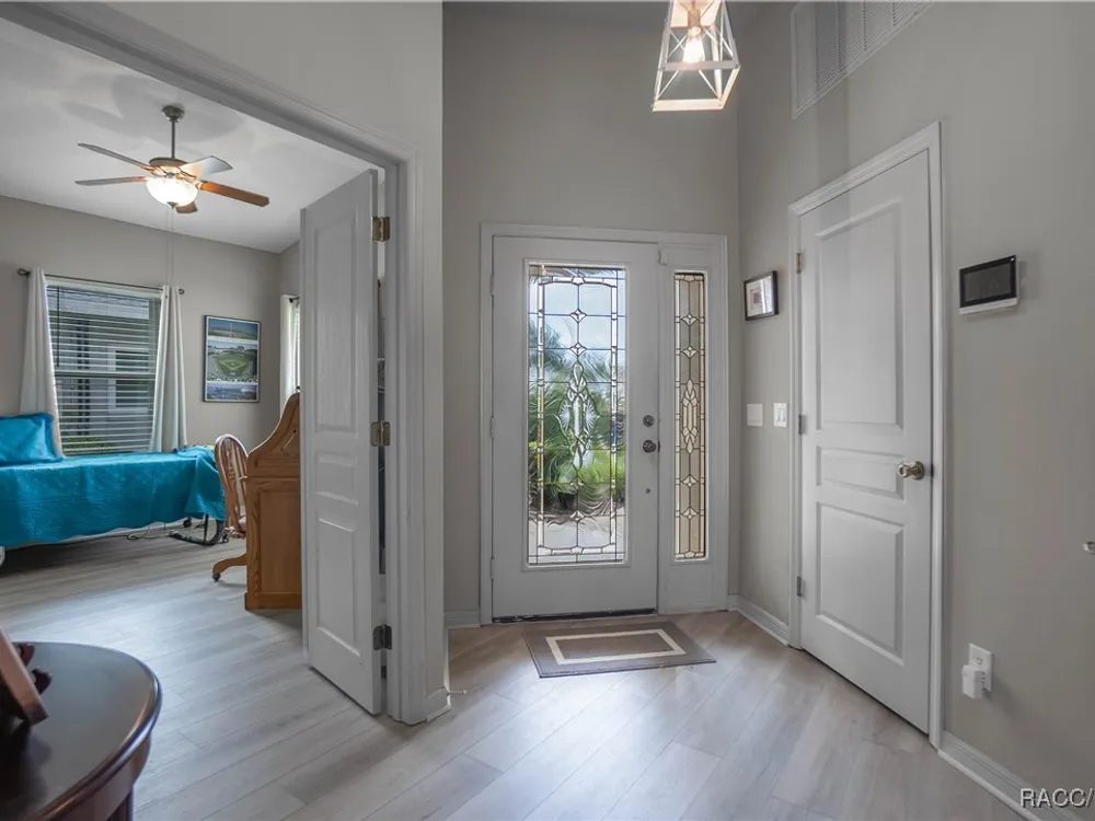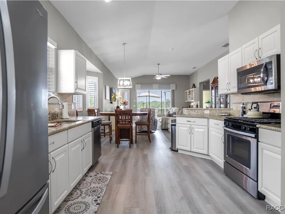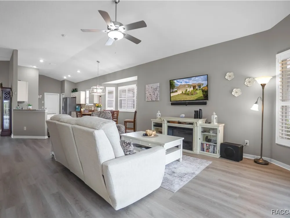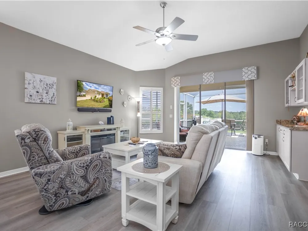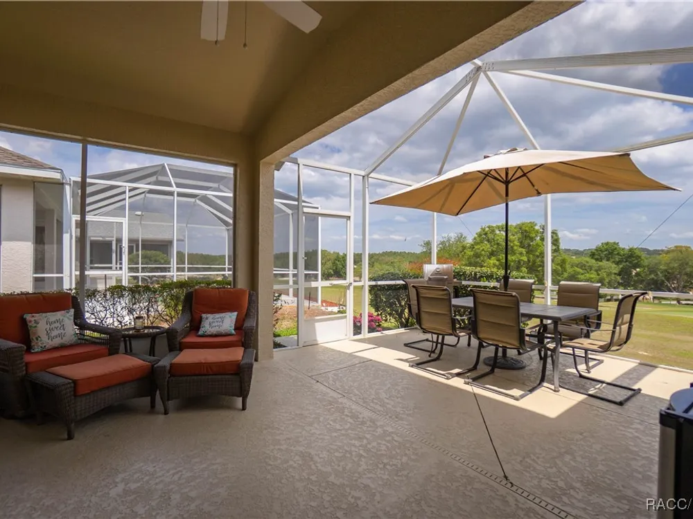 Welcome to this beautifully updated 3-bedroom, 2-bathroom home with a 2-car garage, nestled in the highly desirable Brentwood community of Citrus Hills. Backing directly onto the golf course, this home offers stunning, unobstructed views from the spacious screened lanai—perfect for morning coffee or evening relaxation. Step inside to find modern upgrades throughout, including updated flooring and energy-efficient windows. The heart of the home is the open-concept living area, featuring an updated kitchen with granite countertops, plenty of cabinet space, and a seamless flow into the dining and living rooms—all designed to showcase the picturesque golf course backdrop. The primary suite offers a peaceful retreat with dual walk-in closets, double vanities, and a large walk-in shower. Two additional bedrooms are connected by a convenient Jack and Jill bathroom, making them ideal for family or guests. Enjoy a low-maintenance lifestyle with HOA fees that cover roof replacement, exterior painting, and lawn care. As a resident of both the Brentwood and Citrus Hills Golf & Country Club communities, you'll have access to an impressive array of amenities: swimming pools, tennis courts, multiple fitness centers, golf courses, on-site dining, and even a dog park. This is Florida living at its best—modern upgrades, beautiful views, and access to everything you need for comfort, convenience, and recreation.
