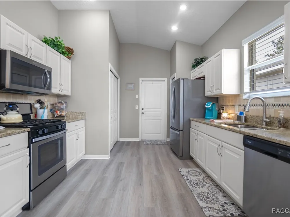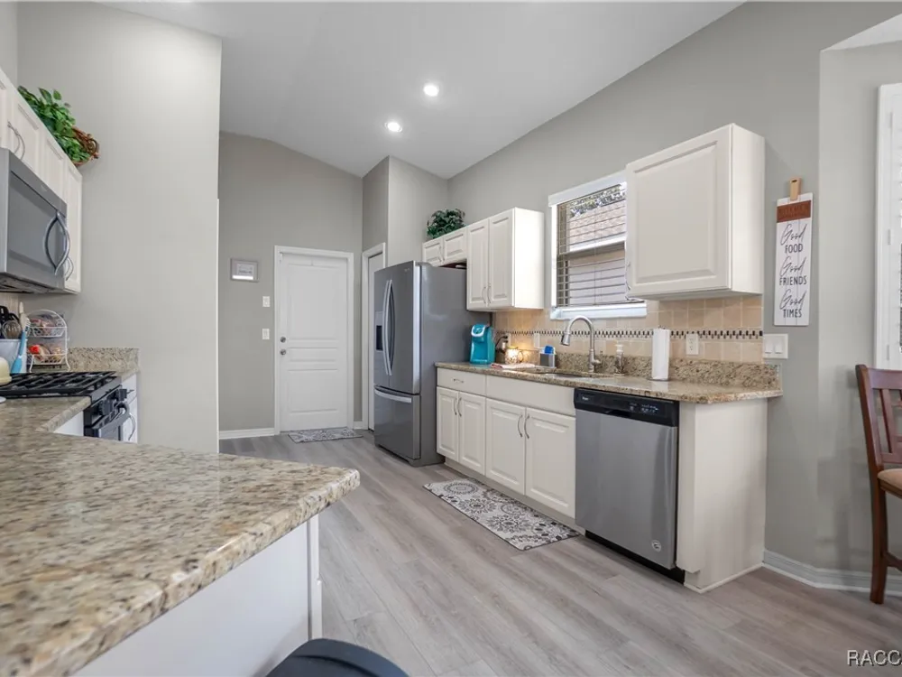 - Cathedral Ceiling(s), Dual Sinks, Eat-in Kitchen, Primary Suite, Stone Counters, Separate Shower, Solid Surface Counters, Walk-In Closet(s), Window Treatments, Sliding Glass Door(s)