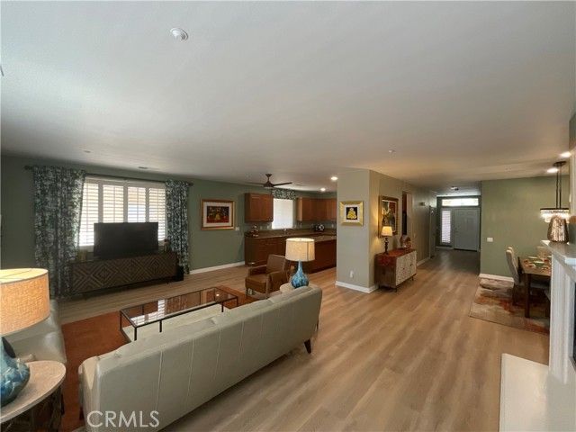 Welcome to Four Seasons, an exclusive 55+ gated enclave in Palm Springs. This elegant 3-bedroom, 2-bathroom floor plan offers 2,102 square feet of interior space designed for comfort, ease, and enjoyment. High ceilings, custom white Plantation shutters and an open floor plan create a light and airy ambiance. Granite counter tops, stainless steel appliances, a center island and loads of storage accent the open kitchen. The large great room offers a built-in gas fireplace and double doors leading to the private rear yard with mountain views and no homes behind. New updates include: stainless steel kitchen appliance package; Life proof luxury vinyl plank flooring throughout the house; energy efficient ceiling fans; upper cabinets in the laundry room; low flow toilets, vanity lights and high efficient fans in both bathrooms; closet systems in the primary and front bedrooms; LED lights throughout the interior; coach lights on the exterior; crystal glass chandelier in the dining room; vertical blinds on both back French doors and kitchen window; custom drapes in the primary, living room and kitchen; ½ HP garage door opener; 4 coat epoxy coating and pergola (with LED lights and ceiling fan) on the back patio; repainted entire interior and exterior; roof cement tiles inspected and all cracked or chipped tiles replaced. Yearly HVAC maintenance contract with Desert Air transfers to new owner. Four Seasons offers access to a variety of amenities that include 2 community pools, spas, aerobics room, game room, gym, basketball court, pickle ball courts, tennis courts, outdoor BBQs, game room library and an active clubhouse all within a secure gated environment. Low HOA dues include Frontier's fiber optic internet service. Just minutes from downtown Palm Springs, the Aqua Callente Casino and the Palm Springs International Airport, don't miss this opportunity in one of Palm Springs' most coveted locations.
