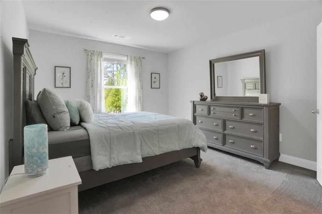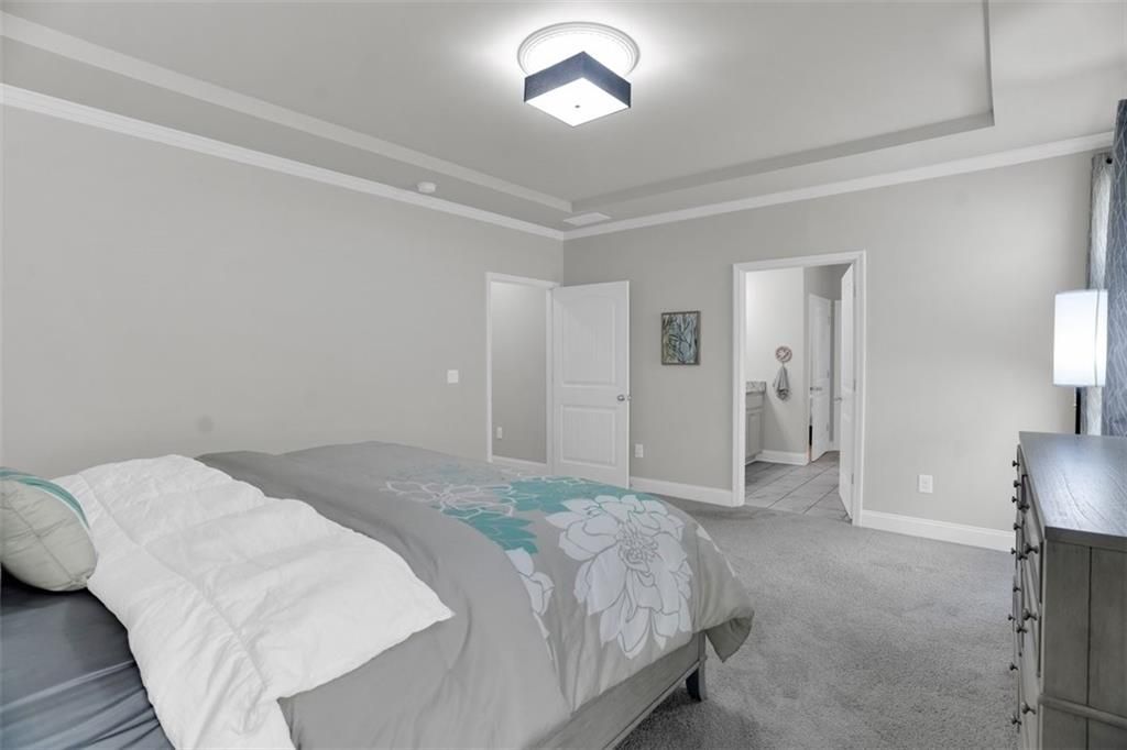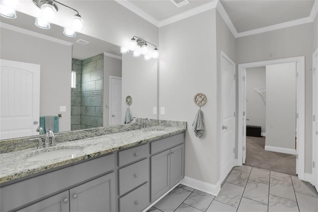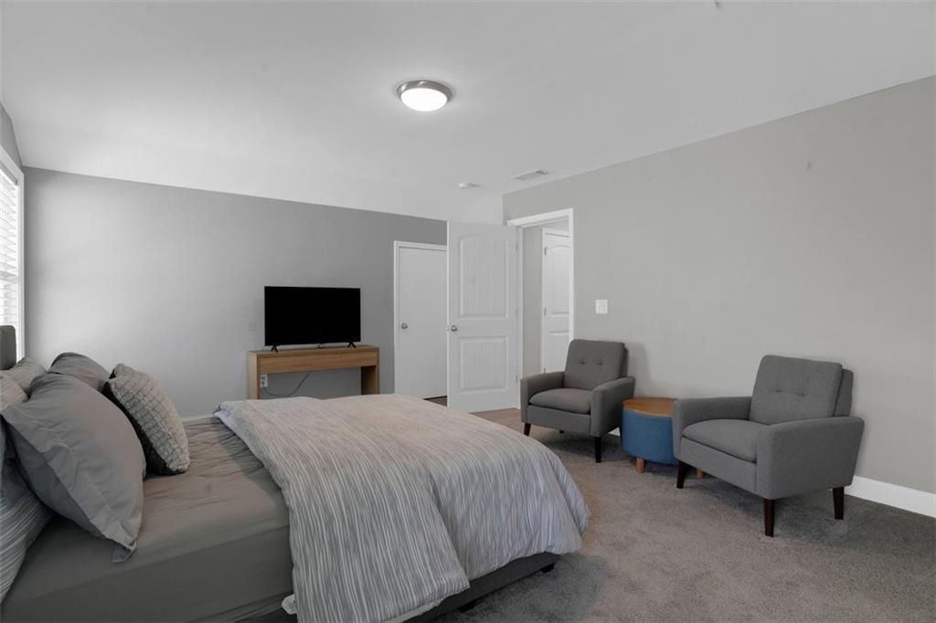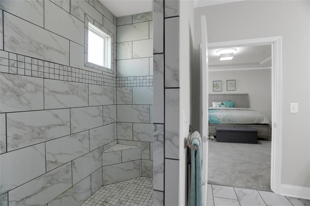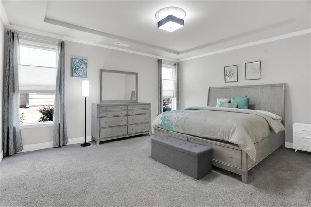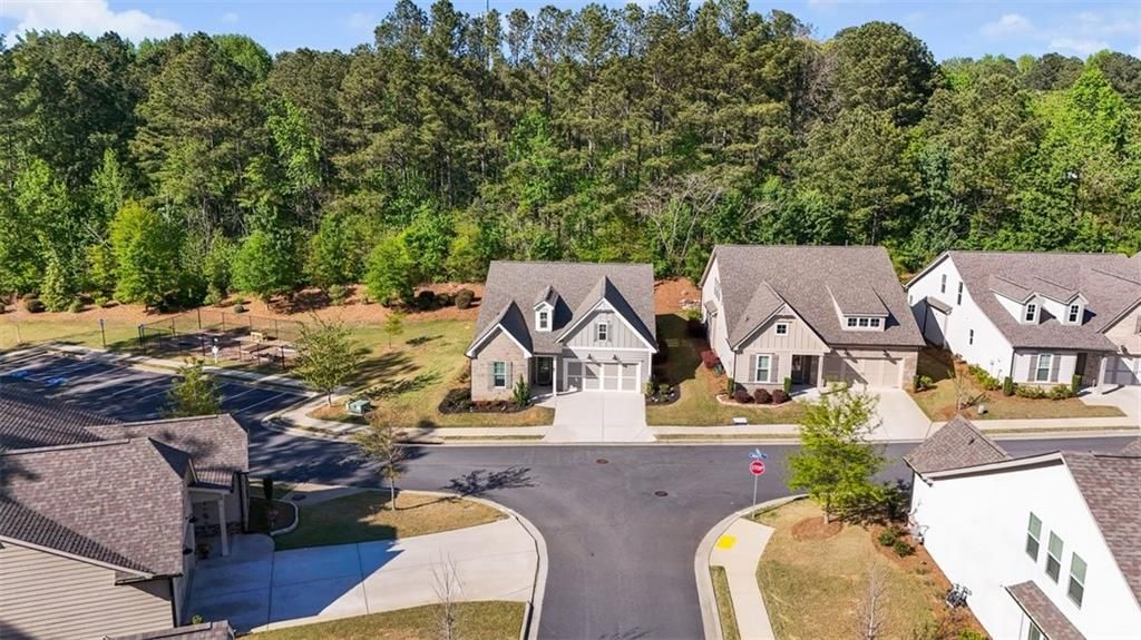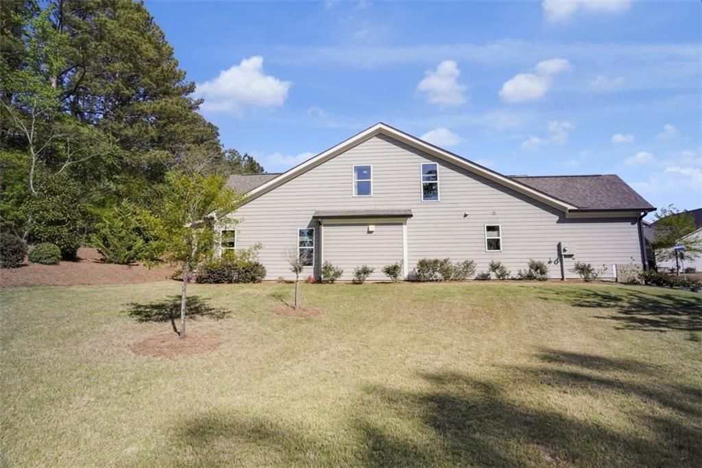 Welcome to 2298 Tumnus Trail, an upgraded private corner homesite within one of Marietta’s most popular 55+ active adult communities. From the moment of arrival, the distinguished stone façade and meticulously maintained landscape establish an atmosphere of timeless sophistication and effortless refinement. The home provides three sided privacy ensuring tranquility and peace. Upon entry, a grand double-width open foyer adorned with crown molding and exquisite chair rail detailing sets a striking first impression, unfolding into a beautifully appointed guest suite accompanied by a fully upgraded main-level bath. Designed with both comfort and accessibility in mind, this space features a floor-to-ceiling tiled, step less shower with an integrated bench—offering a private and welcoming retreat for guests. The residence is enhanced throughout by upgraded carpeting with premium padding, custom window treatments, and thoughtfully placed recessed lighting illuminating the kitchen, great room, dining area, and hallways. Above, a dramatic two-story foyer features a split staircase crowned by an elegant catwalk adds architectural intrigue and a sense of openness. Vaulted ceilings connect to oversized great room with vaulted ceilings and a beautiful view of the landscape backyard. At the heart of the home, a stunning open-concept design reveals itself—where natural light pours in, accentuating refined finishes and intentional details. The chef’s kitchen is both a visual centerpiece and a functional masterpiece, anchored by an expansive island, upgraded vertical tile backsplash, gleaming quartz countertops, under-cabinet lighting, double stainless steel wall ovens, and a sleek four-burner cooktop. Seamlessly connected to an oversized family room, this inviting space is ideal for both intimate gatherings and lively entertaining. Conveniently located on the main level, the laundry room is thoughtfully equipped with an added utility sink along with a convenient mudroom, further enhancing everyday functionality. The Owner’s Suite offers a serene retreat, highlighted by an elegant tray ceiling, plush carpeting, and a spa-inspired en-suite bath complete with dual vanities, walk-in shower and a spacious double-sided closet—perfectly balancing luxury and practicality. Upstairs, two generously sized guest bedrooms and a full bath provide comfortable accommodations for family and visitors alike. Additional storage solutions abound, including ample space above the garage and an extended storage area near the staircase. As an added convenience, the home includes a washer, dryer, and a mounted 70-inch LG Smart TV, allowing for a truly seamless move-in experience. Beyond the residence, the community offers a lifestyle rich in amenities designed for relaxation and connection. Residents enjoy access to a welcoming clubhouse, a dedicated dog park, gated security, scenic walking sidewalks, and a charming raised-bed community garden for those with a passion for cultivating their own greens. Ideally situated near a variety of shopping, dining, and everyday conveniences, this exceptional property offers the perfect harmony of tranquility and accessibility. Impeccably maintained and truly move-in ready, 2298 Tumnus Trail presents a rare opportunity to embrace elevated living in the heart of Marietta. Schedule your private tour today and discover the lifestyle that awaits.