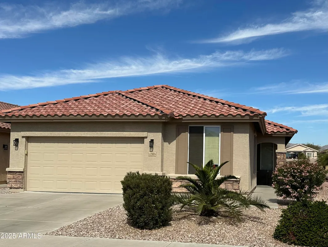 Gorgeous Ocotillo located on one of the BEST PREMIUM VIEW LOTS in Sundance Active Adult (55+). Backing up to the 2nd green with the White Tank Mountains in the background... this is the place you want to be! Invite your friends to the spacious open concept plan with GRANITE countertops, upgraded Hickory cabinets, KITCHEN ISLAND fresh interior paint, CROWN MOLDING, Soft Water Unit WITH Reverse Osmosis as well as a Golf Cart Storage area! The wrought iron fenced backyard is perfect for your entertainment and your pets as well as privacy! Take a look... this one is a jewel!