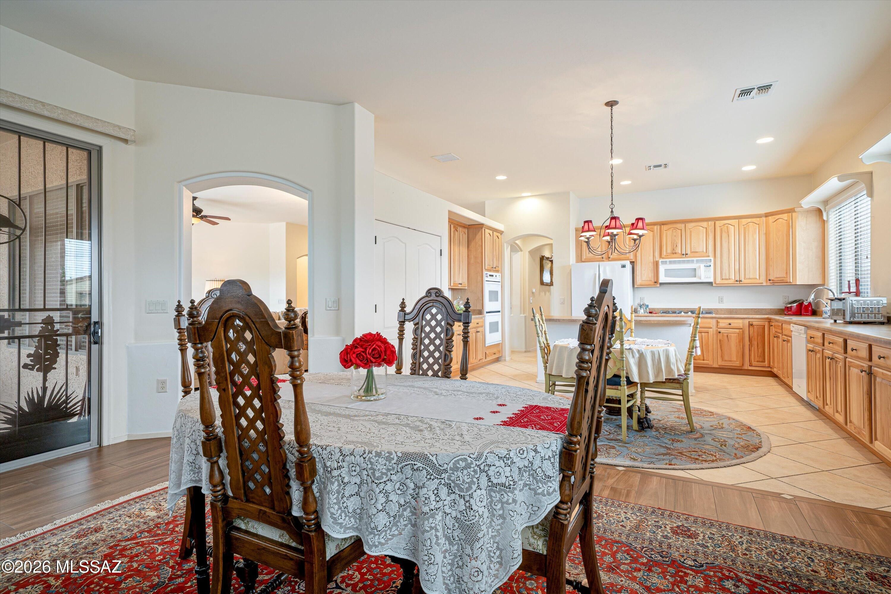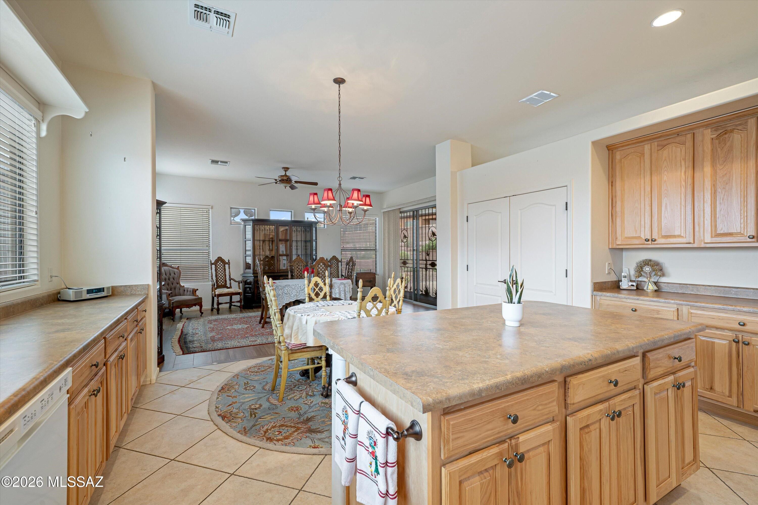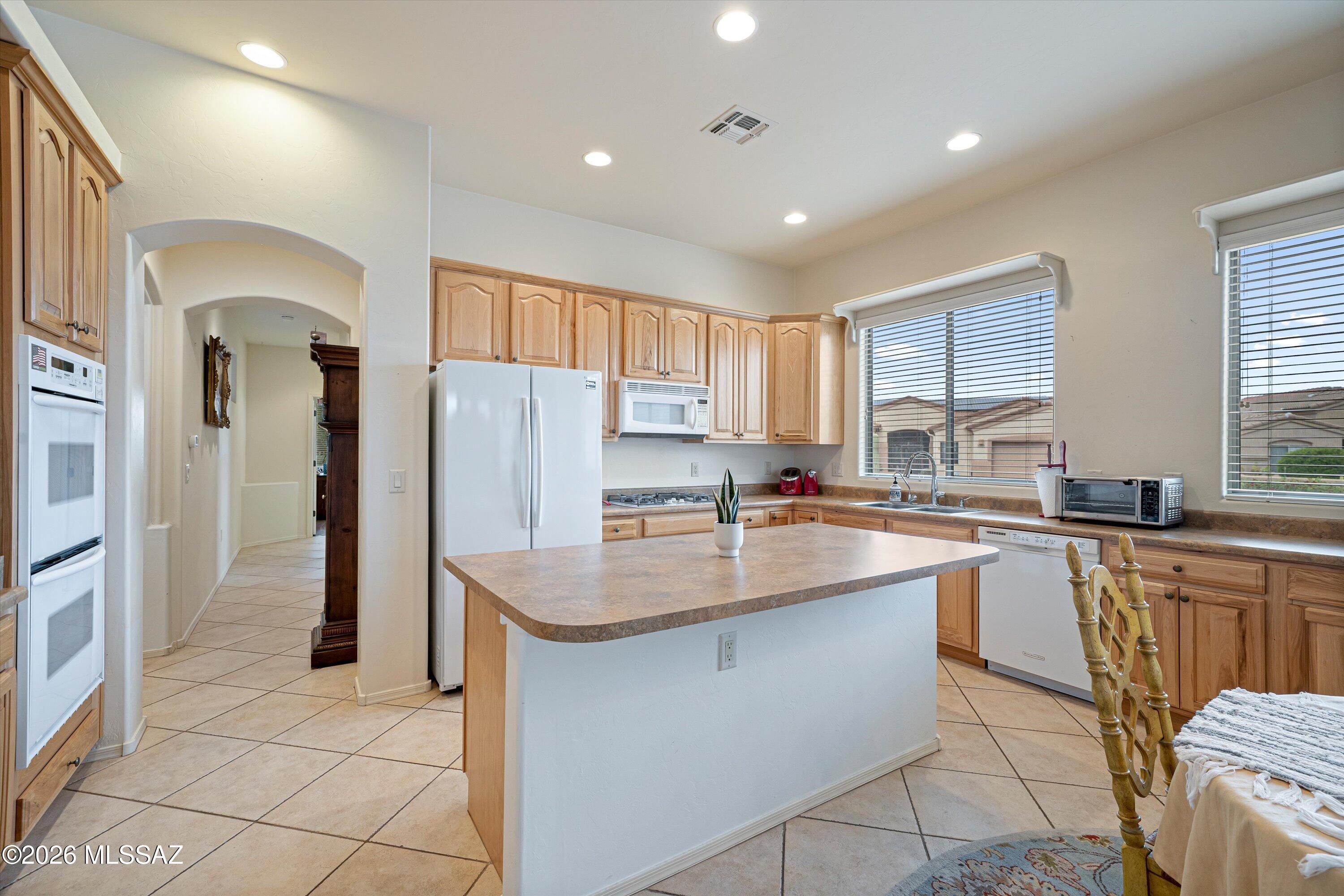 Located in the highly desirable gated 55+ community of Canoa Northwest in Green Valley, Arizona, this well-maintained home offers a peaceful setting surrounded by beautiful mountain views and pristine desert landscape. Situated on an Extra large lot, the property provides exceptional privacy while still being conveniently close to many of the area's most sought-after amenities.A welcoming secure front porch sets the tone for comfort and relaxation. Inside, you will find a thoughtfully designed floor plan featuring an open den with custom built-in bookcases, creating the perfect space for a home office, reading nook, or hobby room. The spacious kitchen offers abundant cabinetry and workspace, ideal for everyday living as well as entertaining guests.