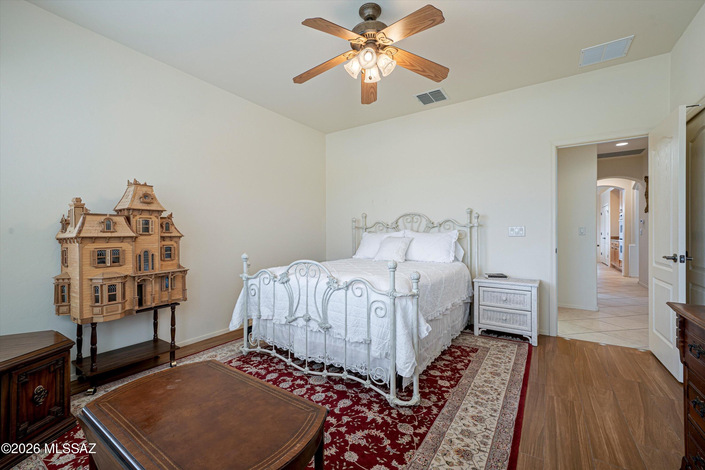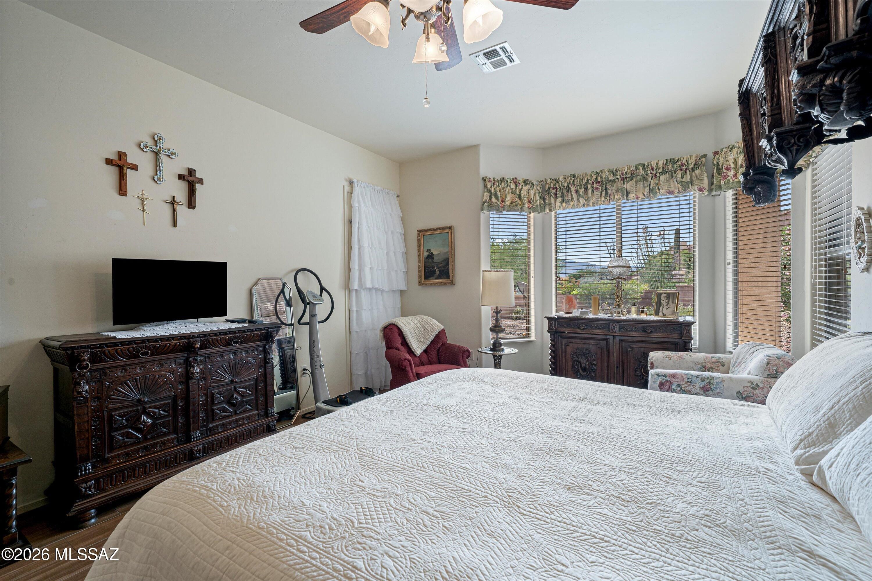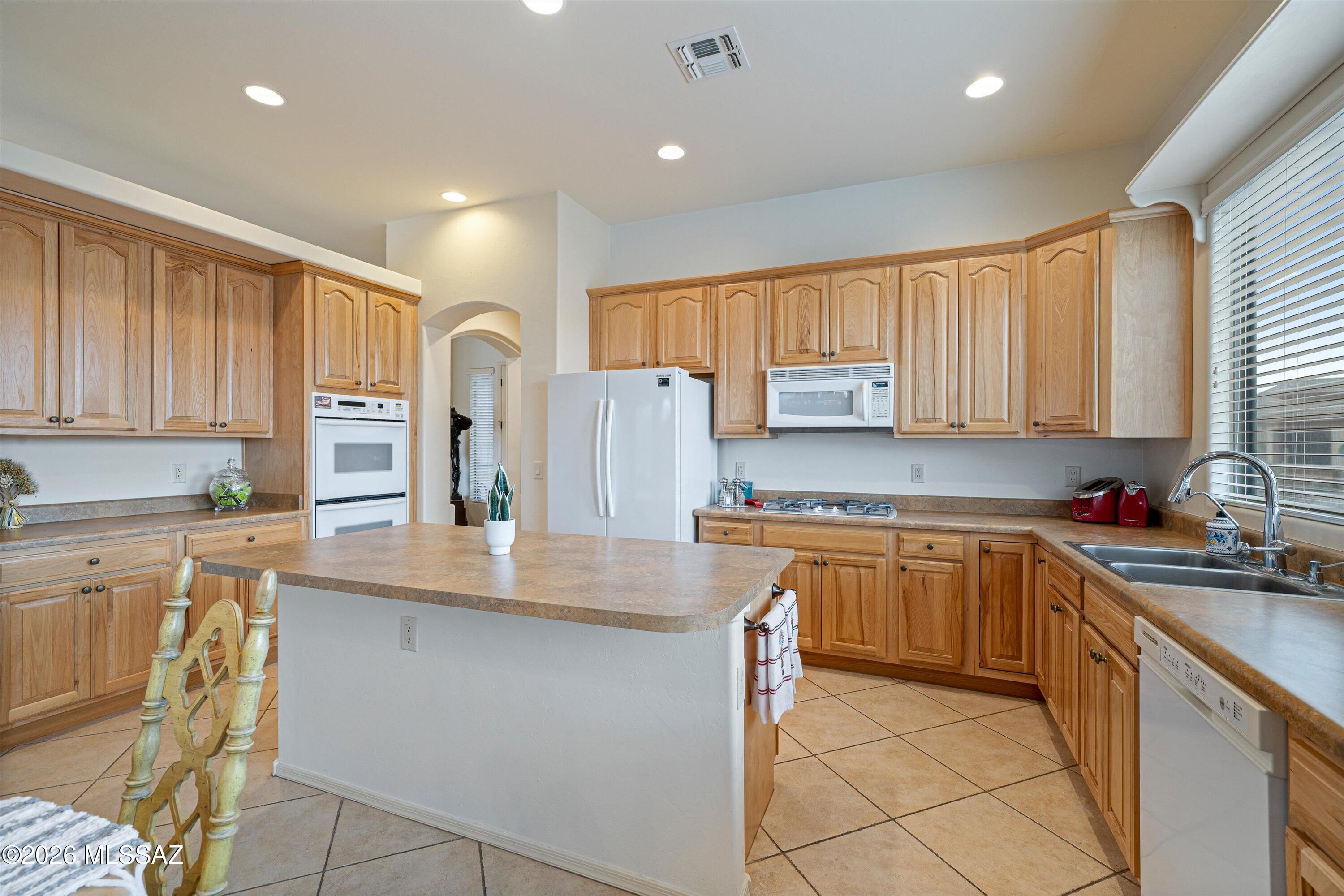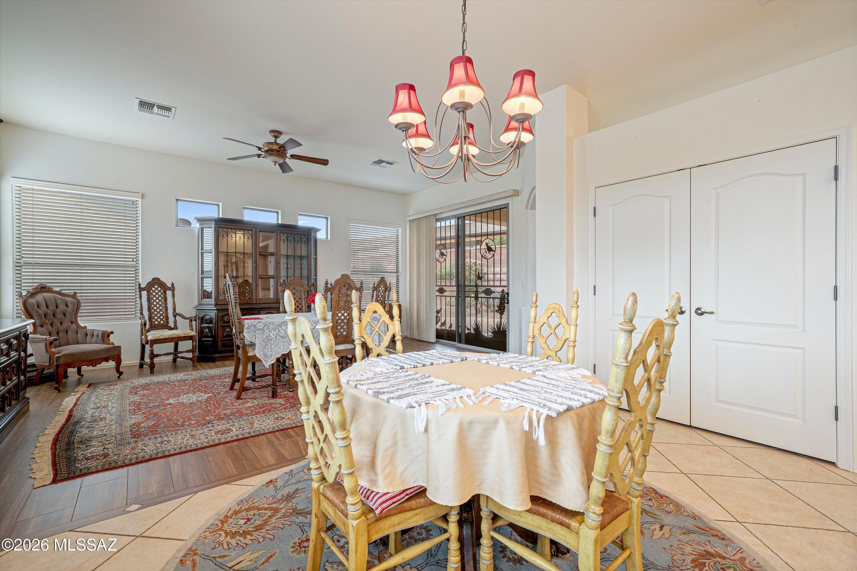 Located in the highly desirable gated 55+ community of Canoa Northwest in Green Valley, Arizona, this well-maintained home offers a peaceful setting surrounded by beautiful mountain views and pristine desert landscape. Situated on an Extra large lot, the property provides exceptional privacy while still being conveniently close to many of the area's most sought-after amenities.A welcoming secure front porch sets the tone for comfort and relaxation. Inside, you will find a thoughtfully designed floor plan featuring an open den with custom built-in bookcases, creating the perfect space for a home office, reading nook, or hobby room. The spacious kitchen offers abundant cabinetry and workspace, ideal for everyday living as well as entertaining guests.