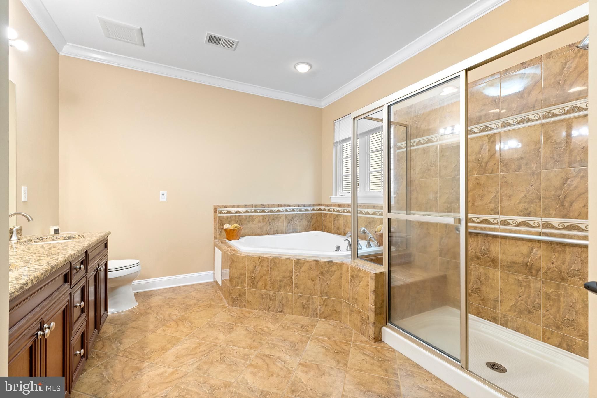 - Bathroom - Jetted Tub, Bathroom - Stall Shower, Bathroom - Tub Shower, Breakfast Area, Ceiling Fan(s), Crown Moldings, Dining Area, Entry Level Bedroom, Family Room Off Kitchen, Floor Plan - Open, Formal/Separate Dining Room, Kitchen - Eat-In, Kitchen - Gourmet, Kitchen - Island, Pantry, Primary Bath(s), Recessed Lighting, Upgraded Countertops, Walk-in Closet(s), Window Treatments