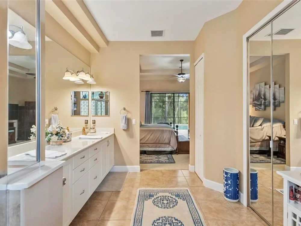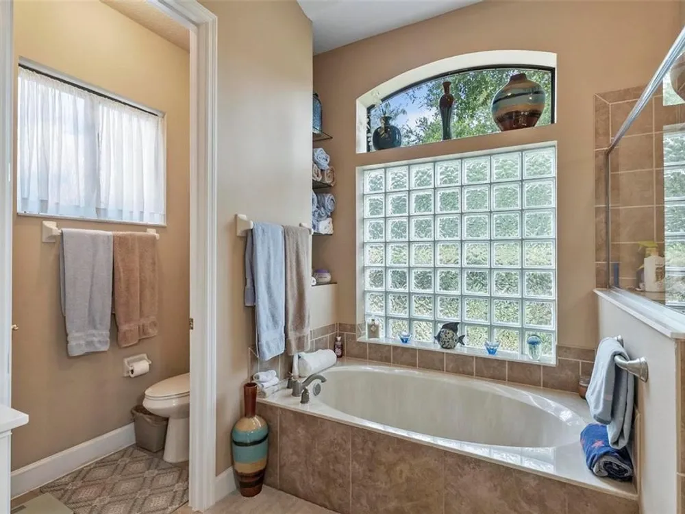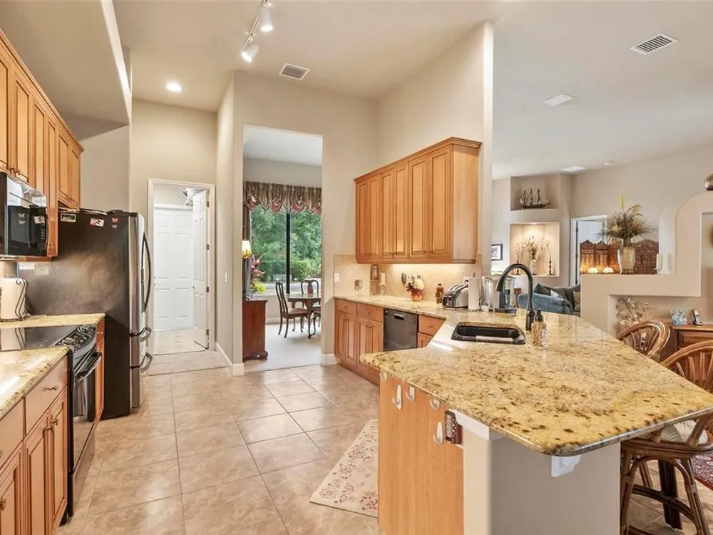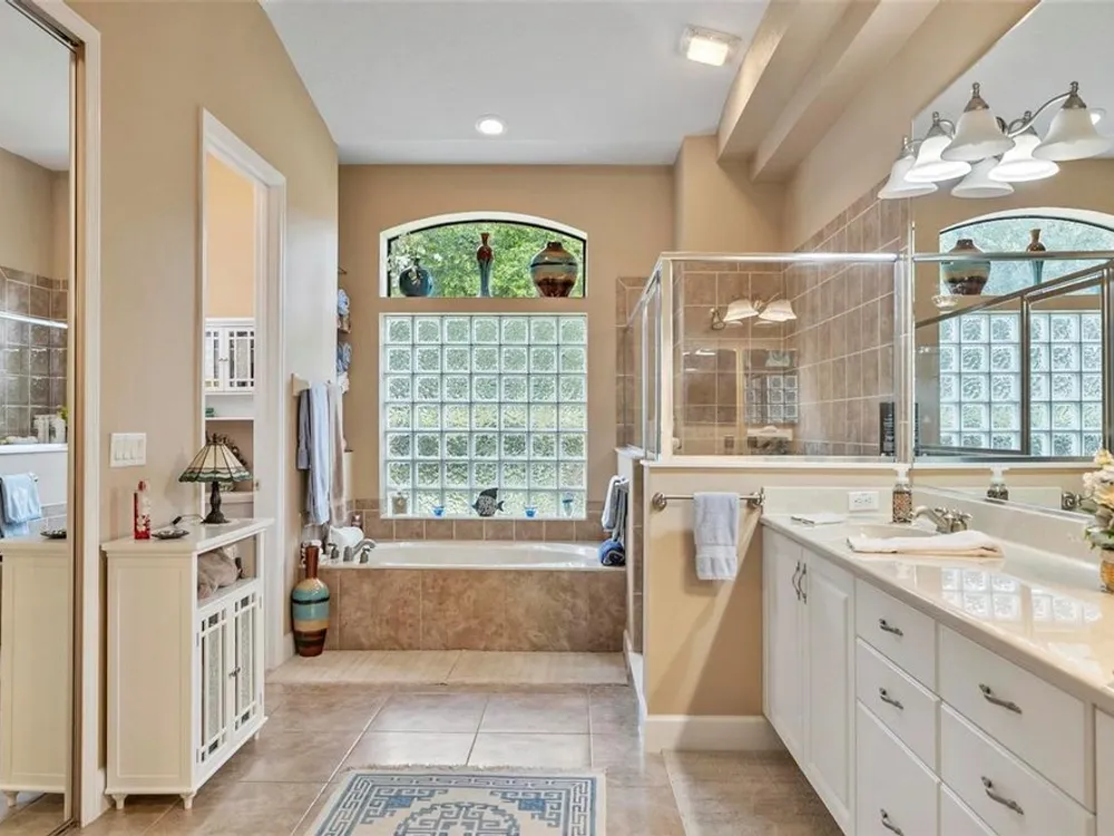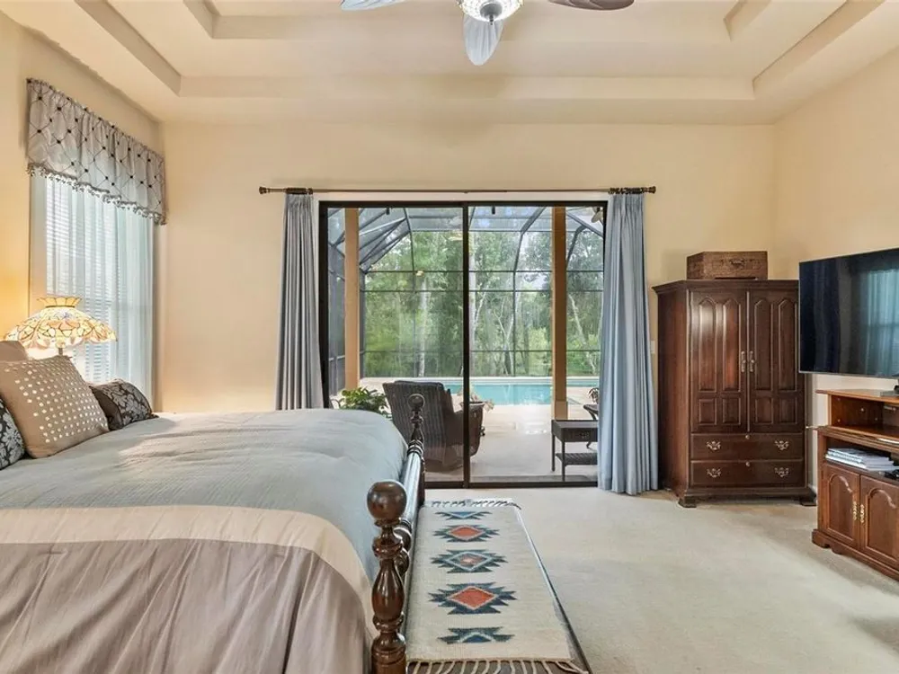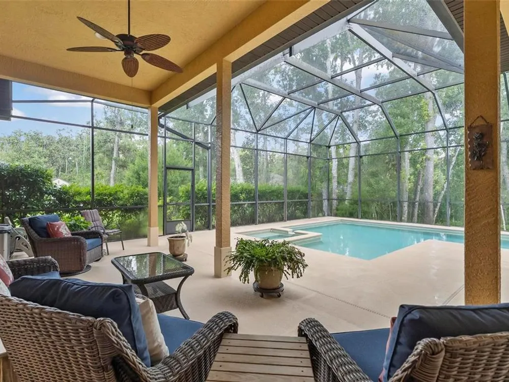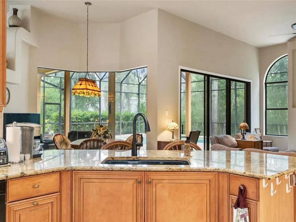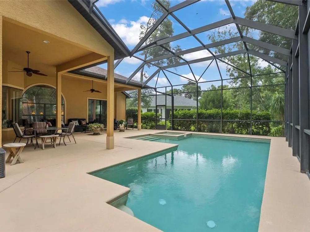 You'll be amazed by the beautifully landscaped front garden, impressed by the thoughtfully designed interior layout and features, and absolutely captivated by the serene backyard lake view! ICI Grand Stratford model in fabulous Creekside Village at Grand Haven offers 4 Bedroom, 3 Bathroom, 3 car garage, and 2633 Sqft living space complete with an oversized L-shaped POOL. This gem showcases 12’ceiling in the main living areas and 10’ in the bedrooms. Recent upgrades include a NEW ROOF and interior A/C unit in 2024. Meticulously tended, the property features a split floor plan and includes a formal dining room, family room, and breakfast nook for added privacy. The spacious living room features abundant windows and extra-wide sliding glass doors that flood the space with natural light. The primary suite includes a garden tub, oversized walk-in shower, dual vanities, and a large walk-in closet. Both guest bathrooms are equipped with a walk-in tub and shower combination. The elegant kitchen offers sitting area, 42” cabinets, porcelain tile backsplash, and granite countertop. Throughout the home, you’ll find luxury Tiffany-style light fixtures. Enjoy cozy winter evenings by the beautiful gas fireplace. Additionally, the home is equipped with a water softening system, which is beneficial for your health. Generously sized laundry room offers plenty of shelving and a utility sink. The oversized 3-car garage provides ample space not only for vehicles but also for extra storage, a workshop area, or hobby space—perfect for those who need flexibility and functionality. The pool patio overlooks the oversized, lush green backyard and the tranquil lake view. To enjoy the Florida lifestyle to the fullest, take advantage of the exceptional recreational activities this community offers: clubhouse, 2 public pools, 2 restaurants, fitness center, tennis courts, and countless walking trails with street lighting. If you've ever dreamed of living in paradise—this is your place!