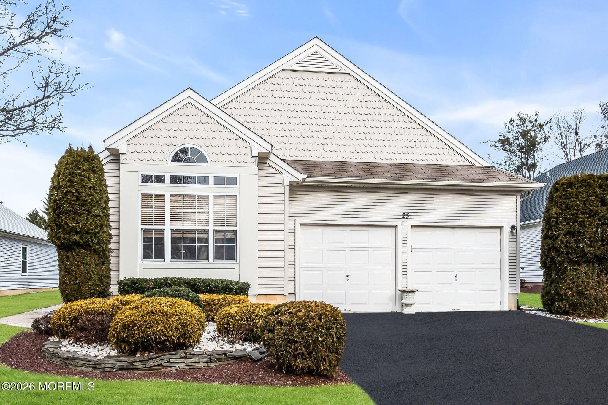 Coming Soon! Showings begin 1/28/26. Welcome to this beautifully maintained 2-bedroom, 2-bath ranch located in the highly desirable Renaissance, a premier gated 55+ active adult community in Manalapan. Ideally situated on a quiet lot near the clubhouse. This light-filled home offers the perfect blend of comfort, elegance and convenience. A bright, open foyer sets the tone for the spacious interior. The home features a formal living and dining room, ideal for entertaining, along with a generously sized family room with a cozy gas fireplace. The eat-in kitchen offers ample cabinetry, a pantry and overlooks the main living space, perfect for everyday living and gatherings. The primary suite is a true retreat, featuring a sitting area, large walk-in closet and a private bath with double sinks and stall shower. A well-appointed second bedroom is conveniently located near the full guest bath, offering privacy and comfort for visitors. Additional highlights include a laundry room, direct-entry two-car garage, abundant natural light, a private patio/yard for outdoor enjoyment and an underground sprinkler system. Residents of Renaissance enjoy resort-style amenities, including a beautifully appointed clubhouse, heated outdoor pool, fitness center, tennis and bocce courts, billiards and card rooms, and a full calendar of social activities. Conveniently located close to Route 9, shopping, dining, and everyday conveniences, this home offers the best of active adult living in one of Manalapan's most sought-after communities. A rare opportunity! Move right in and enjoy the lifestyle!