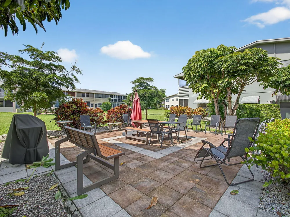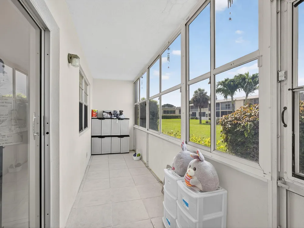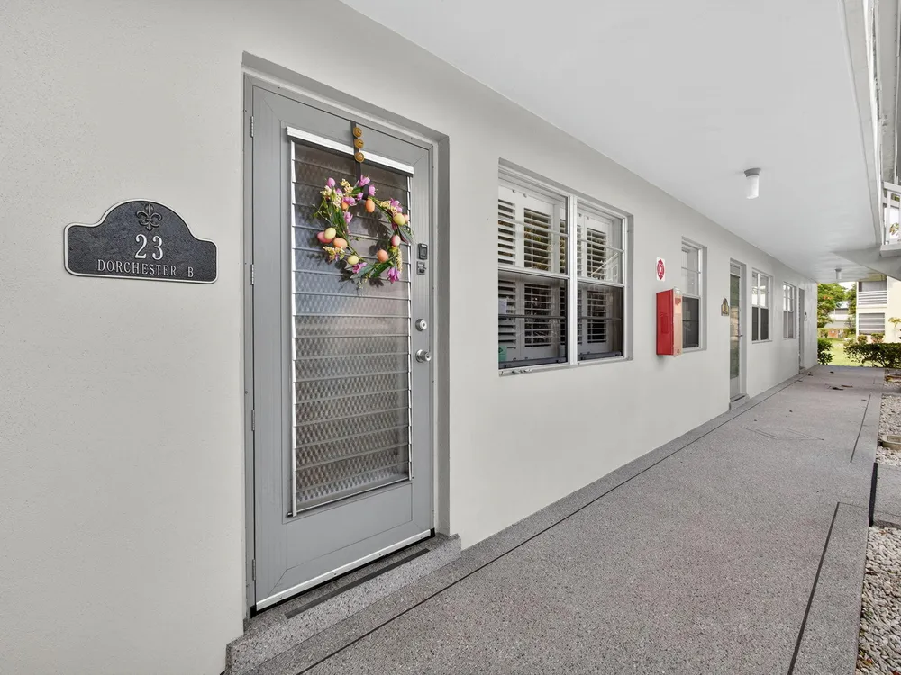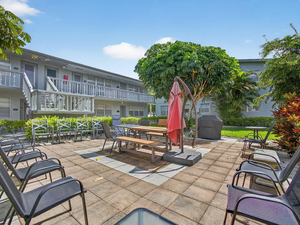 SAY HELLO TO THIS LIGHT AND BRIGHT SUN FILLED GROUND FLOOR 2 BED 1.5 BATH UNIT,LOCATED IN CENTURY VILLAGE A COMMUNITY FOR ACTIVE ADULTS 55+. LARGE CERAMIC TILE THROUGHOUT, WHITE KITCHEN, NEW TOILETS AND VANITIES, PLANTATION SHUTTERS. AIR CONDITIONING IS 5 YEARS OLD. WELL FUNDED BUILDING WITH NEW ROOF FRESHLY PAINTED AND NEW SIDEWALKS. LOVELY OPEN PATIO TO SIT OU T AND RELAX ON. CLOSE TO THE DORCHESTER POOL .Roomy closets (one walk-in), screened-in patio, laundry room, assigned parking spot plus visitor parking available; local bus for errands/shopping both within & outside THE VILLAGE COME AND ENJOY RESORT STYLE LIVING IN THIS GATED COMMUNITY FOR ADULTS 55+. Clubhouse with theater, shows, movies, craft and card rooms, billiards, aerobics, yoga, and dance classes. GREAT LOCATION: