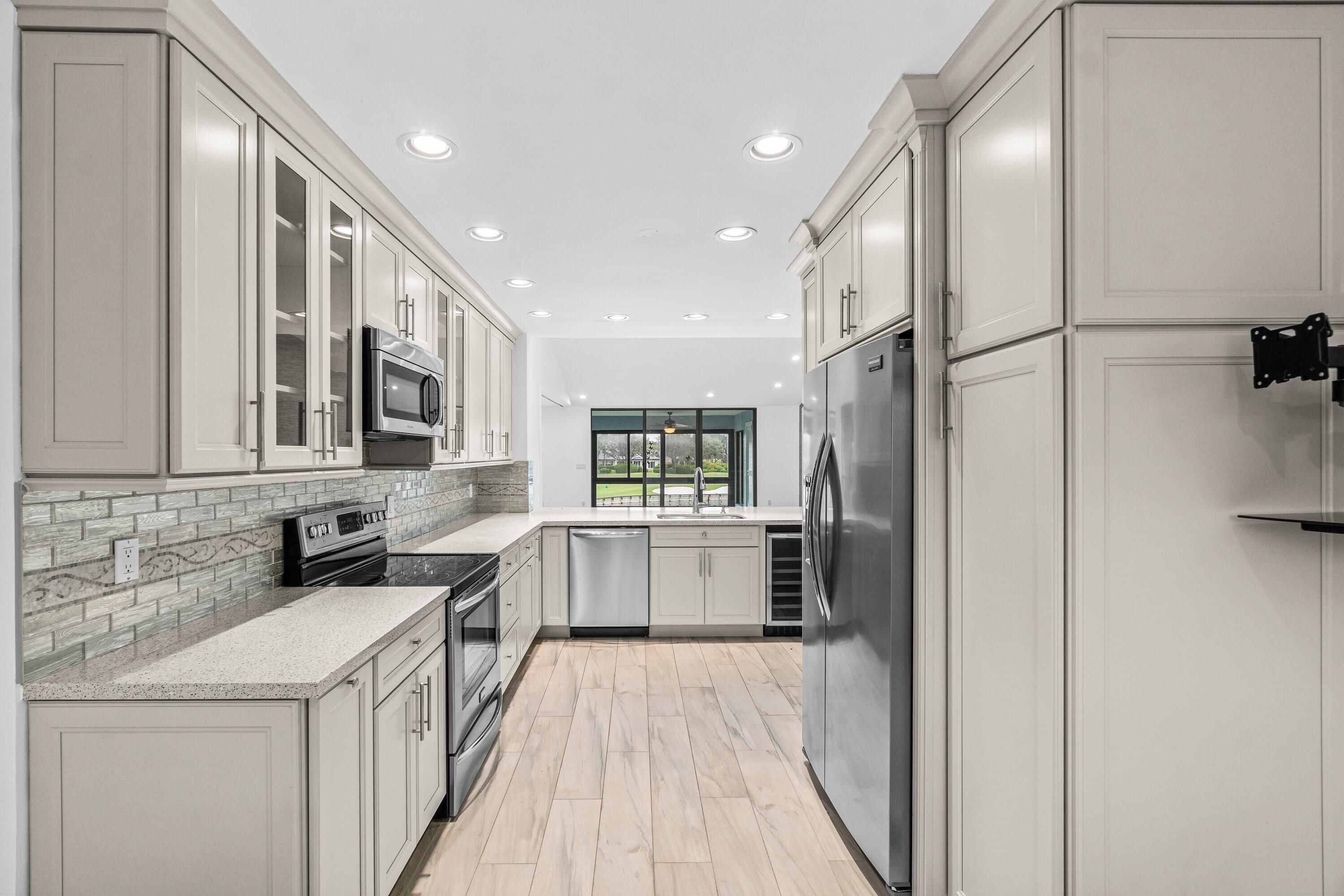 Breathtaking views from your expansive balcony overlooking the golf course and lake on the newly renovated east course. A 3/2 convertible in highly desired Eastgate section of Hunters Run, featuring a vaulted ceiling, with new skylights, recessed LED lighting throughout. The condo has an open concept kitchen with stainless steel appliances, Quartz countertops and custom cabinets. This property has a 4-ton newer A/C ,2023, semiprivate lift and a roof which was installed in 2023. Don't miss out on all the fun this winter, with 3 18-hole championship golf courses and a great Raquetball and tennis complex, life cannot get better!