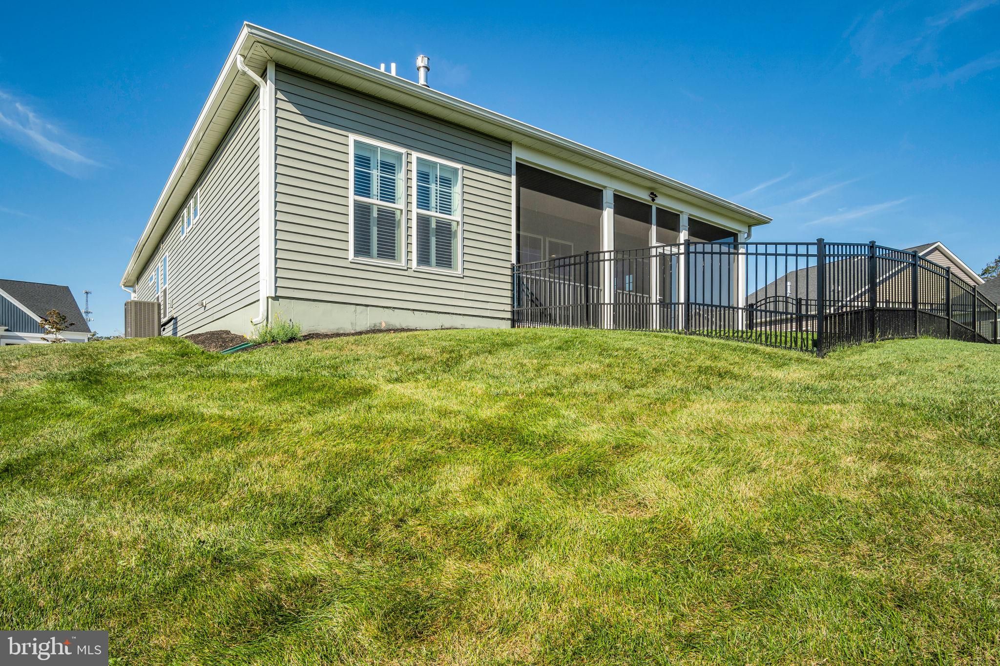 Welcome to 23 Highland View Lane in Amblebrook. This DRB Enthusiast model is uniquely situated in the center of two lots and was built with attention to detail. Throughout construction, the owner worked closely with the project manager and also brought in a private inspector, who noted this was one of the best-built homes he had seen in the community. Every stud was treated with a 30-year termite preventative, offering rare peace of mind not typically found in homes. Inside, the open floor plan showcases upgraded luxury vinyl plank flooring, a beautifully designed kitchen with fantasy brown granite countertops, upgraded pendant lighting, added windows in the café area, and a cozy fireplace in the great room. The primary suite is complete with an upgraded bath featuring a large soaking tub, expanded shower with upgraded doors, and tasteful finishes throughout. There is also a "flex room" that can easily adapt to your lifestyle. You could use it as a home office, craft space, guest room, or cozy reading nook. A rough-in for a utility sink was added in the laundry room, and all Whirlpool appliances include a transferable extended warranty. The HVAC system also has a transferable maintenance agreement in place. After settlement, the owners continued to enhance the home with a screened-in porch, backyard fence, and plantation shutters in the great room, bedrooms, and flex room, along with pull-down shades in the flex room. Additional upgrades include a custom coffee bar with cabinets, granite, and mini-fridge, a water softener with a maintenance agreement, washer and dryer with warranty, utility shelving, a ceiling fan with light in the great room, and a motion detector light at the rear entry. This home offers all the benefits of new construction without the wait, paired with the vibrant 55+ lifestyle of Amblebrook. Also, because of its location, an irrigation system is in place, that you won't find in a new build! Residents enjoy an expansive clubhouse with indoor and outdoor pools, state-of-the-art fitness and wellness centers, walking trails, sports courts, a community garden, a dog park, and a full calendar of clubs, activities, and events designed to bring neighbors together. Every day here feels like a retreat.