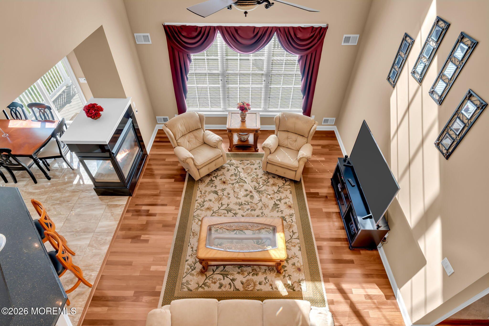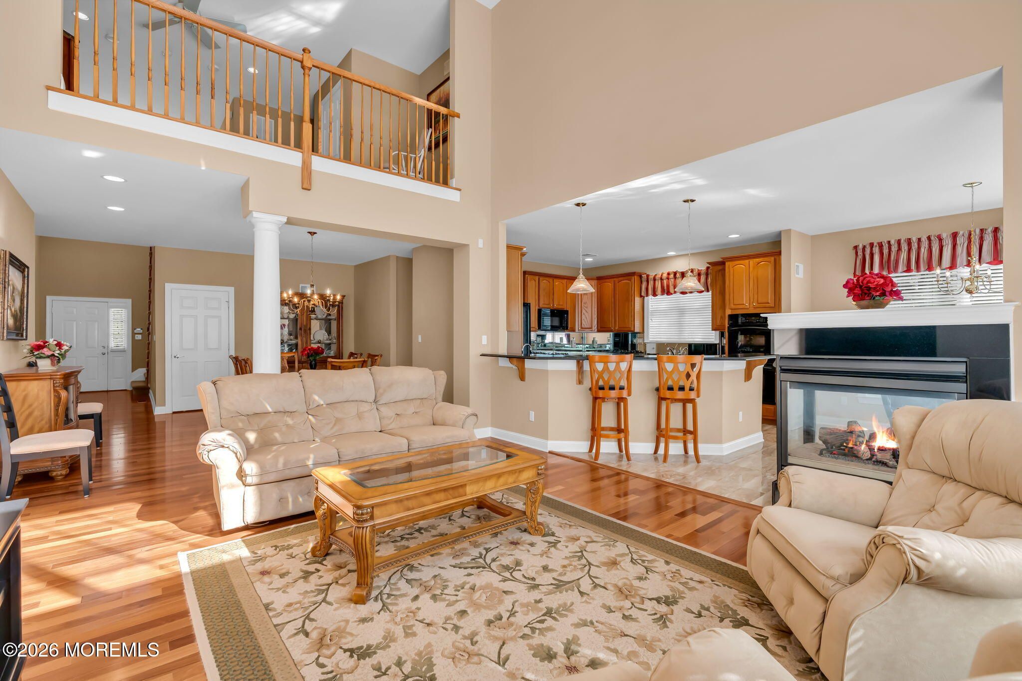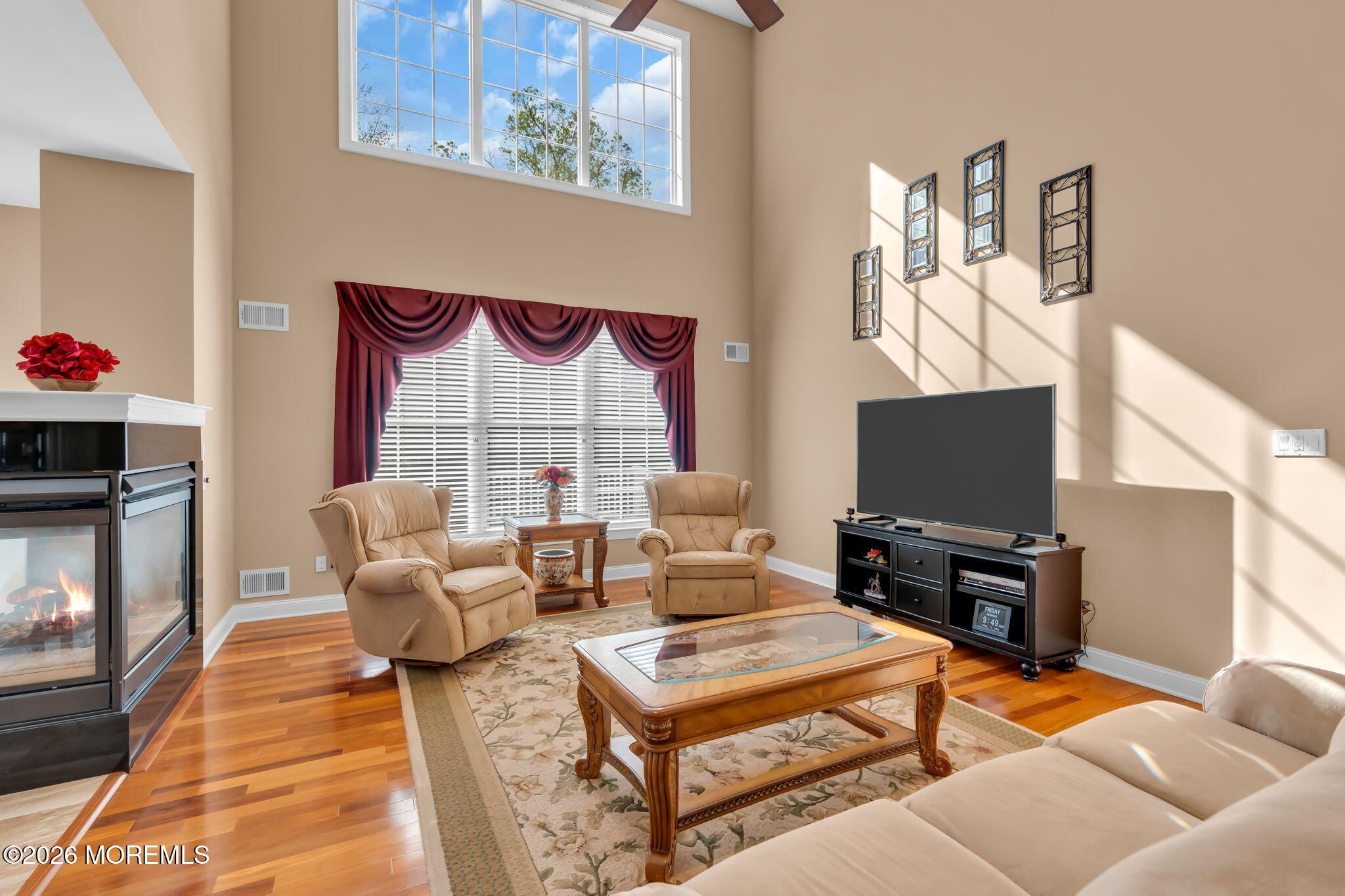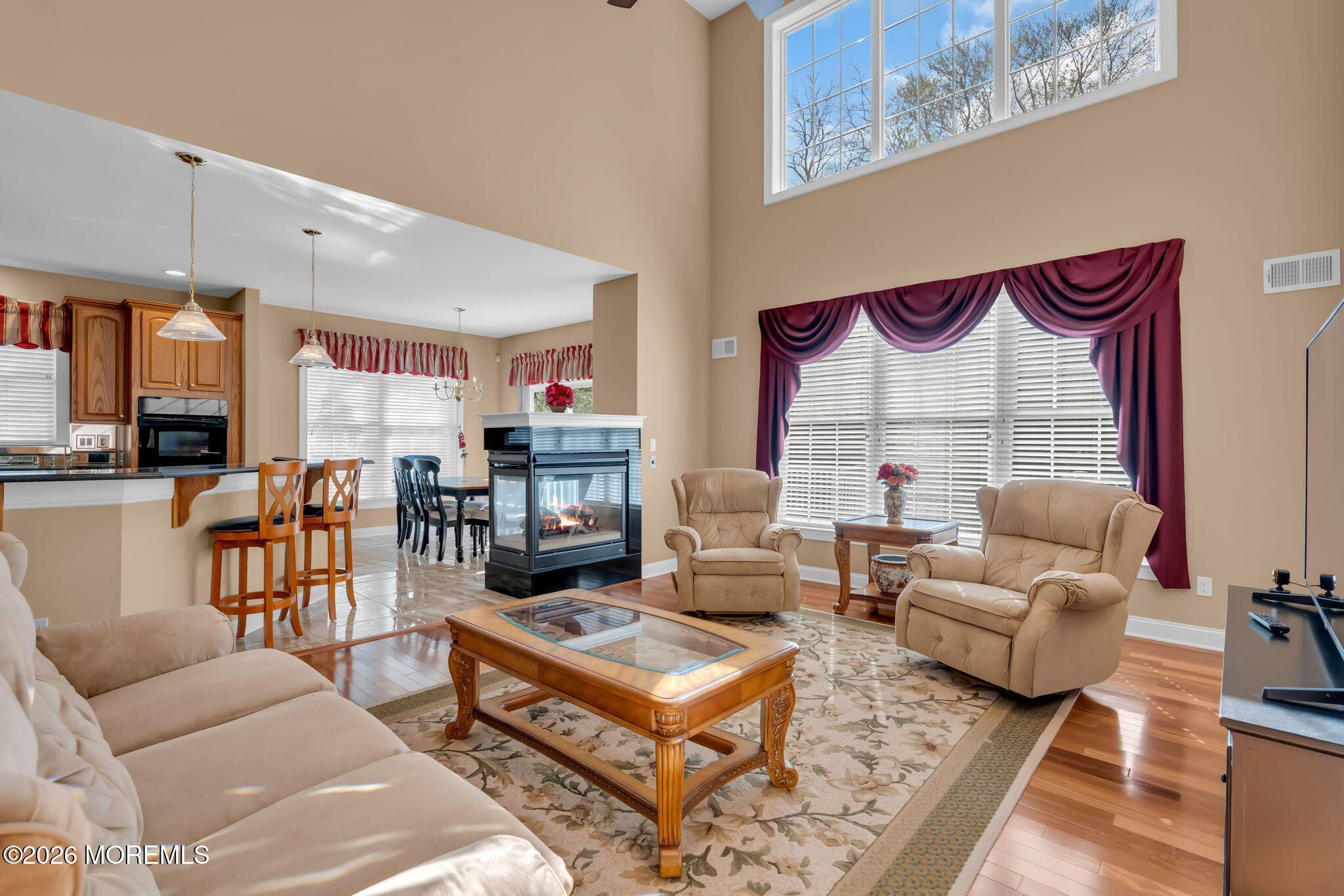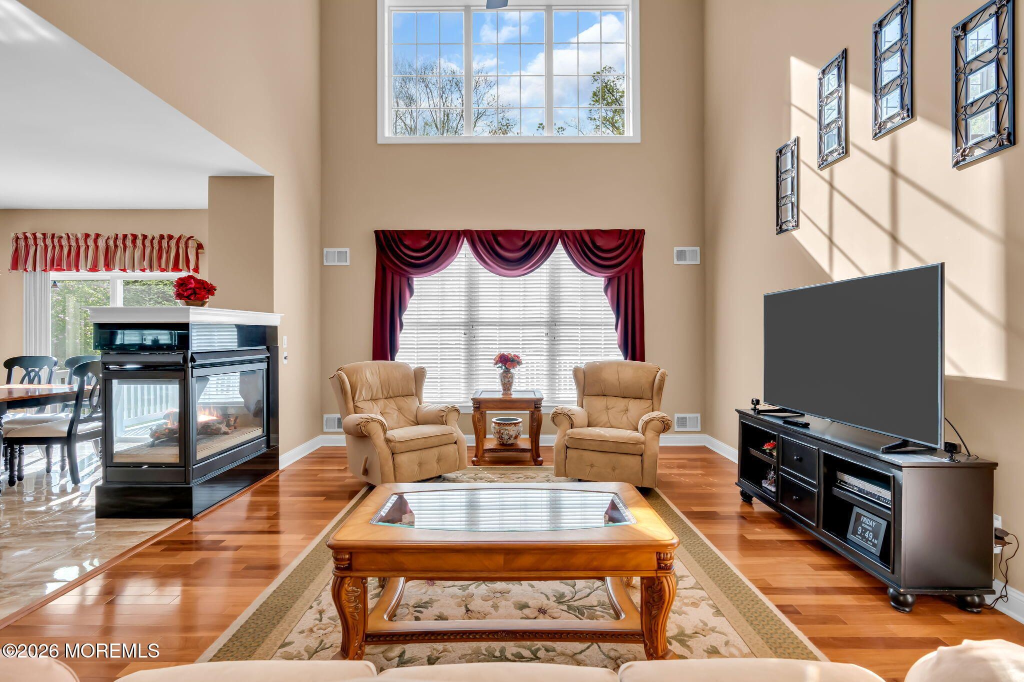 Meticulously-maintained Chelsea model in Marlboro's resort-style Rosemont Estates 55+ community! Spacious home offers 3 bedrooms, 3 full bathrooms & a 2-car garage, with a first-floor primary suite featuring an en suite bath with 2 walk in closets, Gleaming hardwood floors, leading to an eat-in kitchen with two pantries and access to a large vinyl deck. Two-story great room with a wall of windows, striking three-sided fireplace, formal dining room. Upstairs, loft with water views that overlooks the great room. The second-floor primary suite features a full bathroom and a walk-in closet. Views of the walking trail, gazebo, and water fountain. Additional highlights include a first-floor laundry/mudroom, full basement, new roof & whole house water filtration system.Premium lot etc... roof (2025). Residents of Rosemont Estates enjoy indoor and outdoor pools, tennis courts, sauna, fitness center, library, and more!