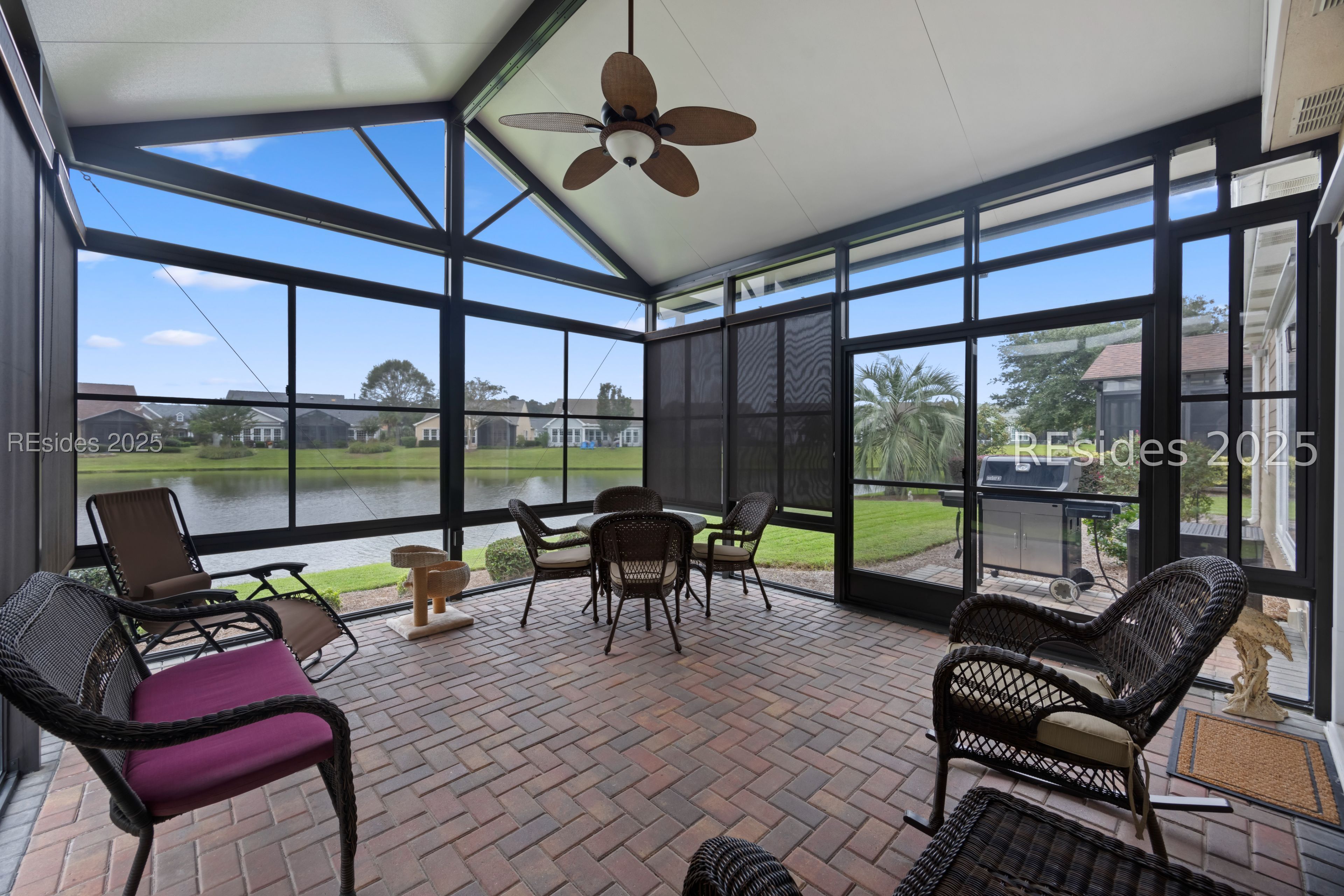 Welcome to 23 Knotweed Court, ideally located in the highly desirable Bull Hill Plantation section of Sun City Hilton Head - one of the community's most sought-after neighborhoods known for its charm, mature landscaping, and peaceful setting. This beautifully maintained Willow Bend home combines timeless Lowcountry appeal with thoughtful updates, including stucco replaced with HardiePlank siding on the sides and rear of the home in 2024 and a new roof installed in 2020. Inside, you'll find a bright, open layout with extra windows for natural light, hardwood floors, upgraded cabinetry, and under-cabinet kitchen lighting. The tiled Sun Room and screened lanai with vinyl windows overlook a tranquil lagoon - the perfect place to relax after a day of Sun City fun. Additional highlights include an extended garage, TechShield radiant barrier, and an impressive list of upgraded features detailed in the documents section. Experience Lowcountry living at its best - comfort, quality, and location all come together here in Bull Hill Plantation.