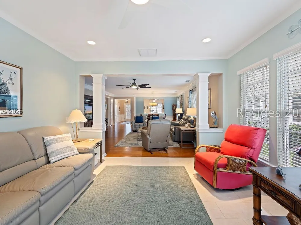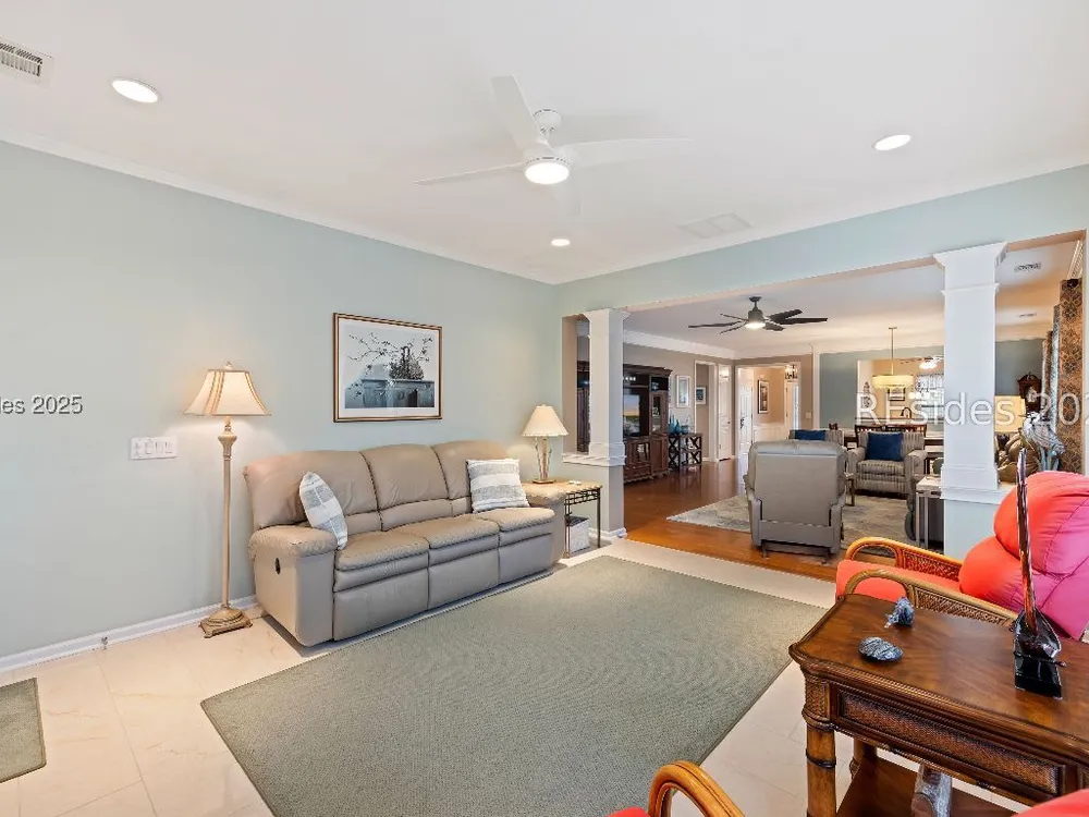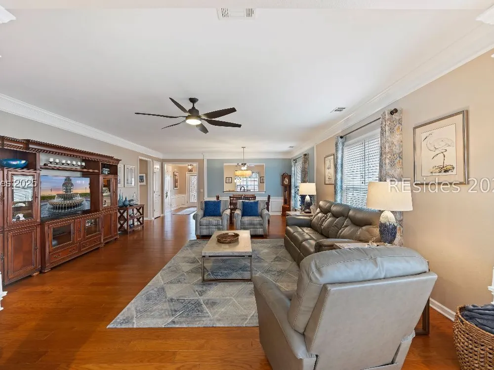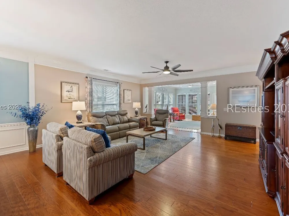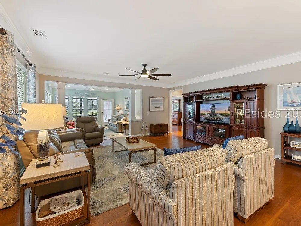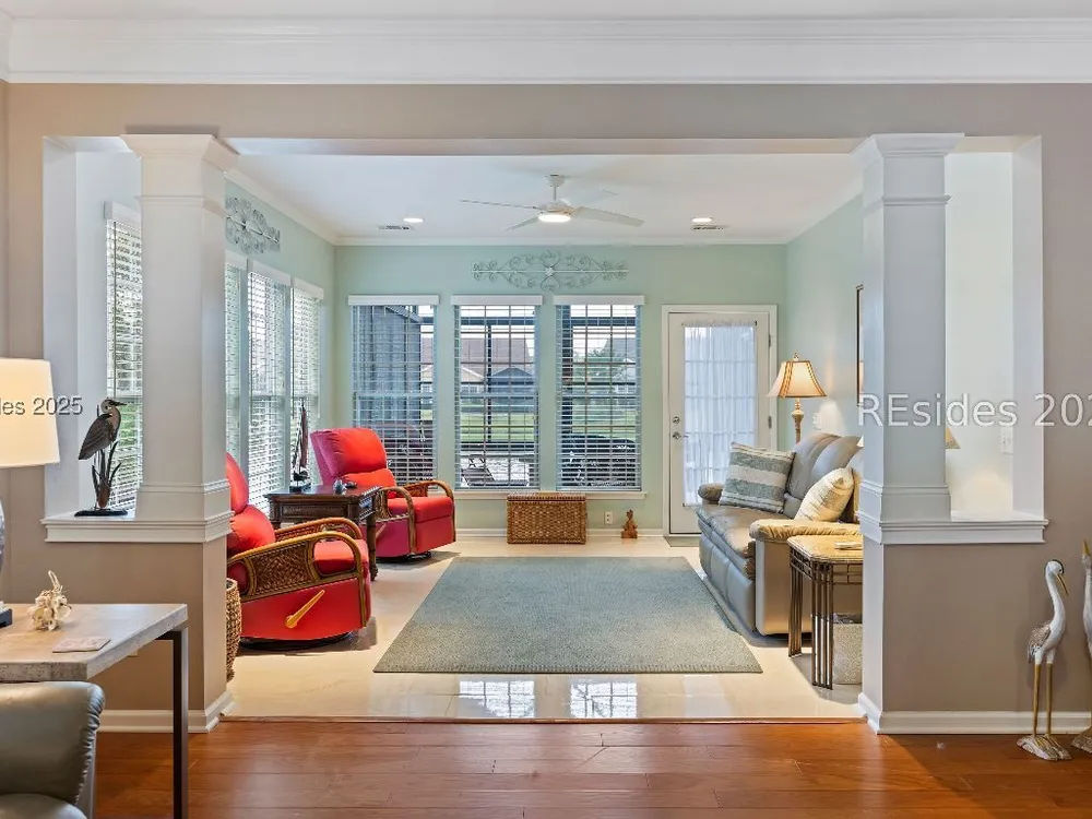 Welcome to 23 Knotweed Court, ideally located in the highly sought-after Bull Hill Plantation section of Sun City! This beautifully decorated and impeccably maintained Willow Bend home delights from the moment you enter the welcoming foyer. The owners have enhanced an already popular floor plan with thoughtful upgrades including extra windows for abundant natural light, a fabulous tiled-floor Sun Room, under-cabinet kitchen lighting, gorgeous hardwood floors and upgraded cabinetry. Enjoy an extended garage, TechShield radiant barrier, and a stunning screened lanai with vinyl windows overlooking a peaceful lagoon the perfect spot to unwind after a fun-filled Sun City day. Truly Lowcountry living at its best in one of the community's most desirable neighborhoods!