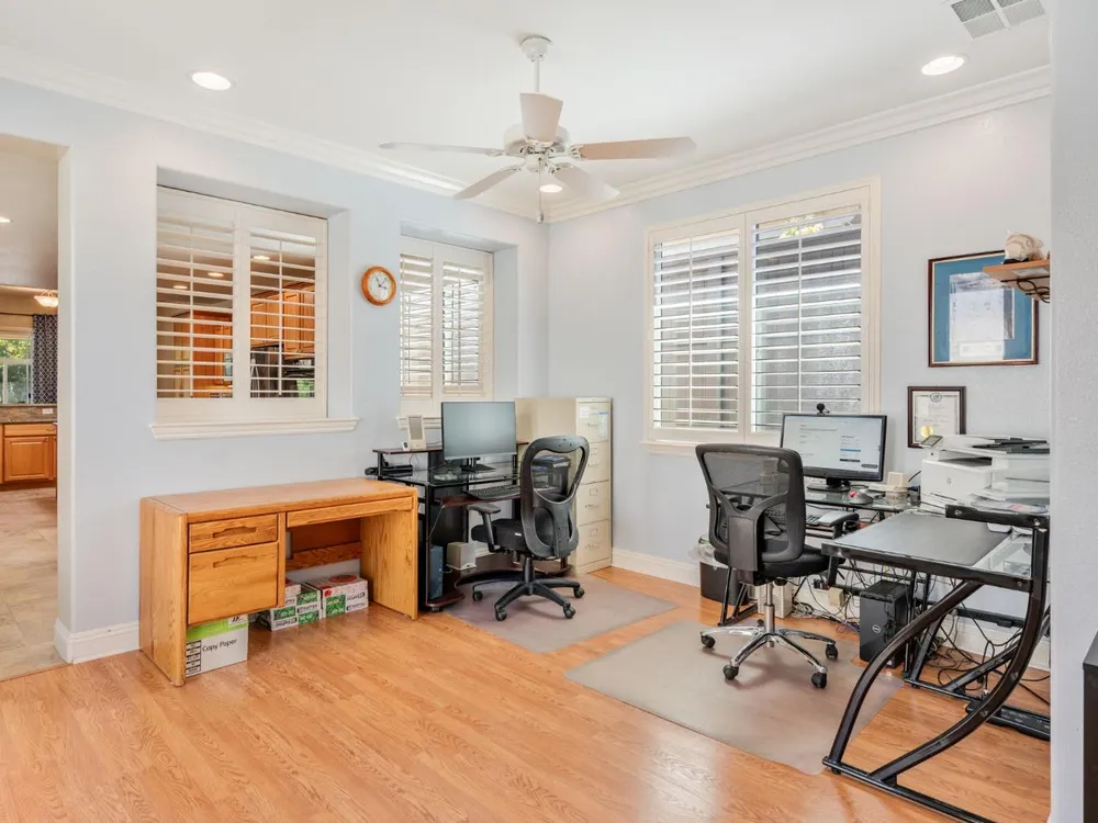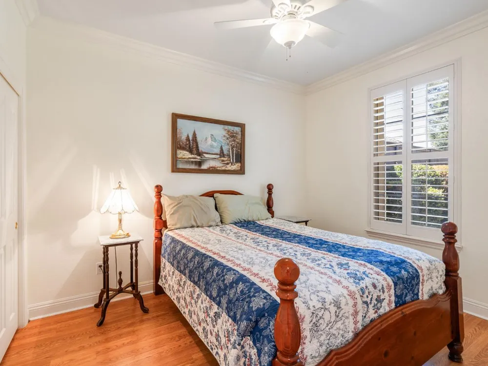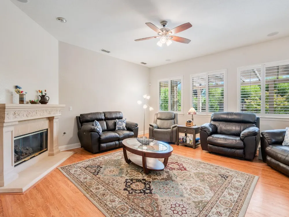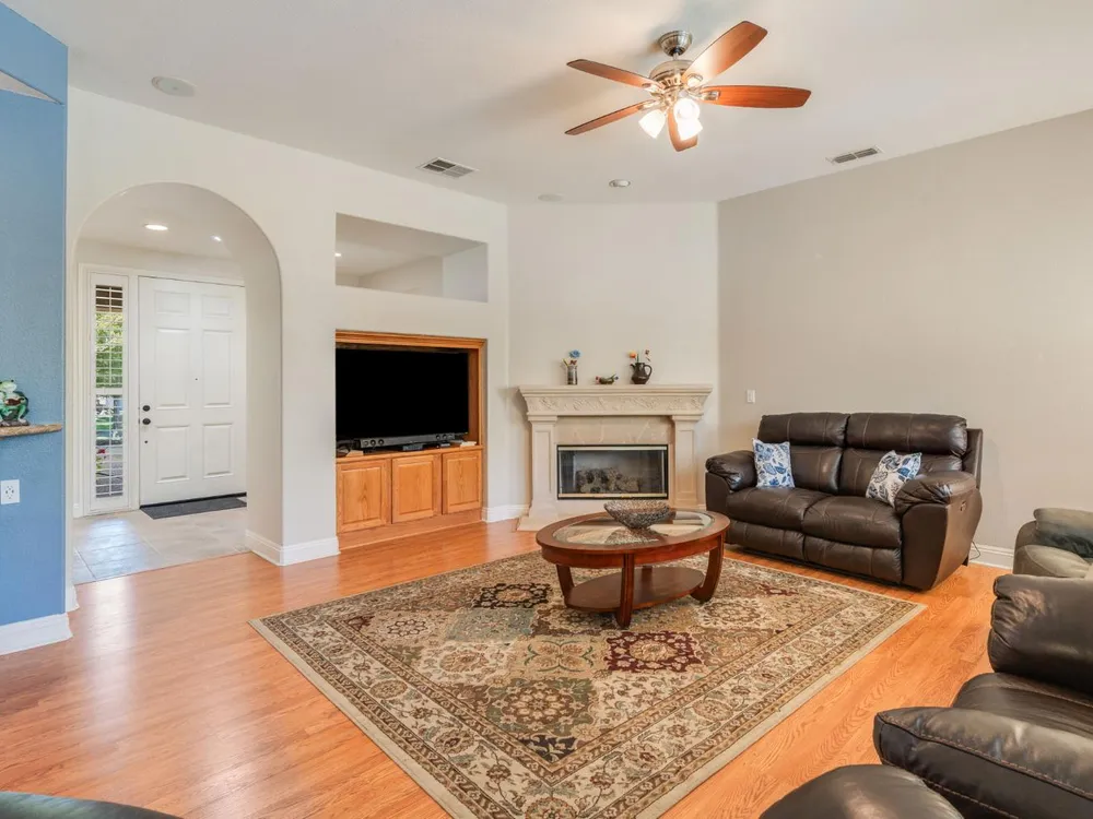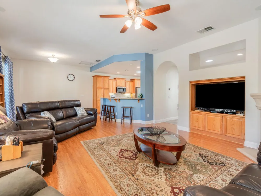Welcome to Heritage Park, a beautifully maintained gated community offering resort-style amenities and peace of mind. This single-story home blends comfort, efficiency, and modern upgrades with a spacious open layout designed for everyday living and entertaining.The floor plan includes 2 bedrooms, 2 bathrooms, and a versatile office/flex room, providing plenty of options for work, guests, or hobbies. A bright sunroom with its own heating and cooling expands the living space year-round. Recent enhancements include luxury vinyl plank flooring, plantation shutters, solar tube lighting, and a whole-house fan. Energy-conscious buyers will appreciate the owned solar system, newer water heater, water filter/softener system, newer A/C, and the included refrigerator, washer, and dryer.Step outside to a low-maintenance backyard designed for relaxation, featuring a pergola and a tranquil waterfall feature perfect for unwinding or entertaining, and the best thing is you don't have to cut your own grass in the front yard. Heritage Park residents enjoy a private clubhouse with indoor and outdoor pools, fitness facilities, and walking paths, plus convenient access to nearby shopping and dining. Move-in ready and thoughtfully updated, this property offers both modern convenience & style!