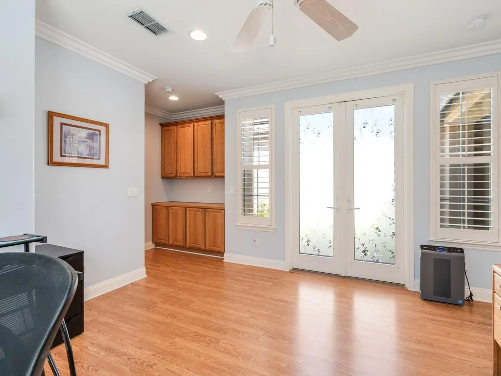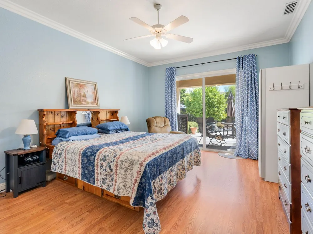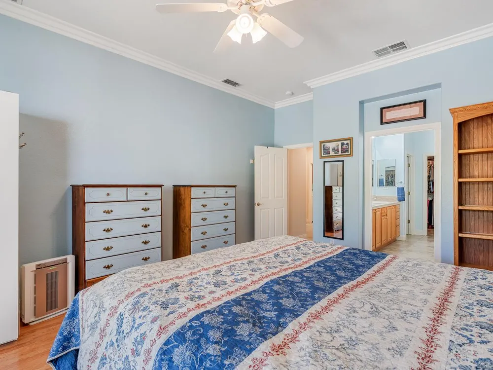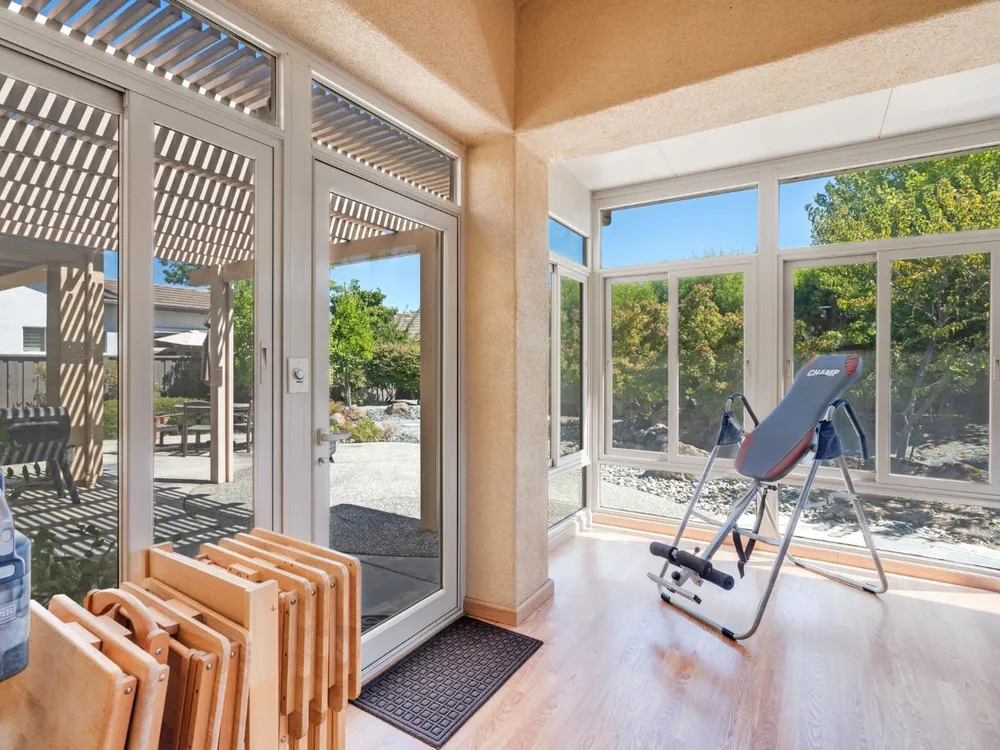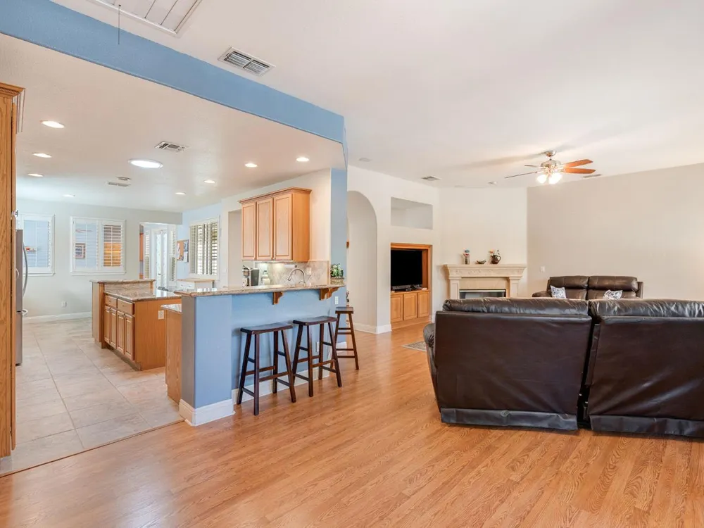 Welcome to Heritage Park, a beautifully maintained gated community offering resort-style amenities and peace of mind. This single-story home blends comfort, efficiency, and modern upgrades with a spacious open layout designed for everyday living and entertaining.The floor plan includes 2 bedrooms, 2 bathrooms, and a versatile office/flex room, providing plenty of options for work, guests, or hobbies. A bright sunroom with its own heating and cooling expands the living space year-round. Recent enhancements include luxury vinyl plank flooring, plantation shutters, solar tube lighting, and a whole-house fan. Energy-conscious buyers will appreciate the owned solar system, newer water heater, water filter/softener system, newer A/C, and the included refrigerator, washer, and dryer.Step outside to a low-maintenance backyard designed for relaxation, featuring a pergola and a tranquil waterfall feature perfect for unwinding or entertaining, and the best thing is you don't have to cut your own grass in the front yard. Heritage Park residents enjoy a private clubhouse with indoor and outdoor pools, fitness facilities, and walking paths, plus convenient access to nearby shopping and dining. Move-in ready and thoughtfully updated, this property offers both modern convenience & style!