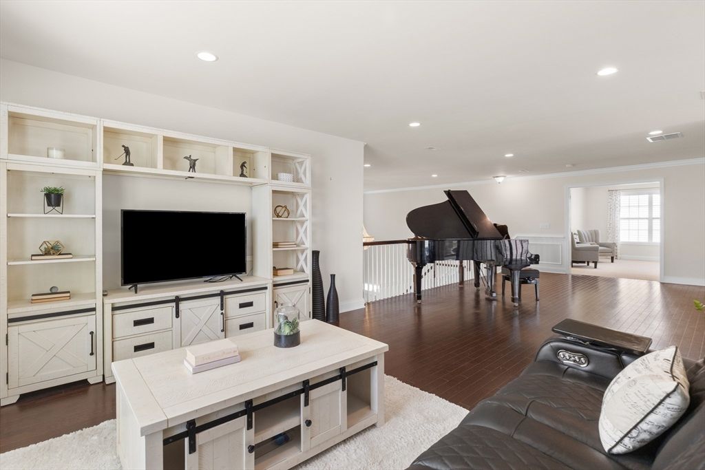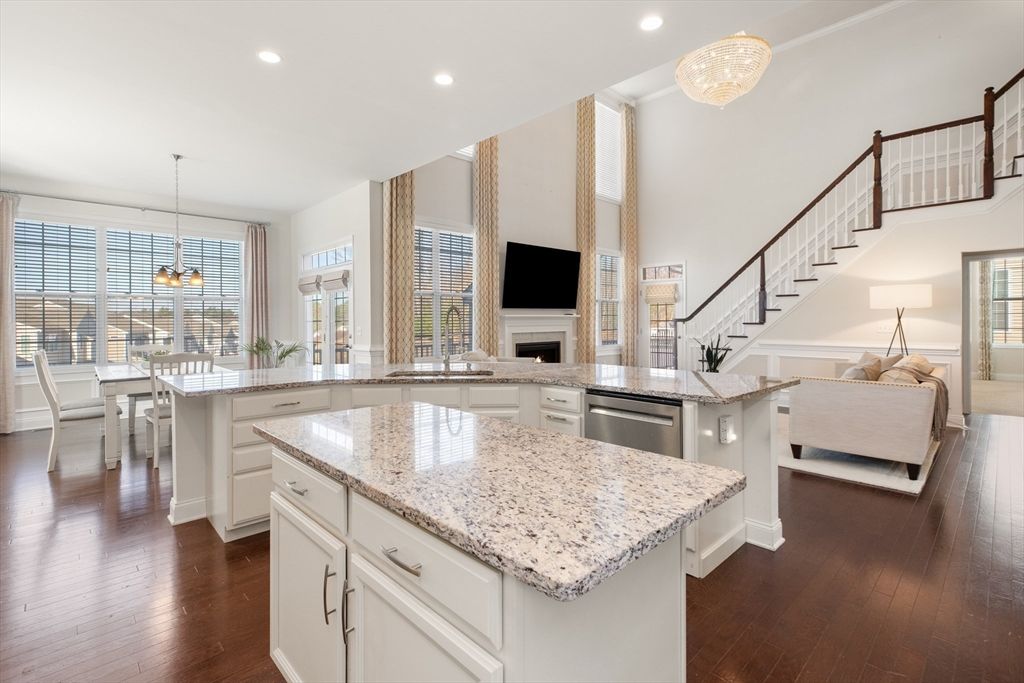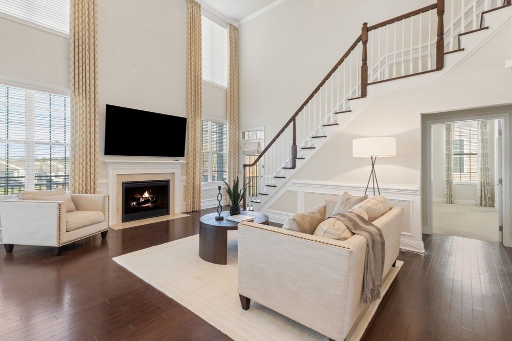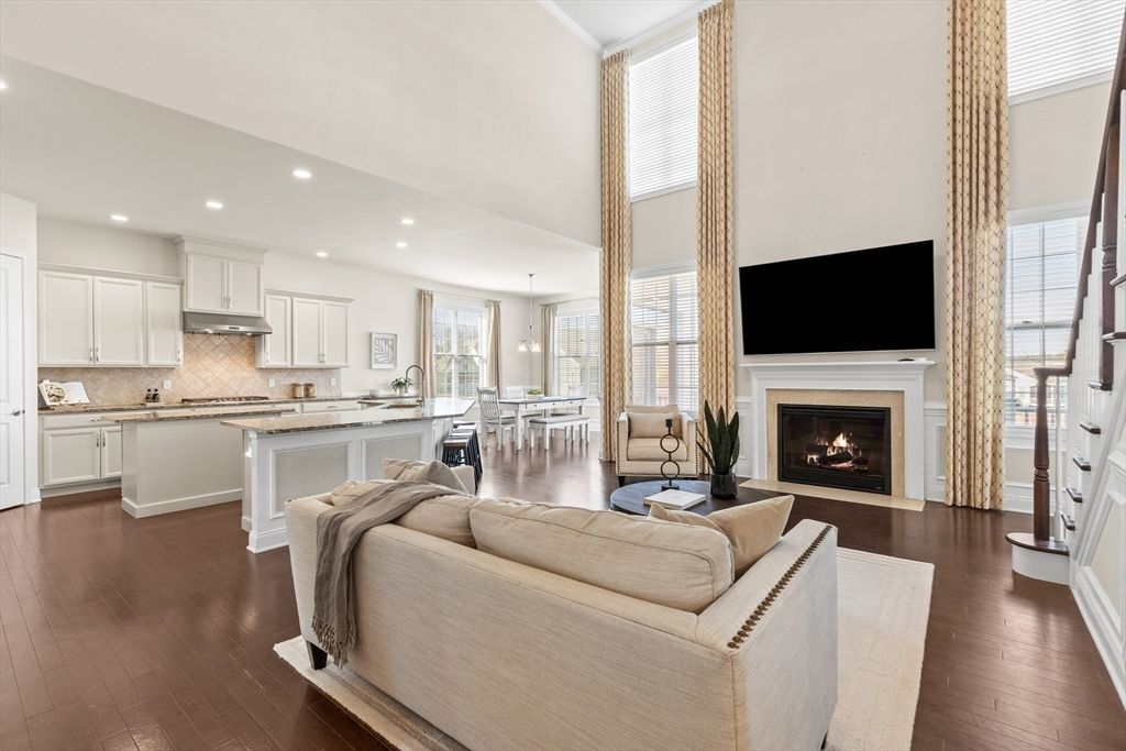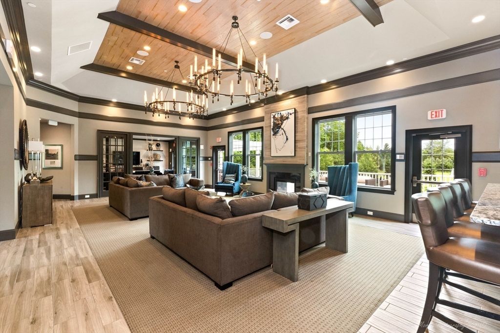 Beautifully appointed 3-bedroom, 3-bath condo in a highly desirable 55+ Toll Brothers community. Bright, open layout with soaring ceilings, a spacious white kitchen with abundant cabinetry, and a large island ideal for everyday living and entertaining. The kitchen and dining area open to a private rear deck. The first-floor primary suite features a walk-in closet and en suite bath. The inviting living room showcases a stunning fireplace, while a versatile loft offers great space for a home office or guest retreat, plus an added upstairs storage room. The partially finished lower level includes a dedicated entertainment room. Recent updates include crown molding, chair rails, and shadow boxes throughout the first floor and along the staircase. Enjoy a pet-friendly community with sidewalks and top-tier amenities including a clubhouse, pool, billiards, pickleball, and bocce courts.