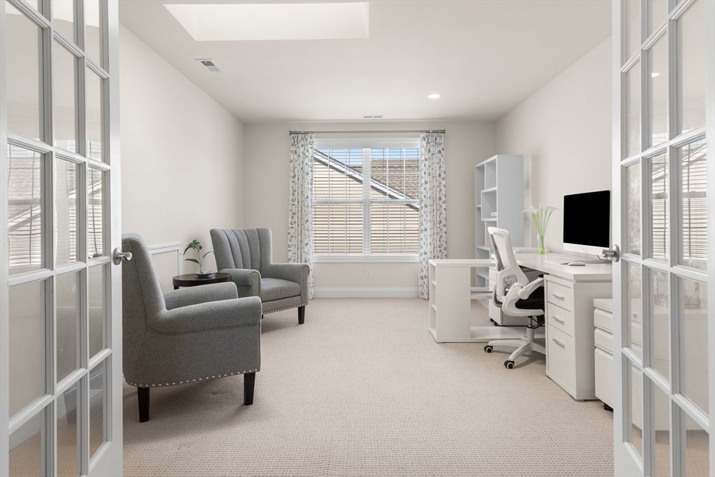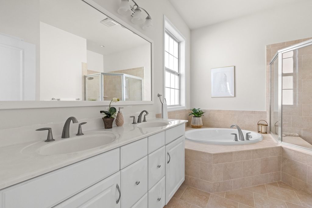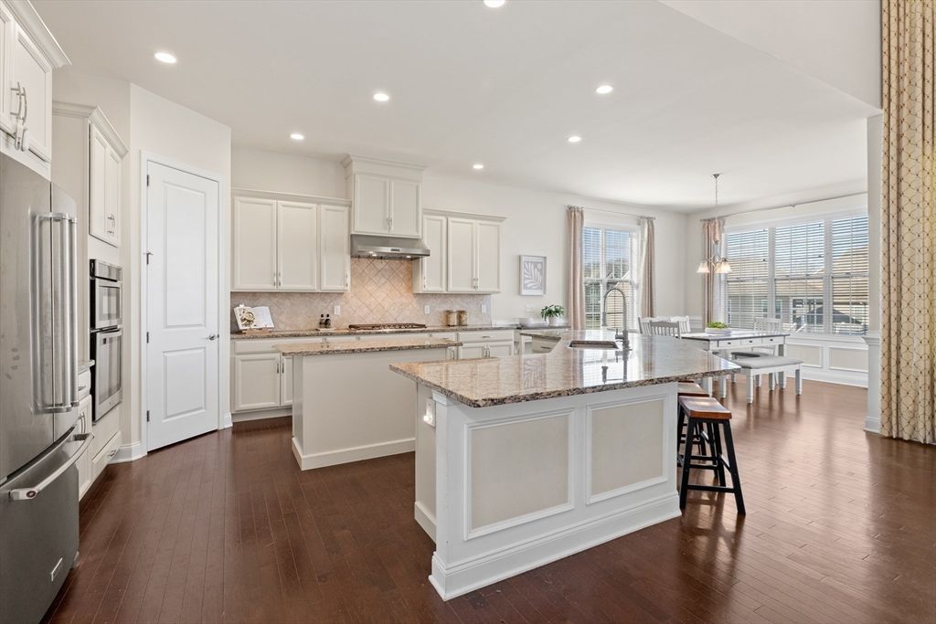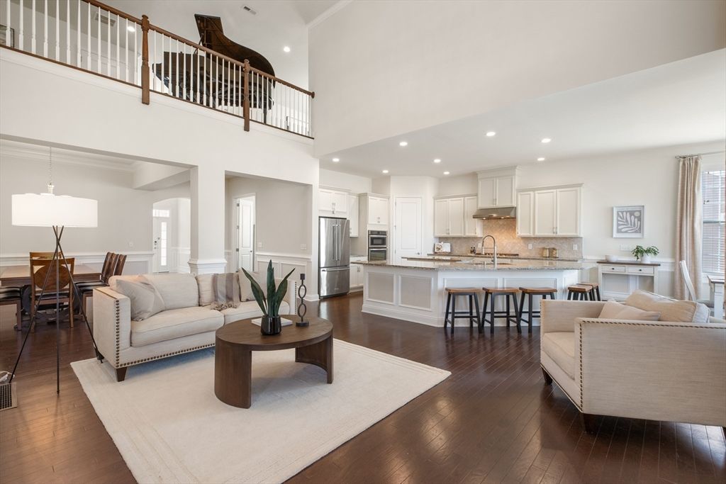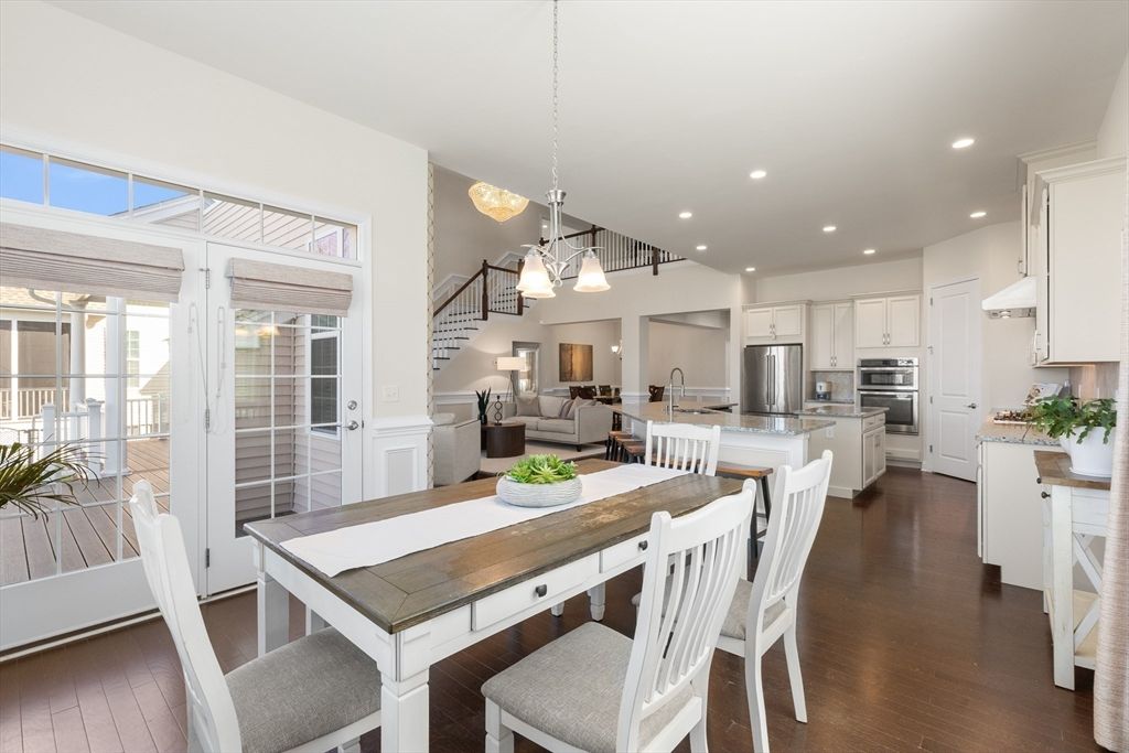 Beautifully appointed 3-bedroom, 3-bath condo in a highly desirable 55+ Toll Brothers community. Bright, open layout with soaring ceilings, a spacious white kitchen with abundant cabinetry, and a large island ideal for everyday living and entertaining. The kitchen and dining area open to a private rear deck. The first-floor primary suite features a walk-in closet and en suite bath. The inviting living room showcases a stunning fireplace, while a versatile loft offers great space for a home office or guest retreat, plus an added upstairs storage room. The partially finished lower level includes a dedicated entertainment room. Recent updates include crown molding, chair rails, and shadow boxes throughout the first floor and along the staircase. Enjoy a pet-friendly community with sidewalks and top-tier amenities including a clubhouse, pool, billiards, pickleball, and bocce courts.