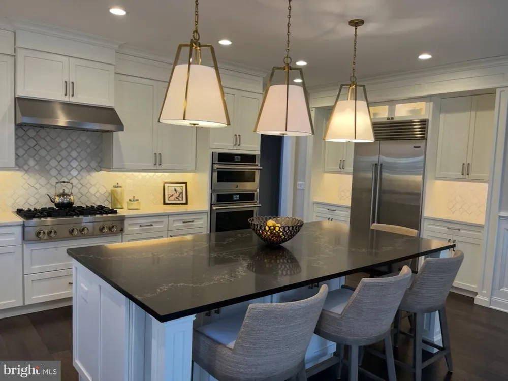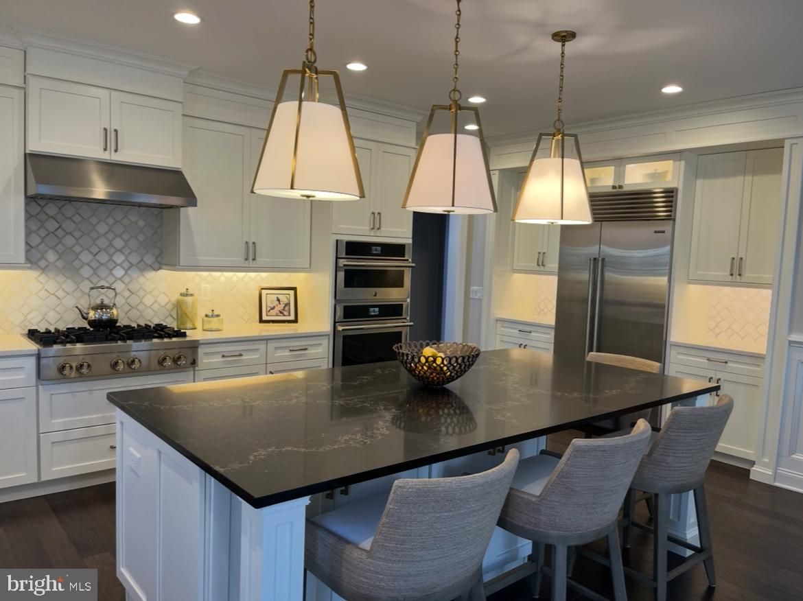 Welcome to this exceptional end-unit home located on a premium lot in the highly sought-after Regency at Holmdel, a premier 55+ community. This Blair Farmhouse Model offers a beautifully designed living space, featuring three bedrooms with the primary suite being extended, three full bathrooms, and many high-end upgrades were added throughout. From the moment you step into the grand two-story entrance the attention to detail is evident with custom molding, elegant millwork, upgraded Restoration Hardware and Schonbek lighting, and sophisticated finishes. The open-concept floor plan seamlessly connects the formal dining room, living area, and gourmet kitchen, making it ideal for both everyday living and entertaining. The chef’s kitchen is equipped with a large center island, farmhouse sink, upgraded top-of-the-line appliances including a built-in Sub-Zero refrigerator and a plumbed Miele coffee maker. There is an Aquasana whole house water filtration system installed. The first-floor primary suite is extended and offers a tray ceiling and a separate desk area that can also be used as an additional seating area if desired. Located within the primary suite is an ensuite double vanity bathroom and a spacious walk-in closet. Also on this first level is a versatile den, perfect for a home office, library, or additional guest space, an additional full bath with tub and a laundry room. Upstairs you will find a large loft area overlooking the main floor with beautifully appointed moldings, a full bath with a double vanity, and two bedrooms both with a walk in closet and crown molding. This home offers a fully finished basement. The garage is finished with a PVC garage wall organizer and an epoxy floor. The PREMIUM lot location provides extra privacy with an expanded deck that overlooks a serene wooded area creating a peaceful outdoor setting. The Regency at Holmdel offers resort-style amenities, including a state-of-the-art clubhouse, pool, tennis court, pickleball, bocce courts, fitness center, and an active social calendar. Schedule your private showing today!