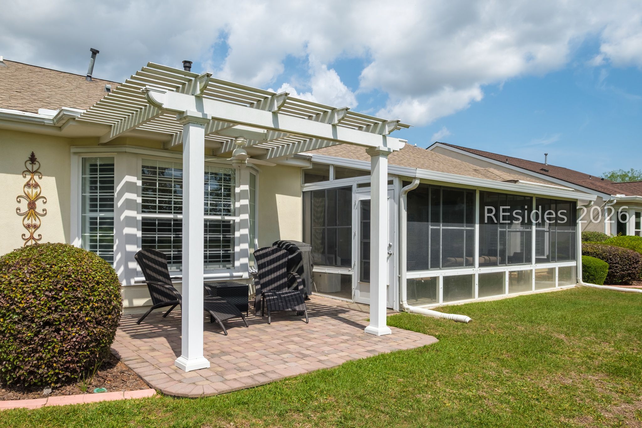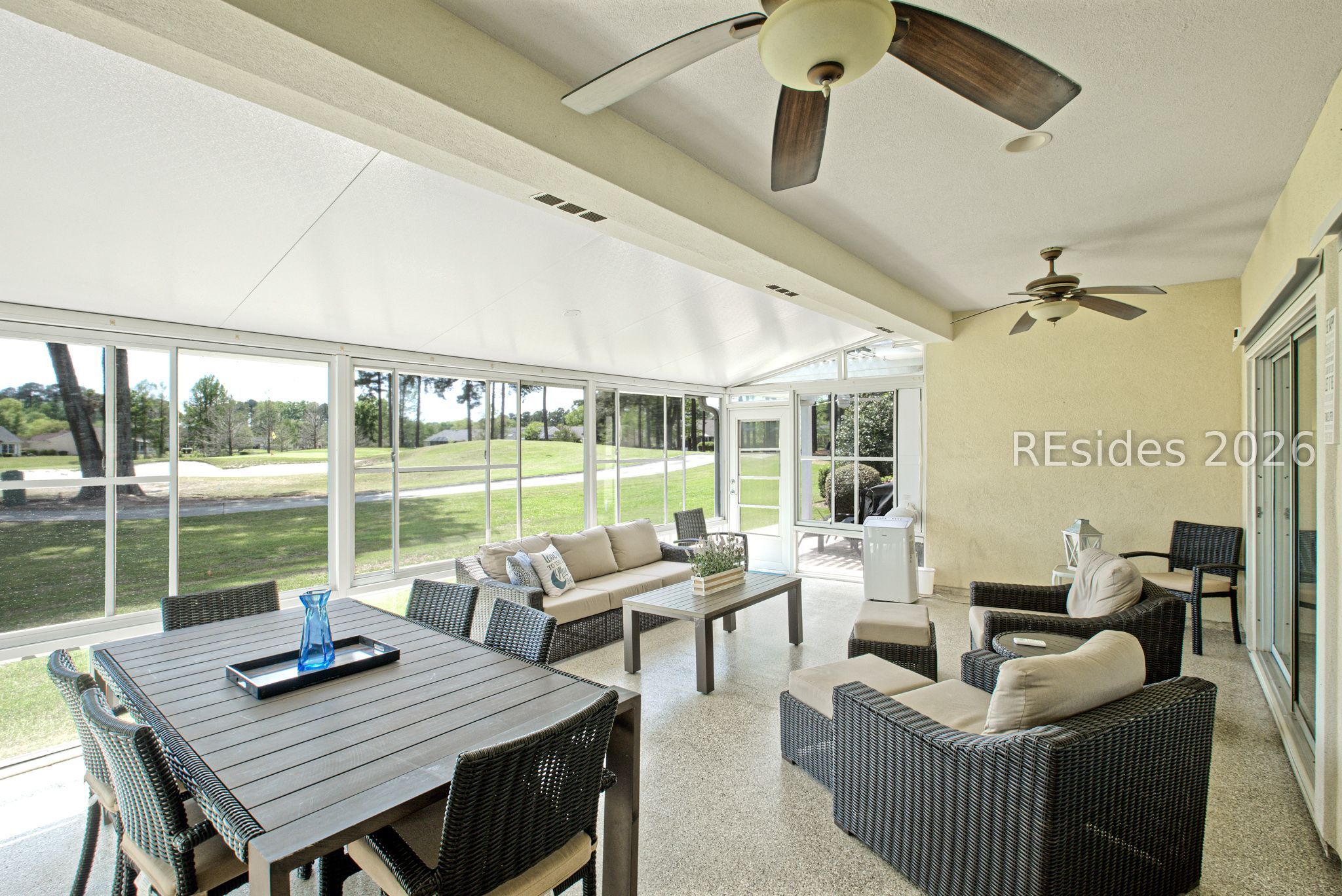 Welcome to 23 Tallow-an exceptional Dogwood model in Sun City Hilton Head, perfectly positioned to embrace the ultimate Lowcountry golf lifestyle with sweeping golf course and lagoon views. Located within one of Bluffton's premier 55+ communities, this light-filled, open-concept home is designed for both convenience and effortless entertaining. The spacious kitchen features granite countertops, abundant cabinetry, and newer appliances, seamlessly flowing into the living area with custom built-ins and a cozy gas fireplace. A bright four-season lanai captures stunning backyard vistas, while the pergola-covered paver patio creates the perfect setting to unwind after a day on one of three championship golf courses. The primary suite offers a generous walk-in closet, and a beautifully remodeled bath with dual vanities. A private guest suite, full bath, and flexible third bedroom or home office provide ideal space for visitors, hobbies, or remote work. Additional highlights include plantation shutters, LVP flooring (2024), roof (2019), and a paver driveway. Enjoy world-class amenities and over 100 clubs-all just a short drive from Hilton Head Island and the charm of Old Town Bluffton.