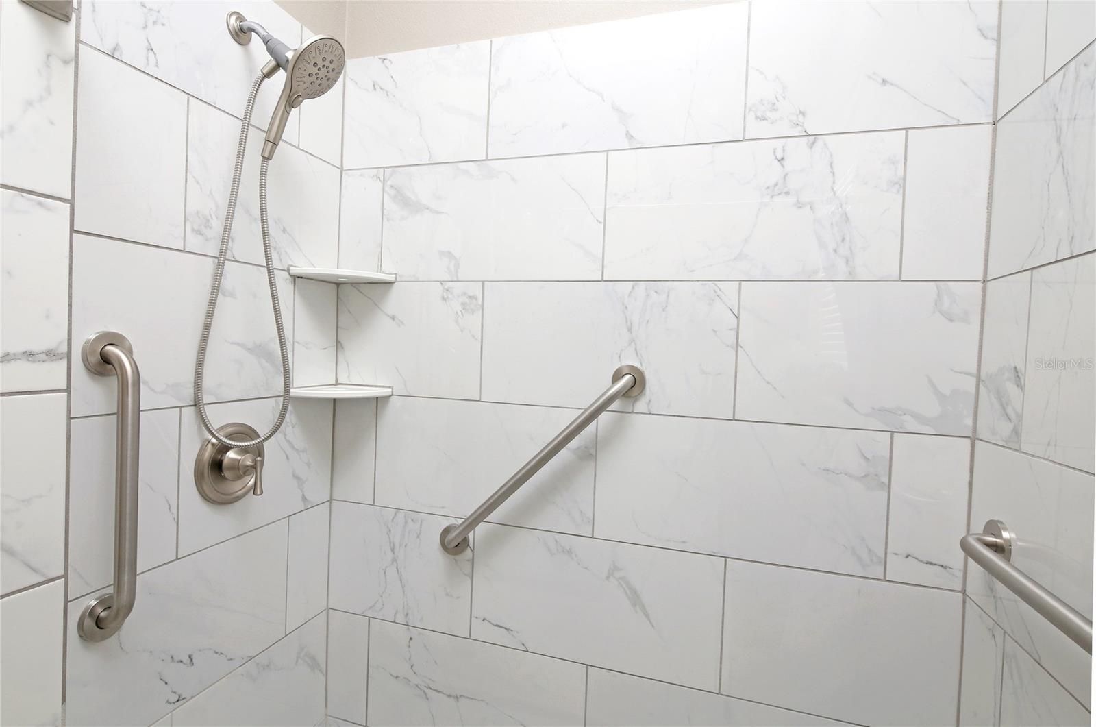 - Ceiling Fan(s), High Ceilings, Kitchen/Family Room Combo, L-Shaped Dining Room, Main Level Primary, Split Bedrooms, Walk-In Closet(s)