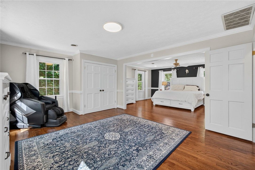 Welcome to 23 Whittakers Mill, where timeless design meets modern comfort in the heart of Kingsmill. Set on 1.1 acres on the pond, where you can fish/kayak from your backyard! This elegant home offers 6 bedrooms and 5.5 baths, thoughtfully updated for everyday living and effortless entertaining. The main-level suite functions as a primary bedroom, guest retreat, or in-law quarters, complete with its own bath and laundry/kitchen area. The renovated kitchen showcases custom cabinetry, quartz counters, walnut shelving, and updated appliances (under warranty), plus reverse osmosis systems in both kitchens. Refinished hardwood floors, new custom trim (2024), and three fireplaces add warmth and sophistication throughout. A vaulted sunroom with shiplap ceiling and cedar beams opens to a Trex deck overlooking the fenced rear yard and serene pond view. Additional highlights include a new louvered pergola, lower-level kitchenette, deeded pond access, 10-zone Wi-Fi sprinkler, new 5-ton AC(2025), newer hot tub (2023), all in a great location near Kingsmill’s amenities.