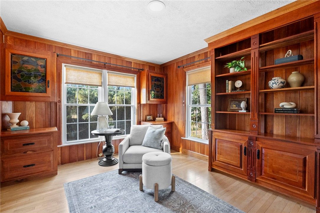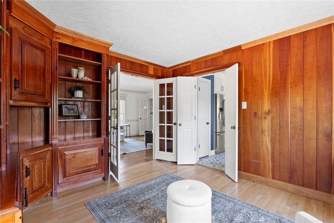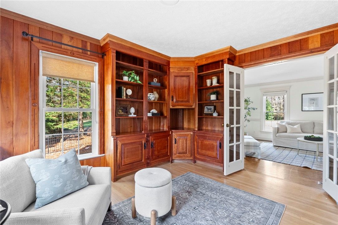 - Beamed Ceilings, Bookcases, Built-in Features, Ceiling Fan(s), Dining Area, Double Vanity, Eat-in Kitchen, French Door(s)/Atrium Door(s), Granite Counters, Pull Down Attic Stairs, Walk-In Closet(s)