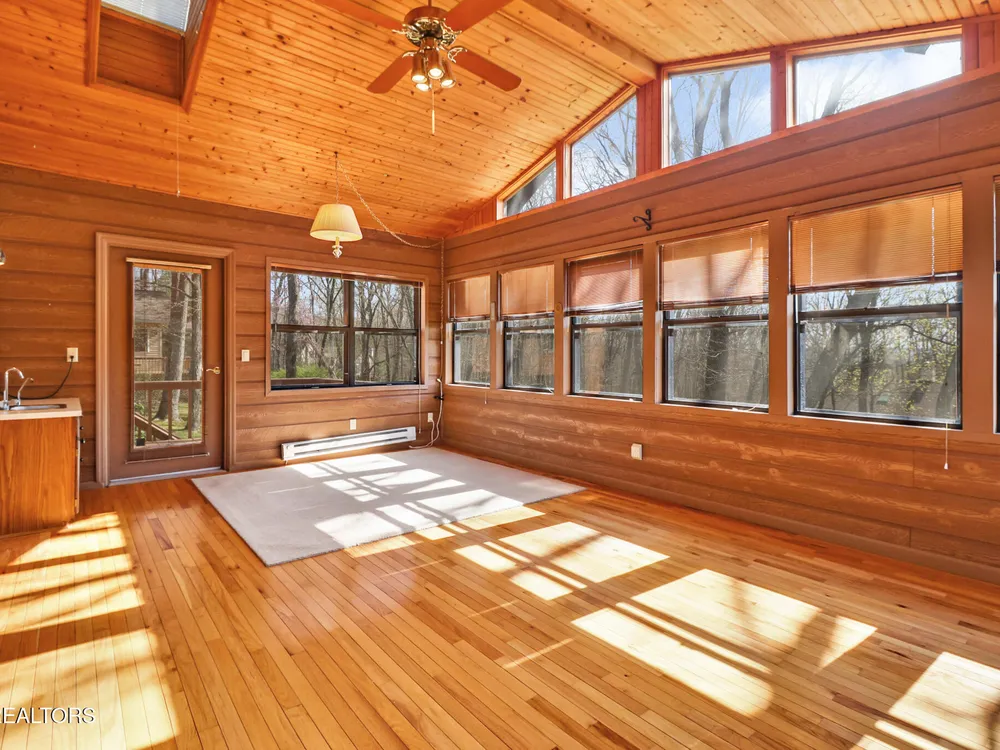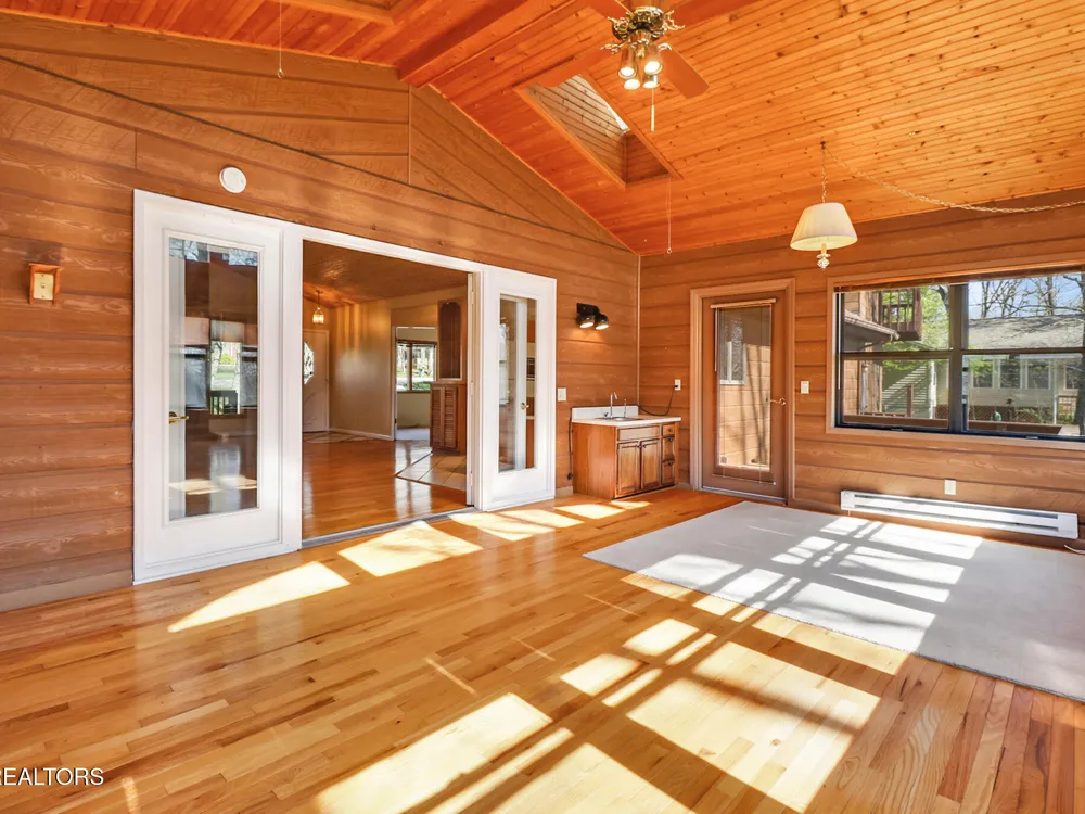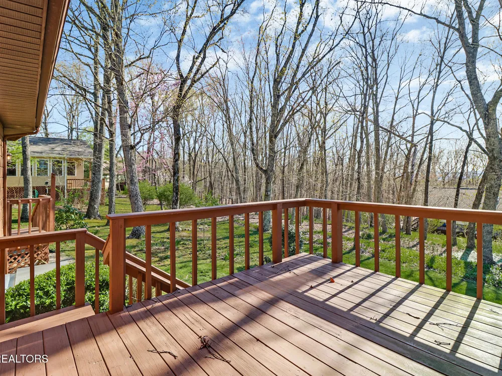 Looking for a warm, inviting home with a seasonal view of the mountains and in a location close to all the amenities that Fairfield Glade has to offer? This is it! The home has only had one owner since 1989! A nice flat yard with plenty of perennial flowers greets you as you pull into the recently updated driveway. As you enter the home, you find a large living space with hardwood flooring, and a wood vaulted ceiling which gives the home a warm feeling. Sky lights bring in lots of light, and a floor to ceiling wood burning oven to warm the home on chilly days. The wood flooring and ceiling also flow into the large sunroom, where you can enjoy nature and seasonal mountains views too! The kitchen has a skylight with tile flooring, pullouts on some of the lower cabinets and 70 feet of quartz countertops! The master bedroom has a box window, large walk-in closet and carpet. The master bath has a walk-in shower with steamer, and heated tile floor. Bedrooms 2 & 3 both have bay windows, making each room bright. The guest bathroom can be accessed from the hallway of the bedroom and from the laundry room, making it easily accessible. The laundry room has a pantry with pull outs, additional storage and the washer & dryer convey with the home. The garage has two separate garage doors, and lots of storage space. Above the garage, you will find a great bonus space with windows and skylights, a perfect space for an office, hobby room or man cave! In the back, you will find a deck on each side of the sunroom. Additional storage space is available under the sunroom. The lot behind the home conveys with the home. The roof and HVAC were replaced in 2015, and the hot water heater in 2019. This home is a short distance from all the amenities Fairfield Glades has to offer including 5 golf courses, 11 lakes, tennis & pickleball courts, swimming pools, parks and walking trails, to name a few, yet in a quiet, peaceful location. 158 Albemarle Lane (090B D 021.00) is the address of the lot behind the house and included in the sale of this home. Buyer and Buyers agent to verify pertinent information before submitting offers. WITH A FULL PRICE OFFER, SELLER WILL GIVE A $15000 CREDIT FOR BUYER TO USE ON EXTERIOR!