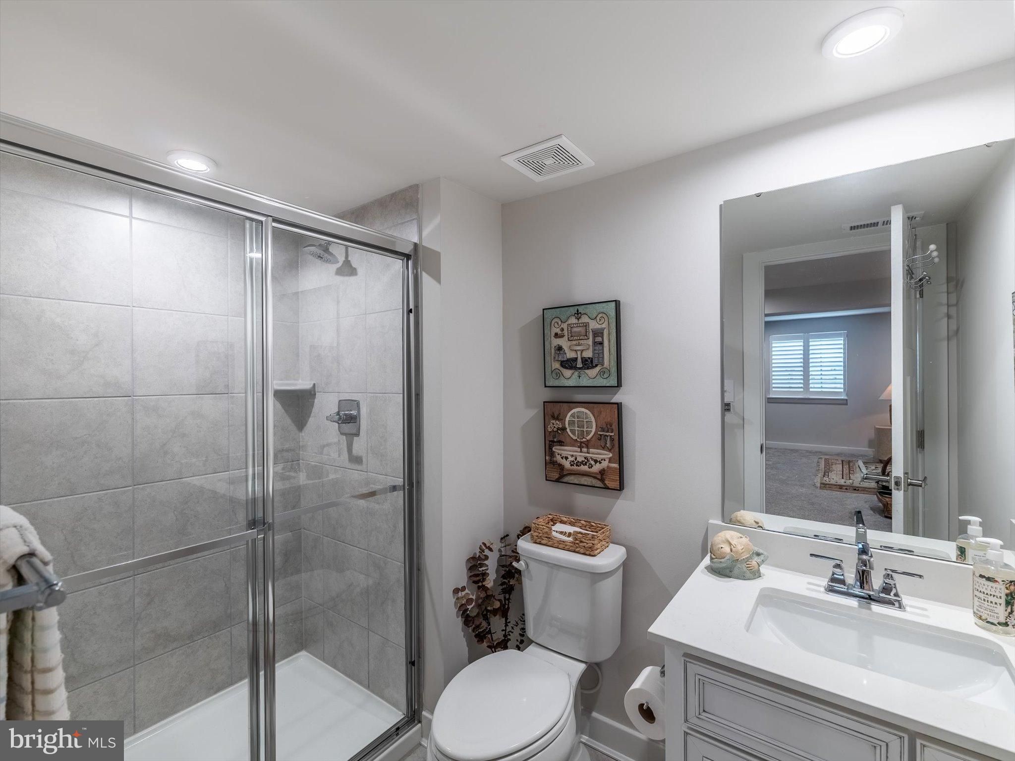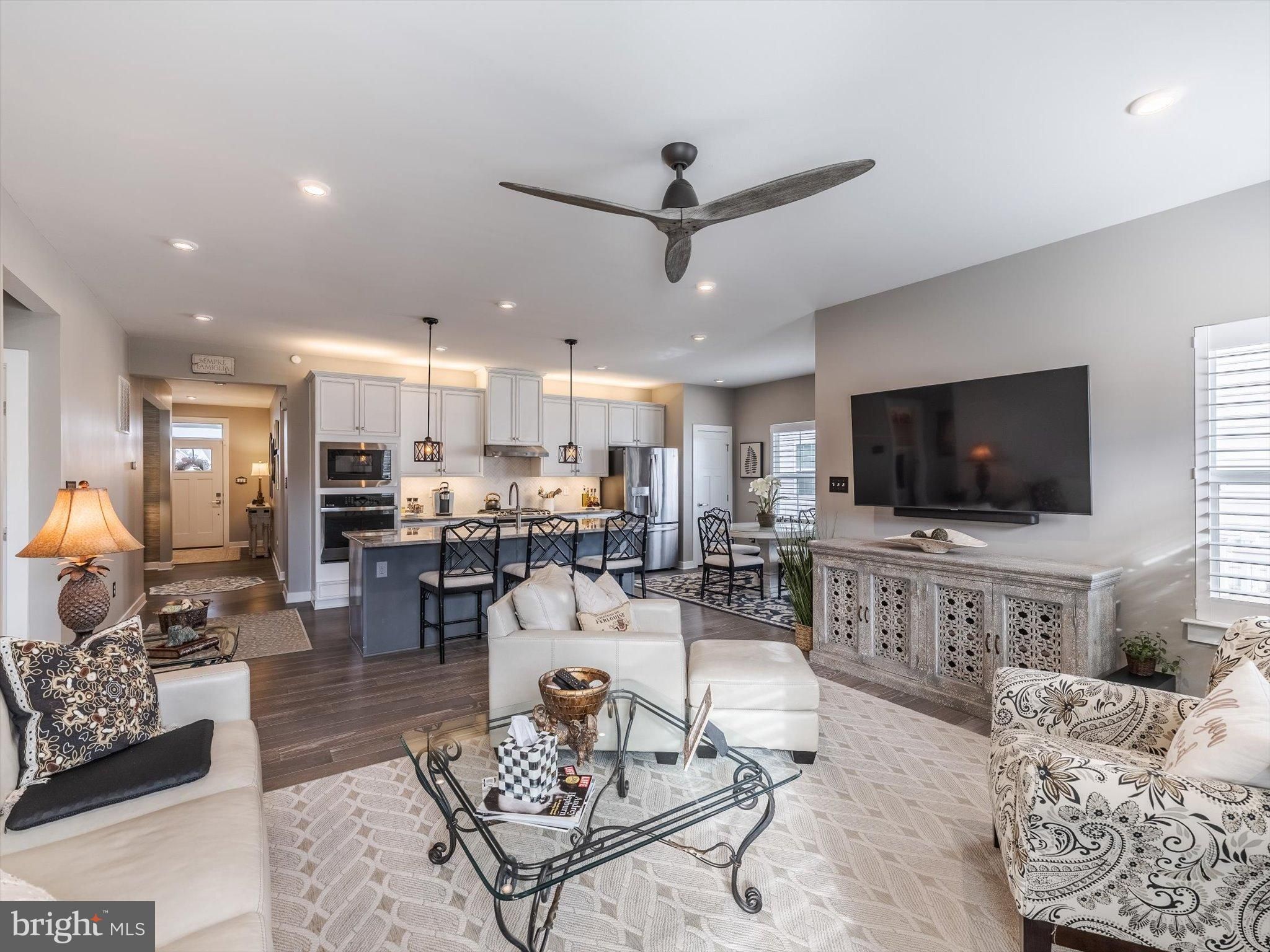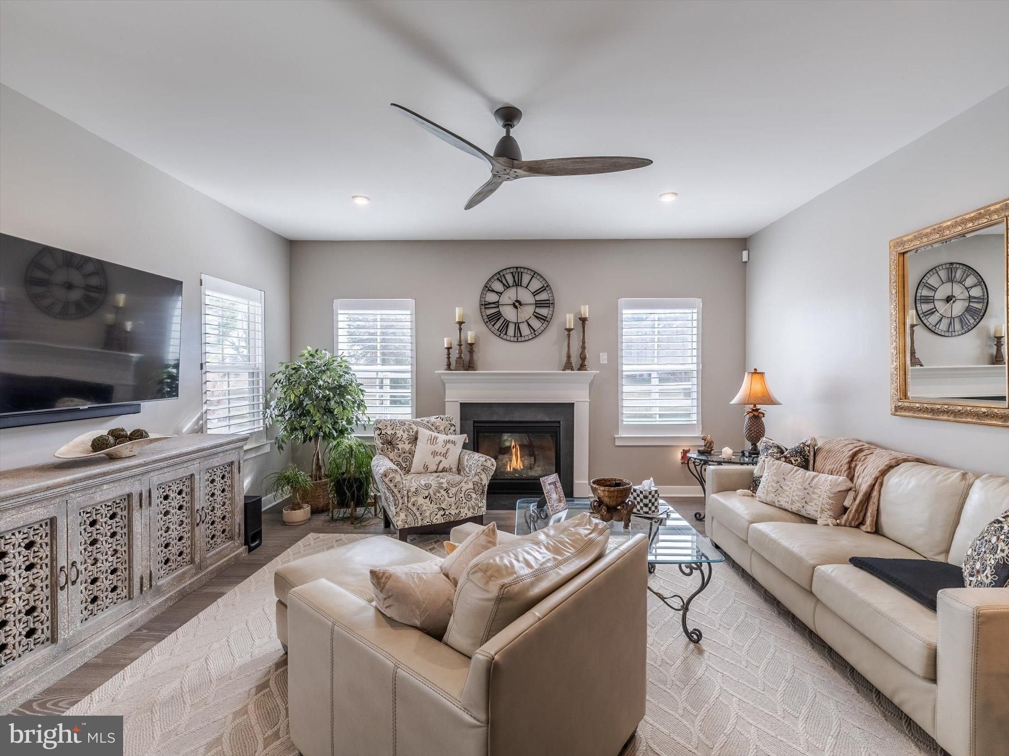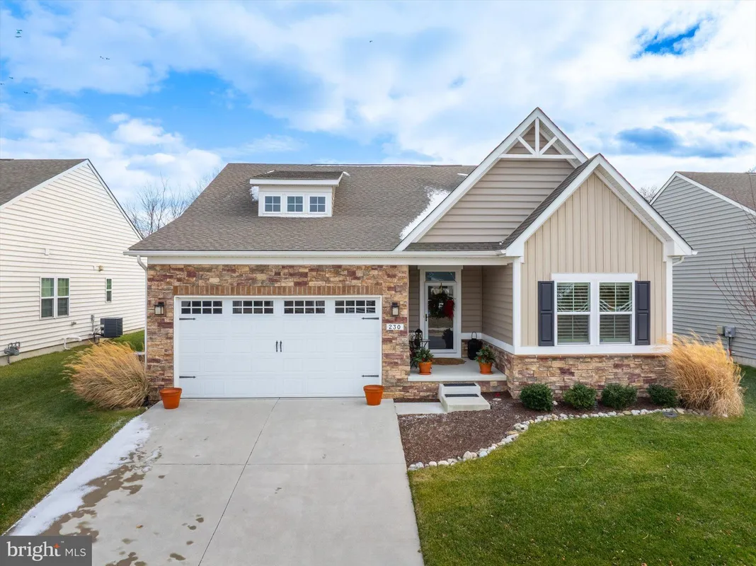 Welcome to 230 Anglesey Drive, a stunning home where luxury and thoughtful design meet everyday comfort. Step inside and be greeted by soaring 9-foot ceilings and rich 6-inch hardwood planks that flow throughout the main living areas, setting the tone for the elegance that awaits within. The open-concept floor plan creates a seamless transition between living, dining, and entertaining spaces, anchored by a warm gas fireplace and framed with timeless plantation shutters. At the heart of the home lies a chef-inspired kitchen, beautifully appointed with porcelain backsplash, quartzite countertops, and a striking 8.5-foot island perfect for gathering. GE stainless steel gas appliances – including an electric wall oven, built-in microwave, and full gas stove – ensure that both cooking and hosting are effortless. This home offers two spacious bedrooms along with a sophisticated office featuring designer grass cloth wallpaper, easily transformable into a third bedroom if desired. The primary suite is a true retreat with a dramatic trey ceiling and a spa-like bath showcasing a floating vanity, walk-in porcelain shower with mother-of-pearl accents, brushed gold fixtures, complemented by an anti-steam mirror with a mini heater above the shower. A custom-built linen closet adds both convenience and luxury. Two additional full bathrooms provide convenience and style for guests and family alike. A laundry room off the primary bedroom includes a Maytag washer and dryer (gas). The living space extends into the finished, wide-open basement, offering incredible flexibility with its own full bath and endless possibilities for recreation, hobbies, or guest accommodations. Storage is thoughtfully integrated throughout the home, complemented by modern recessed LED lighting and a tankless Noritz water heater that ensures energy efficiency and endless comfort. Outside, a fenced-in backyard invites relaxation and entertaining with a covered, composite deck – your private outdoor oasis. An attached two-car garage completes this exceptional home and adds everyday practicality. Located in the 55+ section of the Preserve at Deep Creek known as Legacy, homeowners enjoy exclusive access to the 55+ pool, clubhouse, and fitness center, plus full use of community-wide amenities. While only two streets are age-restricted, all residents in Legacy enjoy shared benefits, with added exclusivity reserved for 55+ homeowners. Commuting and convenience are effortless thanks to the home’s central location – with quick access to I-95, Route 1, Delaware and New Jersey beaches, shopping, dining, and the bonus of tax-free retail in Delaware. With its blend of luxury finishes, modern comforts, and flexible living spaces, 230 Anglesey Drive offers the perfect home for your next chapter.